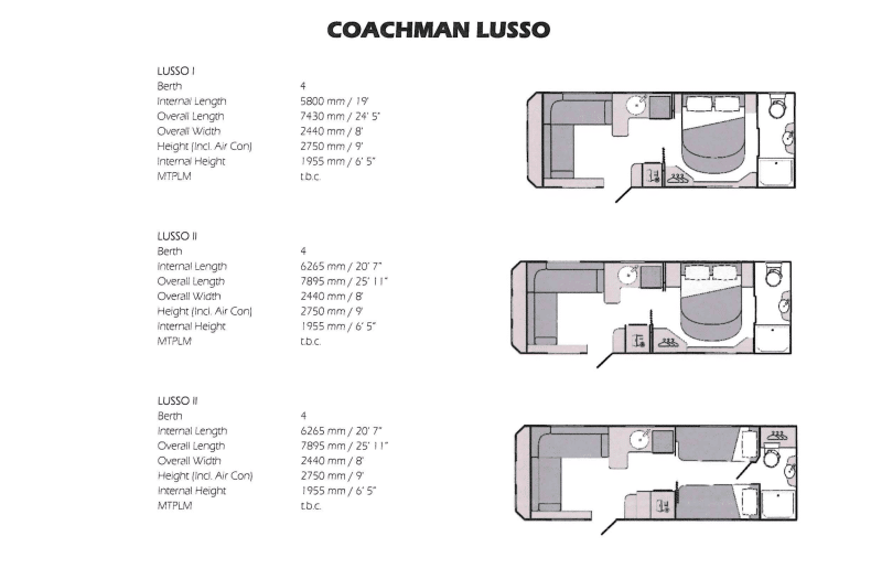 - Lusso II (4 berth, twin axle)
