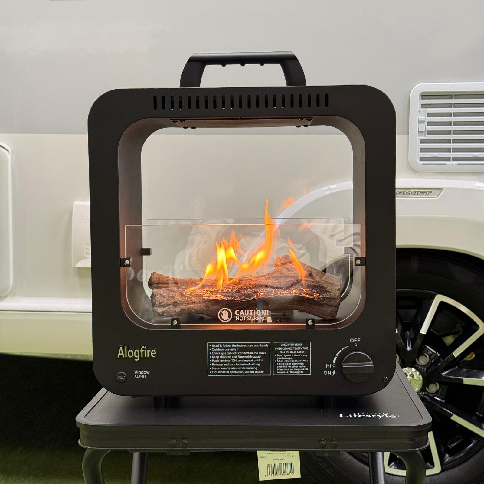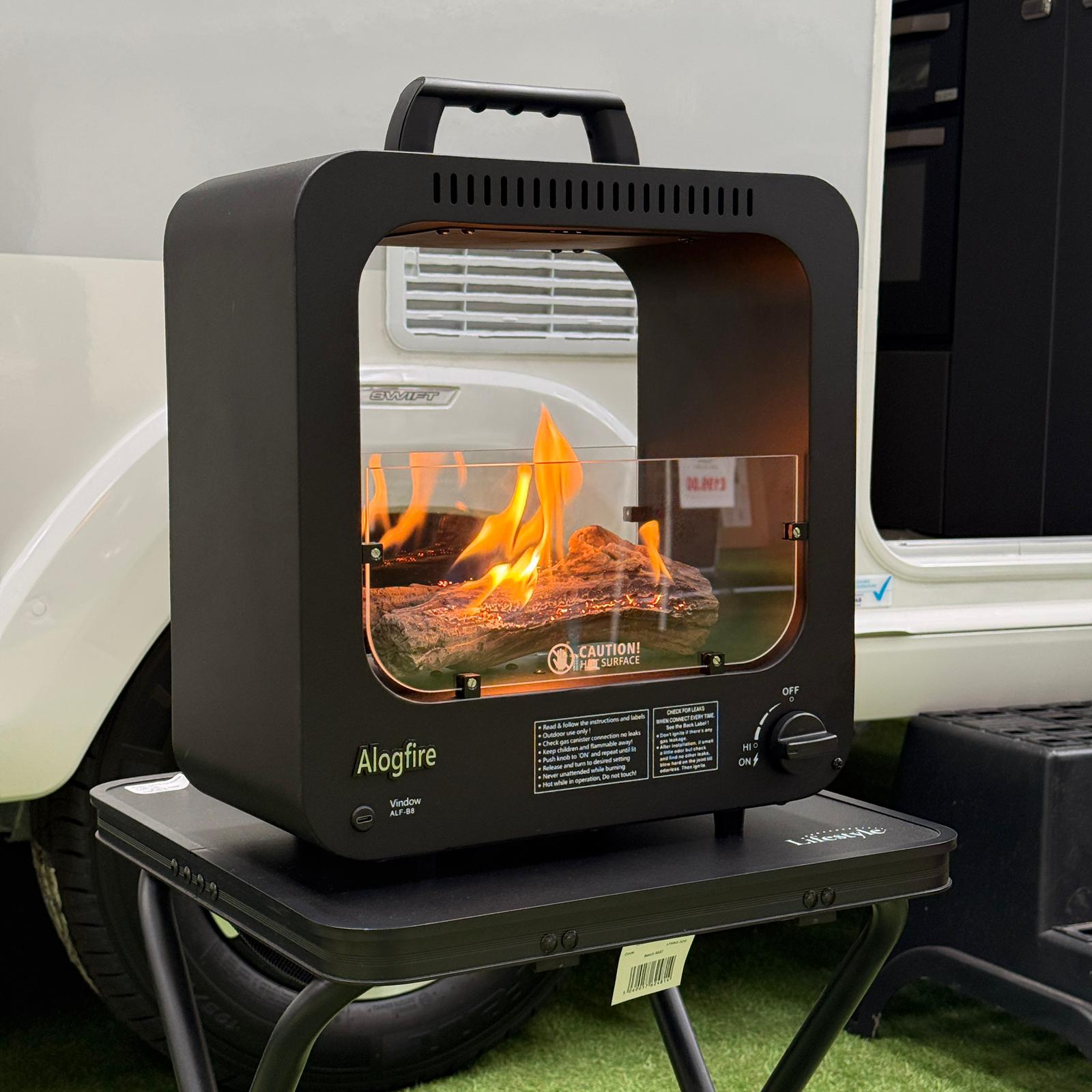 The Alogfire Time Tunnel (ALF-B8A1FS) delivers real flame and real warmth. A genuinely useful essential that keeps you comfortable from the garden patio to the riverbank.