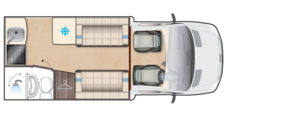 - ✔ Classic lounge conversion layout, which we think gives the maximum possible living space in a compact van.