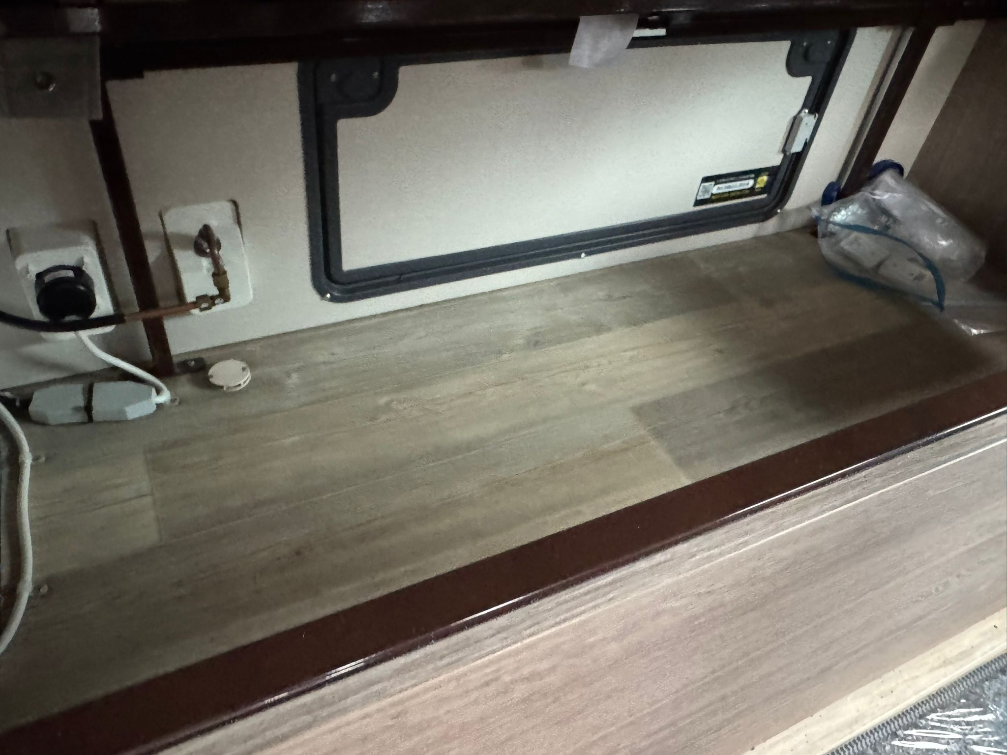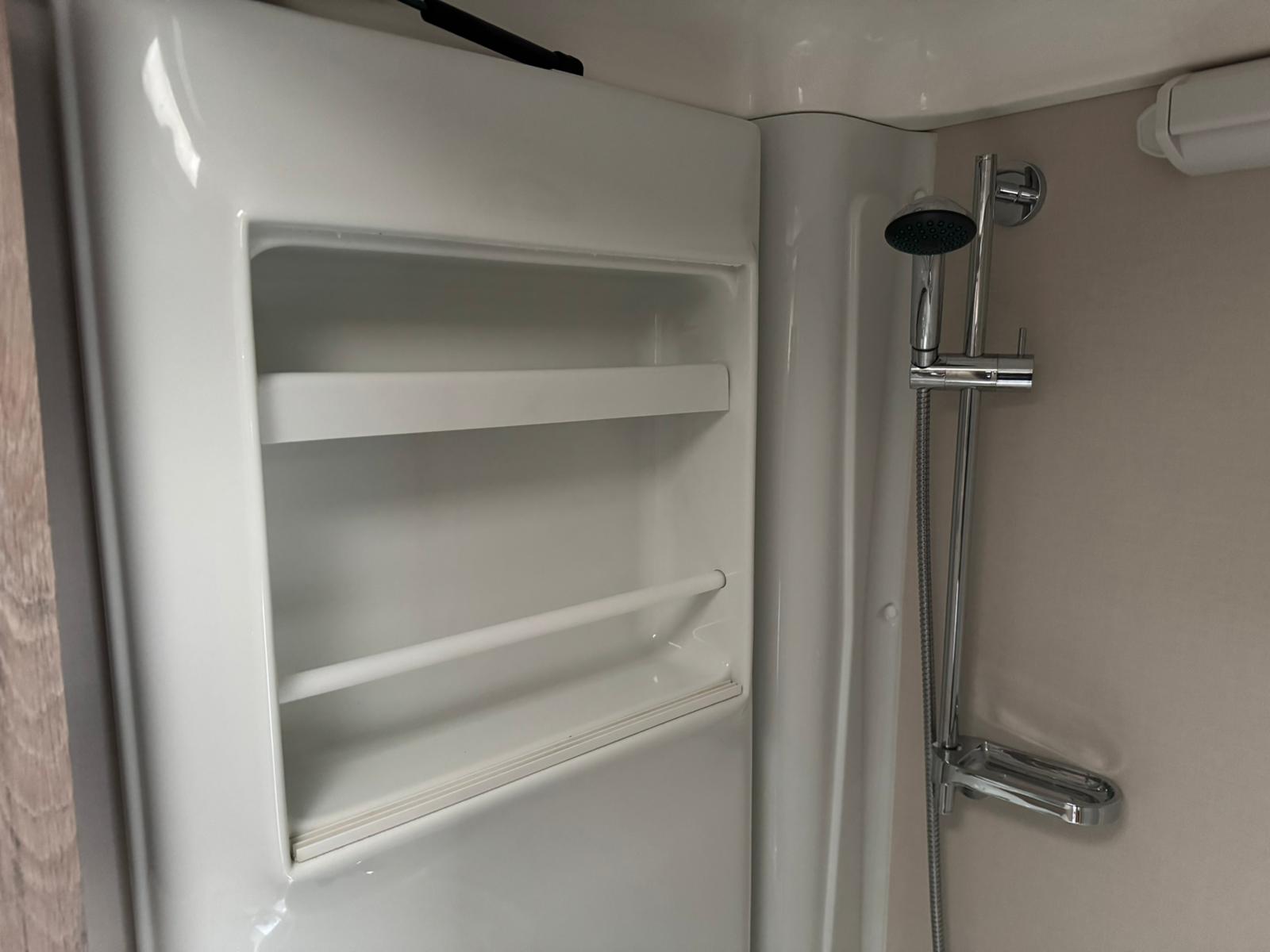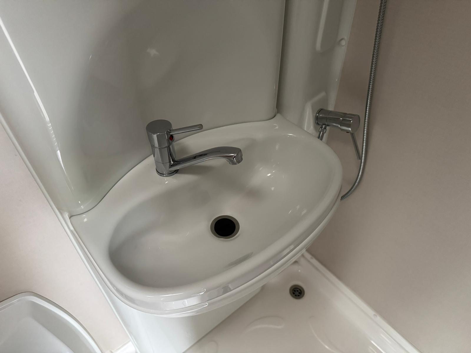- Washroom: Spanning the full width at the rear is a surprisingly spacious washroom. It contains a combined toilet and shower area, a washbasin, and good storage, giving you a proper, private bathroom.