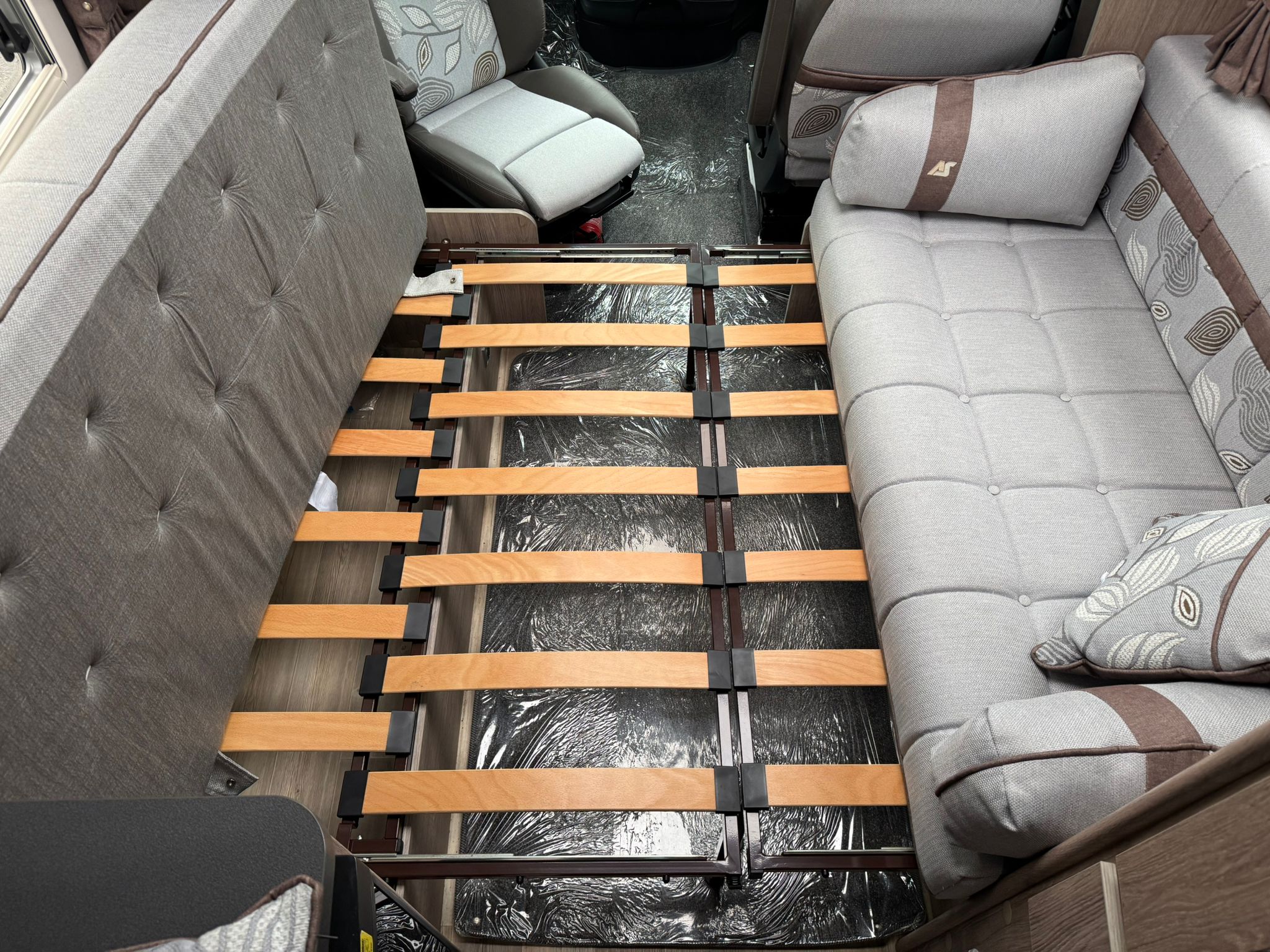 3. How does the bed make up? The layout is very flexible. The two long sofas in the lounge are designed to be used as two comfortable single beds. Alternatively, you can easily pull out a slat system from between them and rearrange the cushions to create one very large and comfortable double bed.