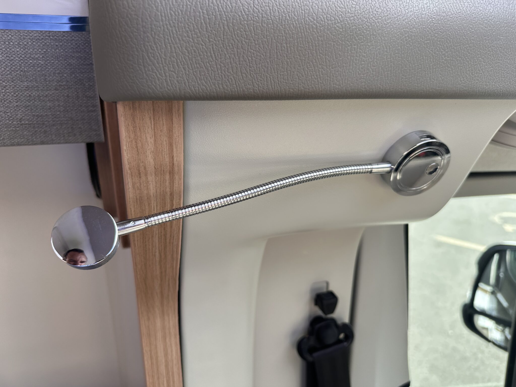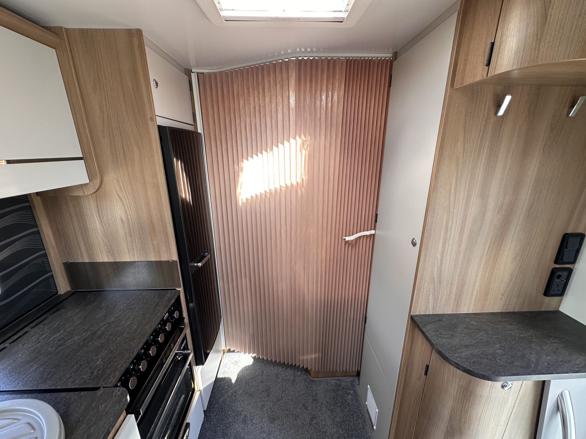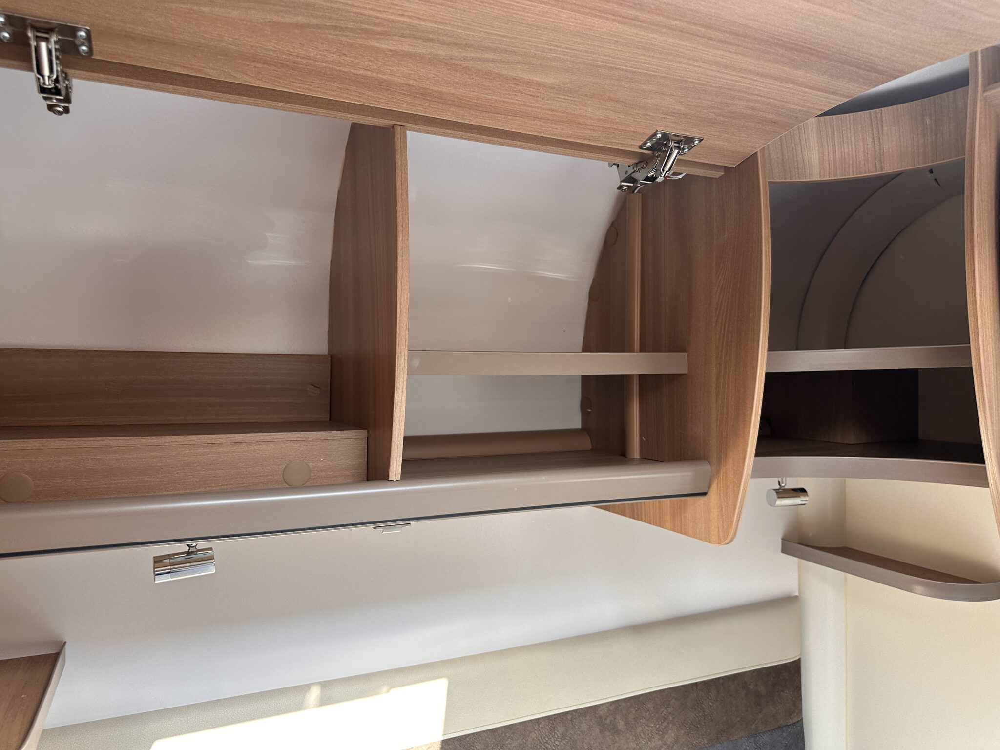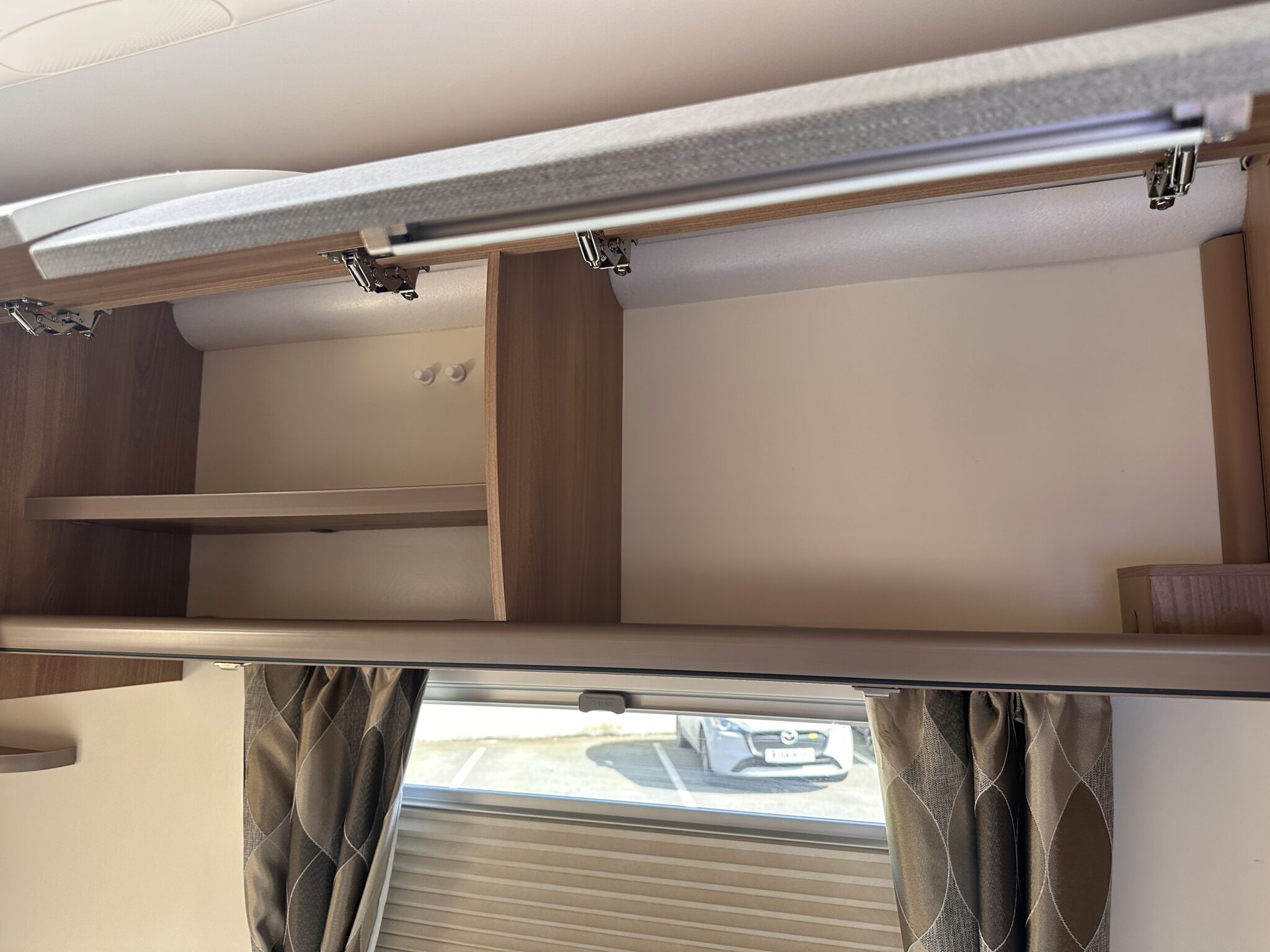 • Living Space & Travel: A bright, spacious front lounge that provides ample room for dining and relaxing. This area easily converts to provide a second large double bed. It also features 4 belted travel seats, making it highly practical for families or couples travelling with guests.