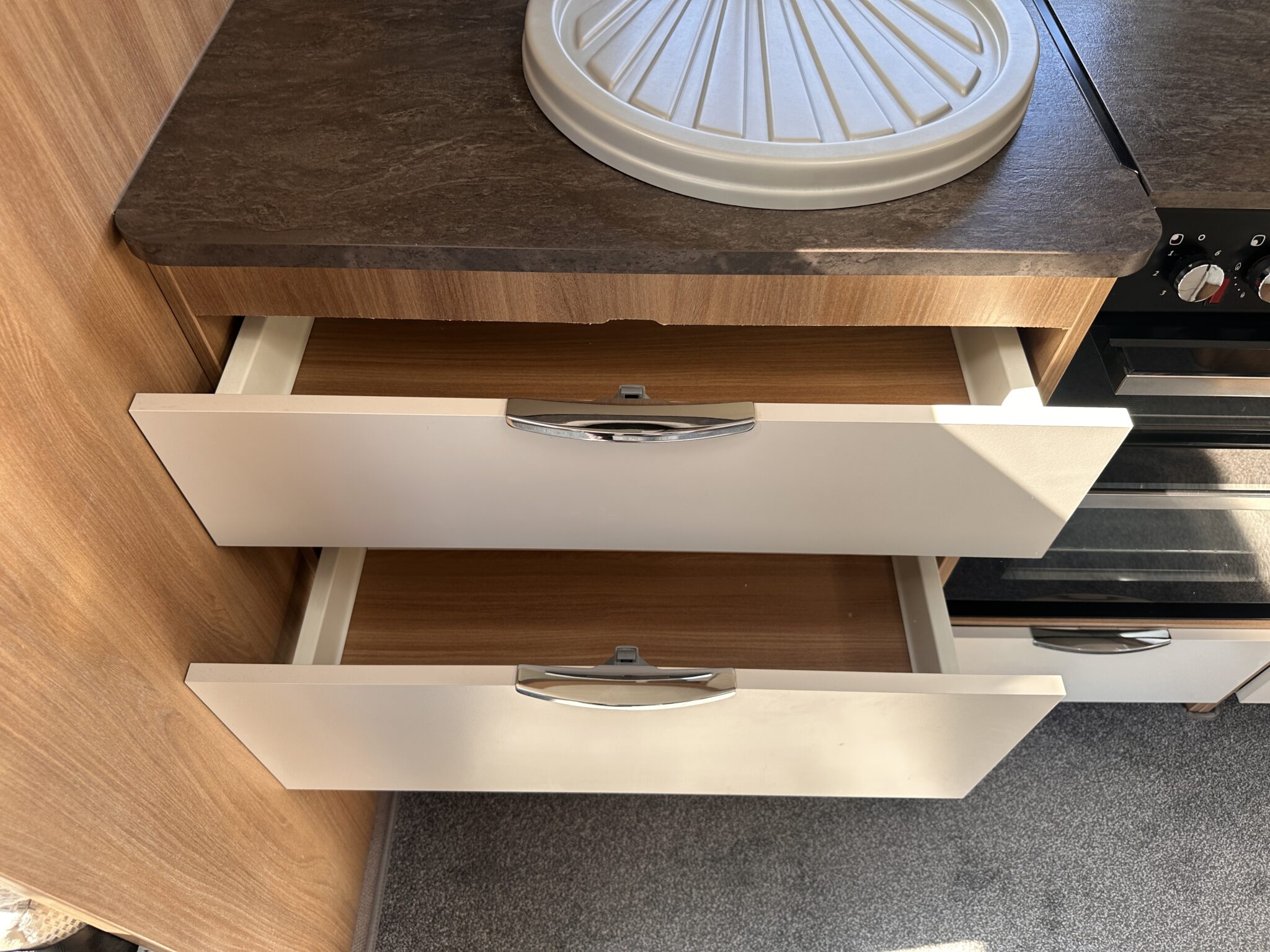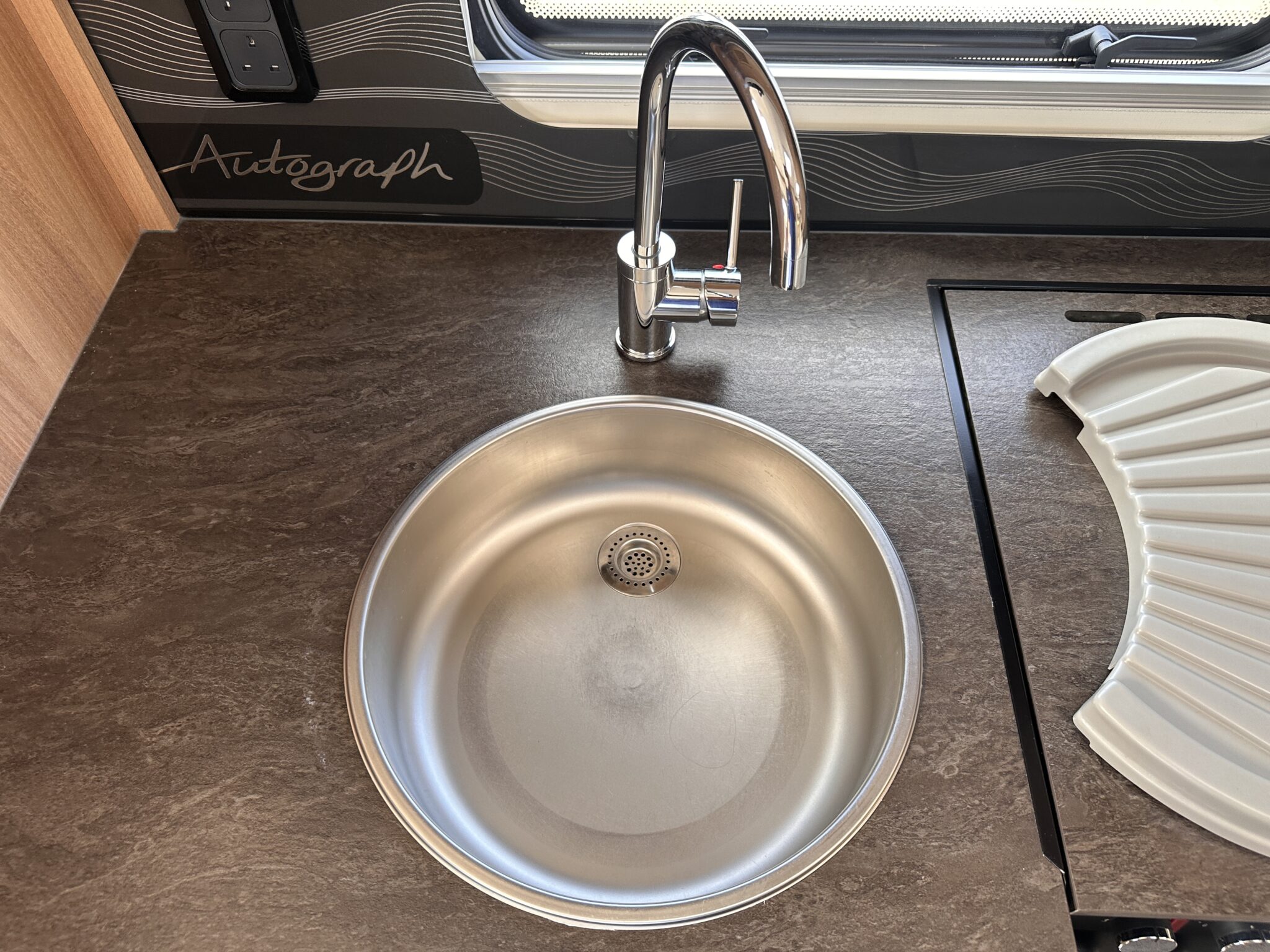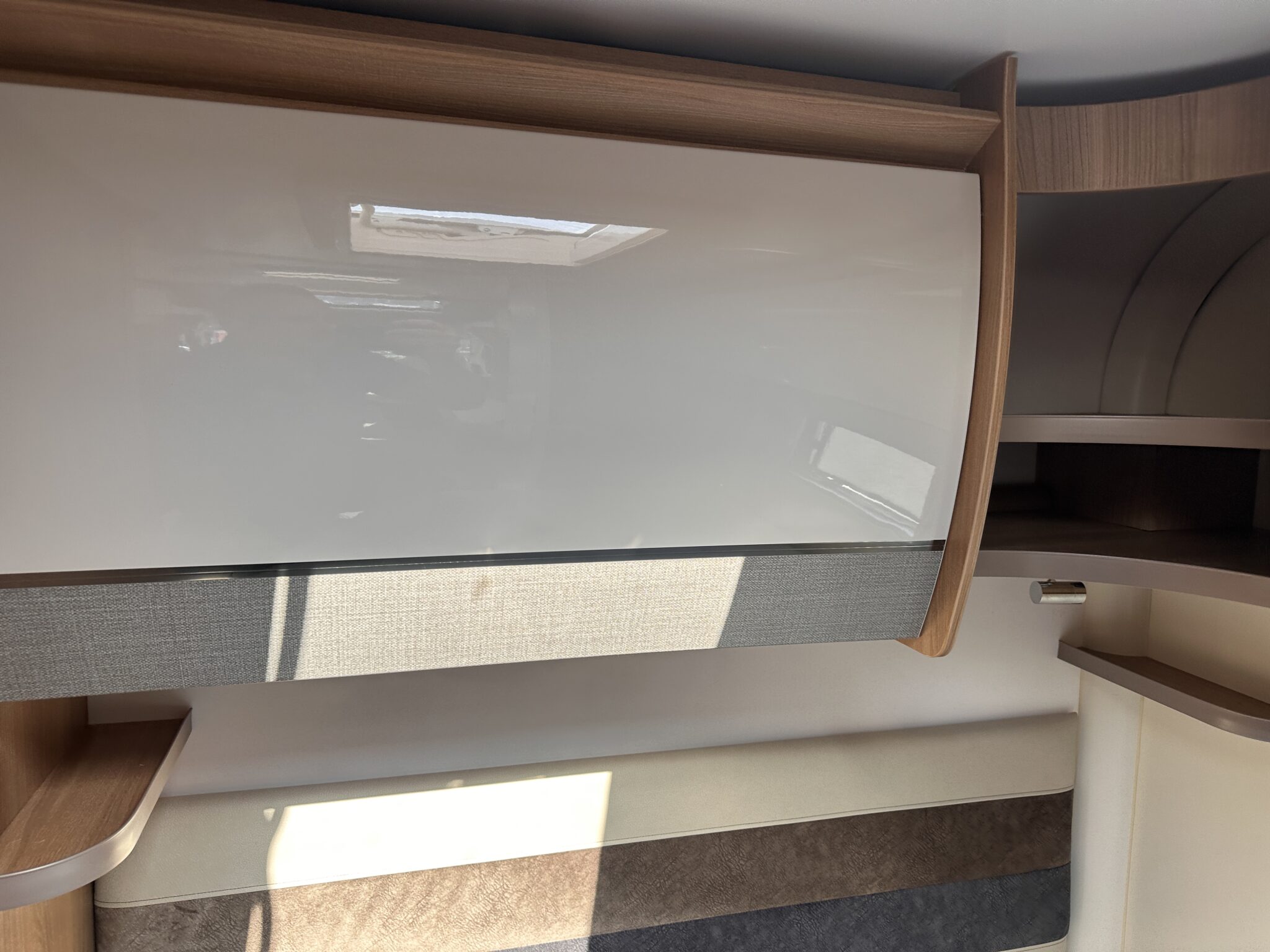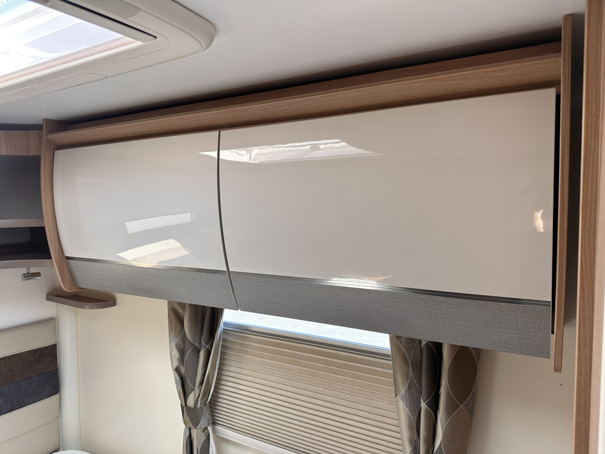 1. What is the bed layout? The Autograph 74-4 features a permanent, fixed French double bed at the rear nearside, meaning you don’t have to assemble your main bed from scratch every night. The front lounge seating also converts into a second large double bed.