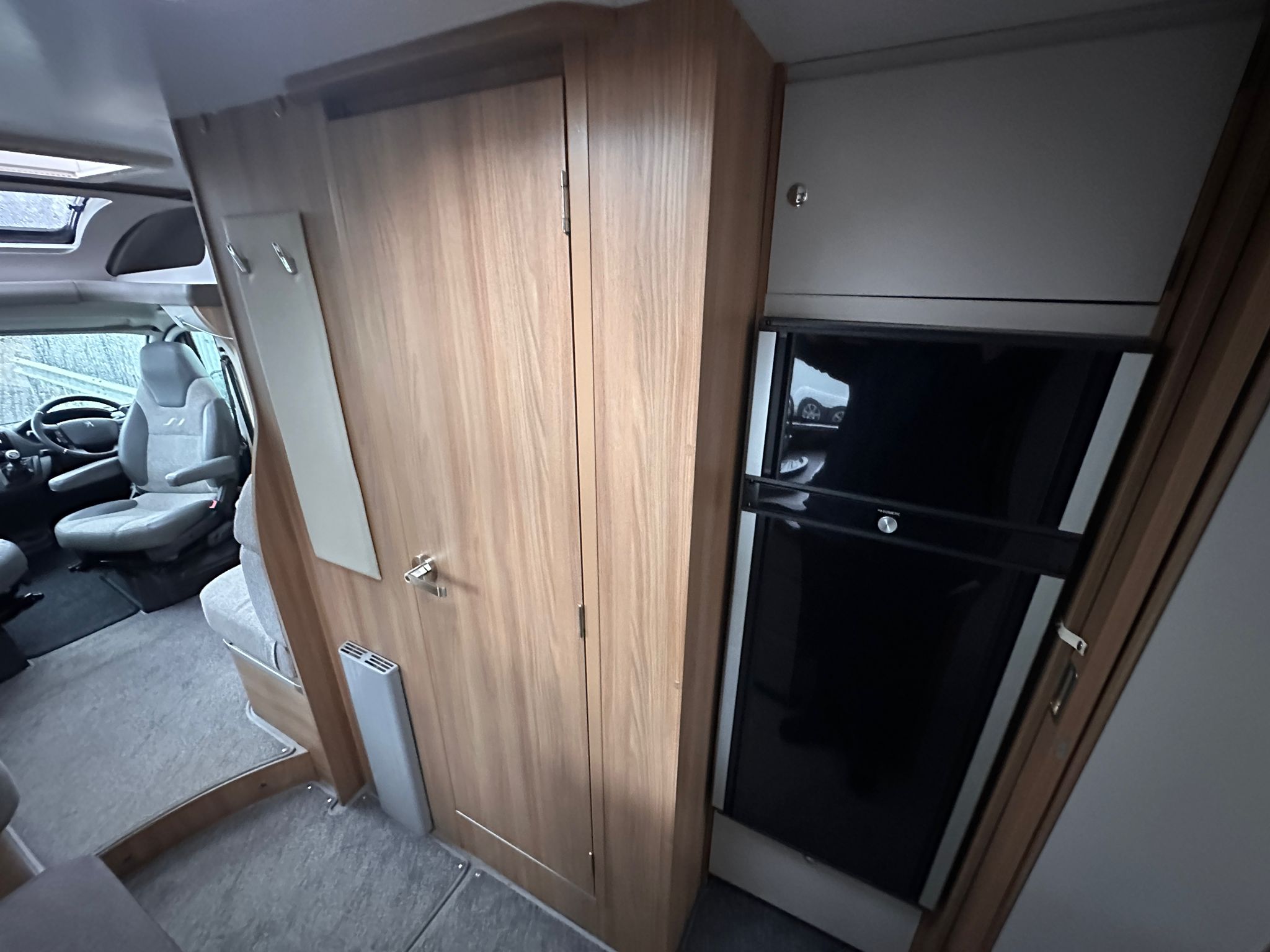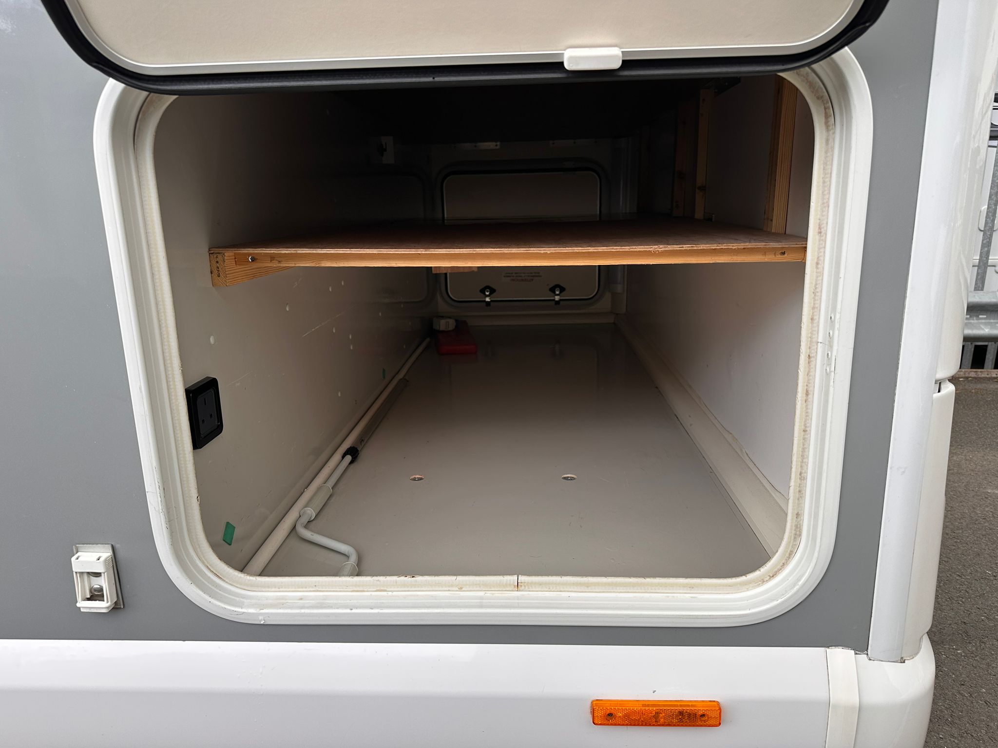 With an overall length of 7.95m and a width of 2.49m, it offers a highly desirable layout featuring fixed rear twin single beds and a large rear garage. Please note, with an MTPLM of 3,850 kg, this vehicle requires a C1 driving licence and cannot be driven on a standard UK licence alone.