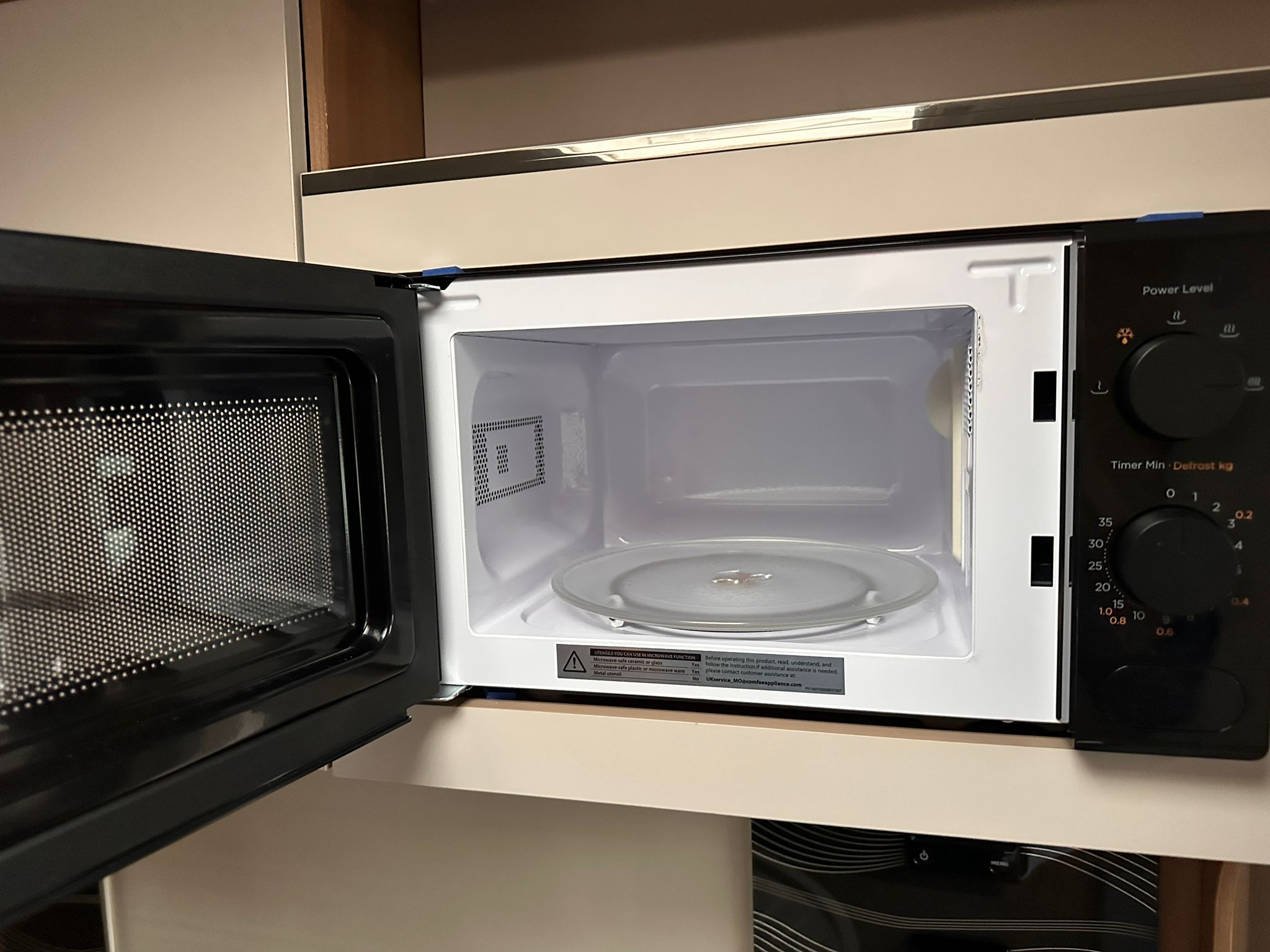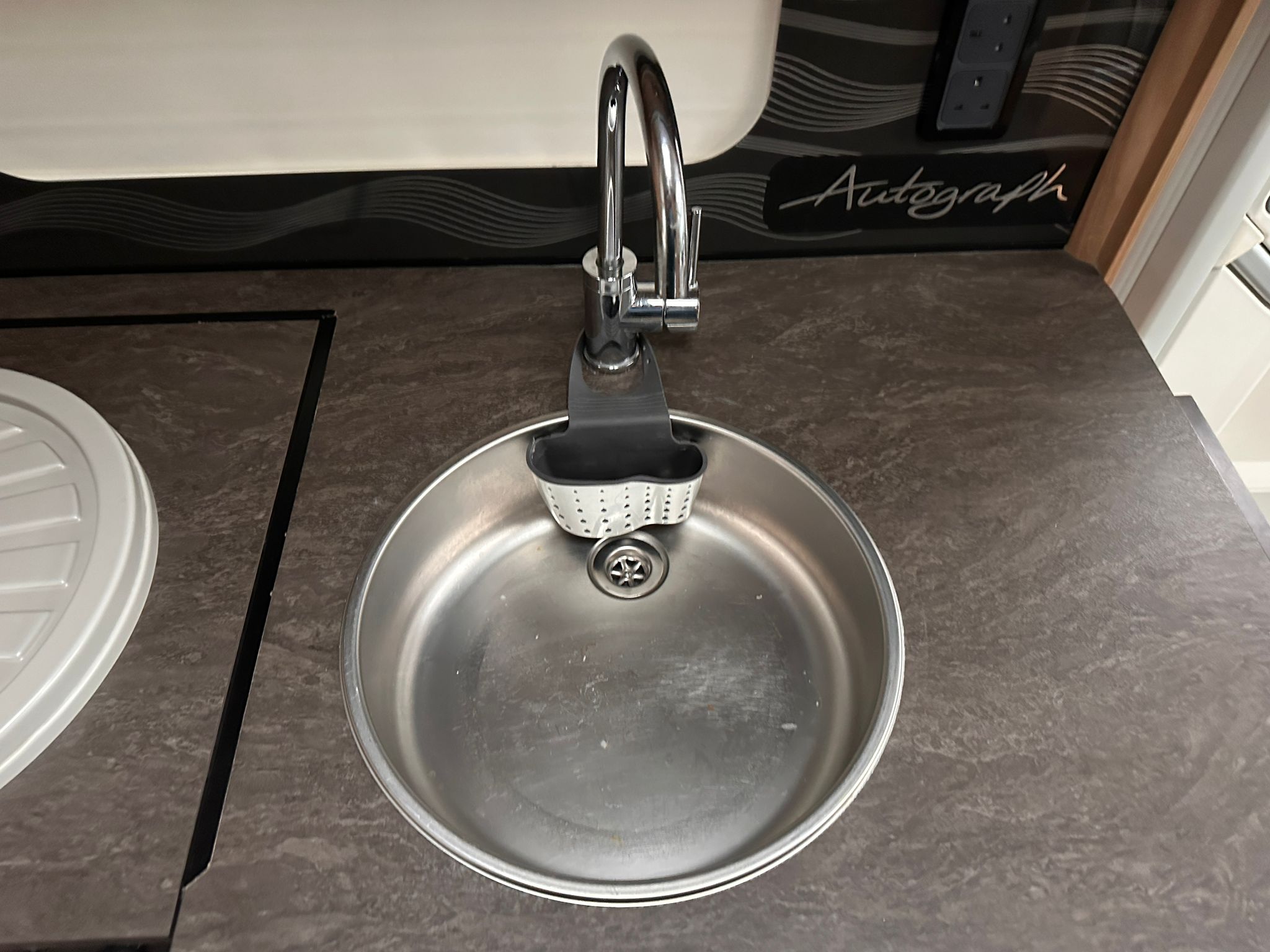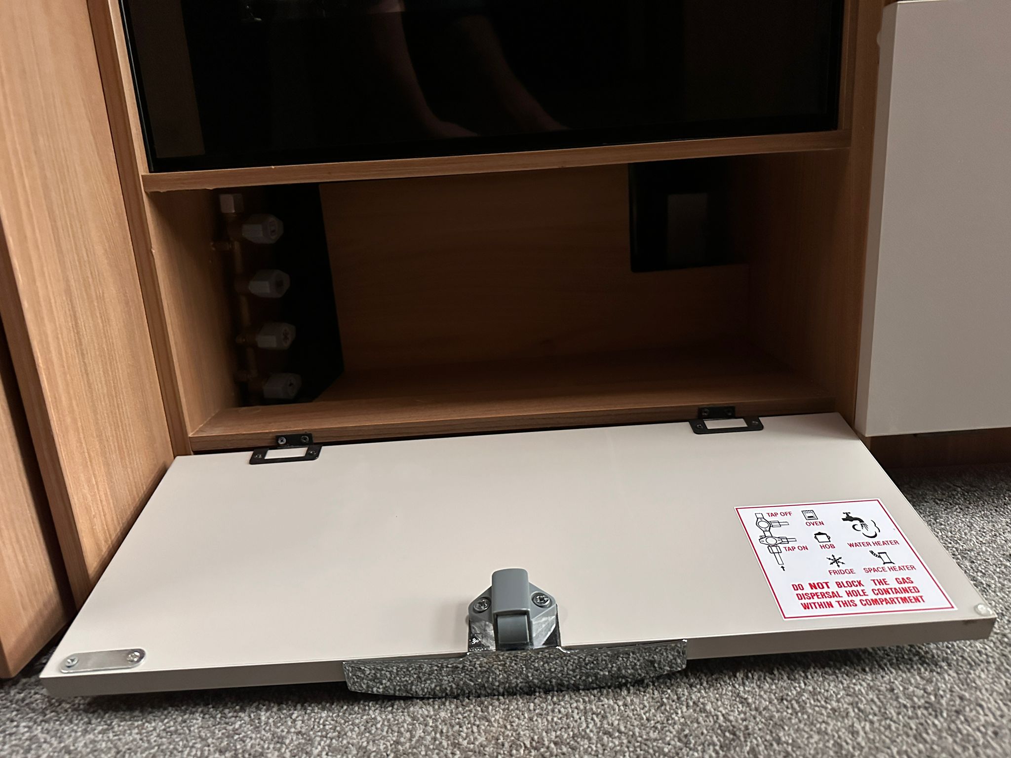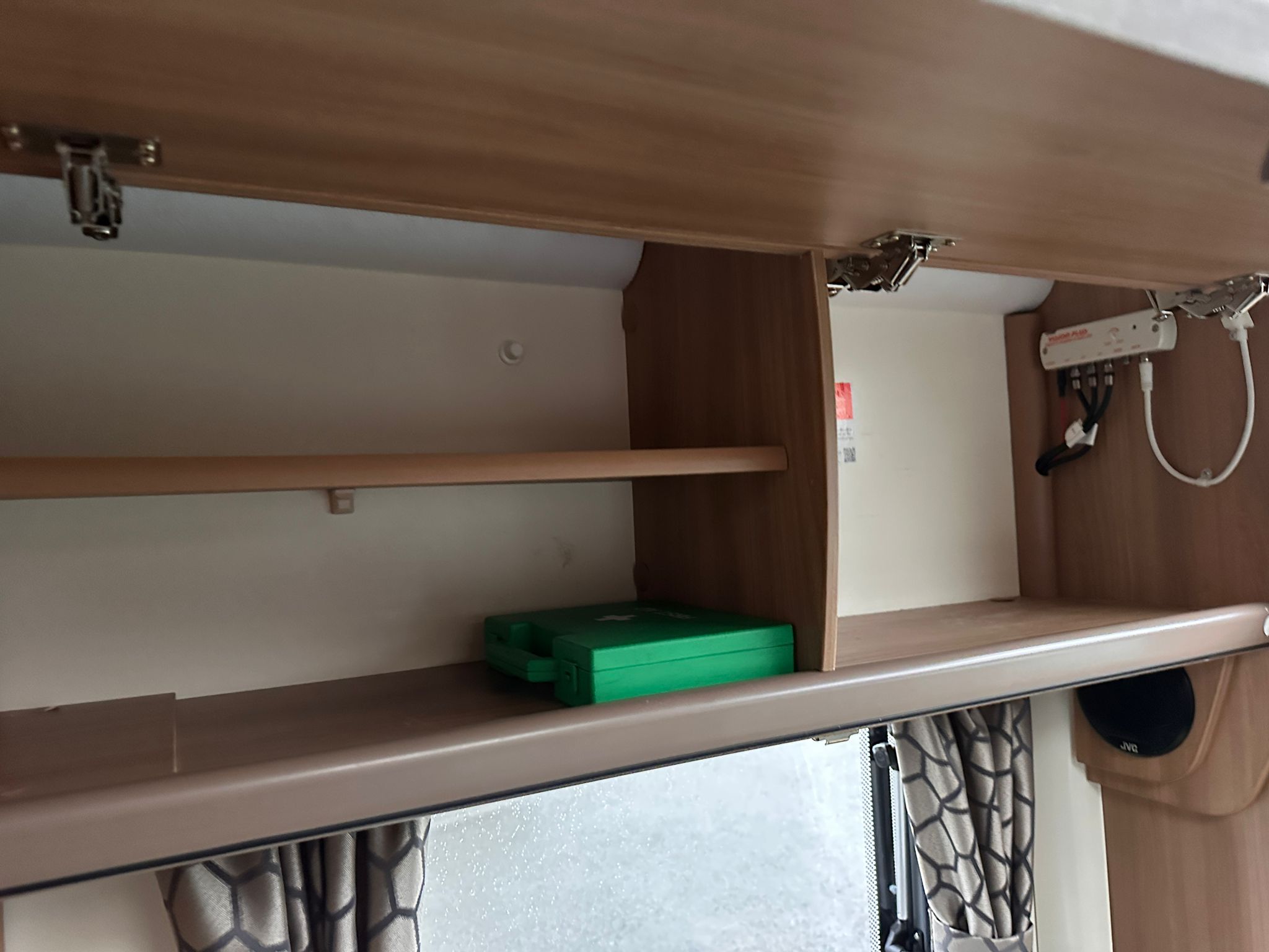 • Kitchen: A brilliantly equipped central kitchen featuring a Thetford K-Series oven, grill, and a 3-burner gas hob with one electric hotplate. It also includes a microwave and a massive 153-litre Dometic dual-opening fridge freezer.