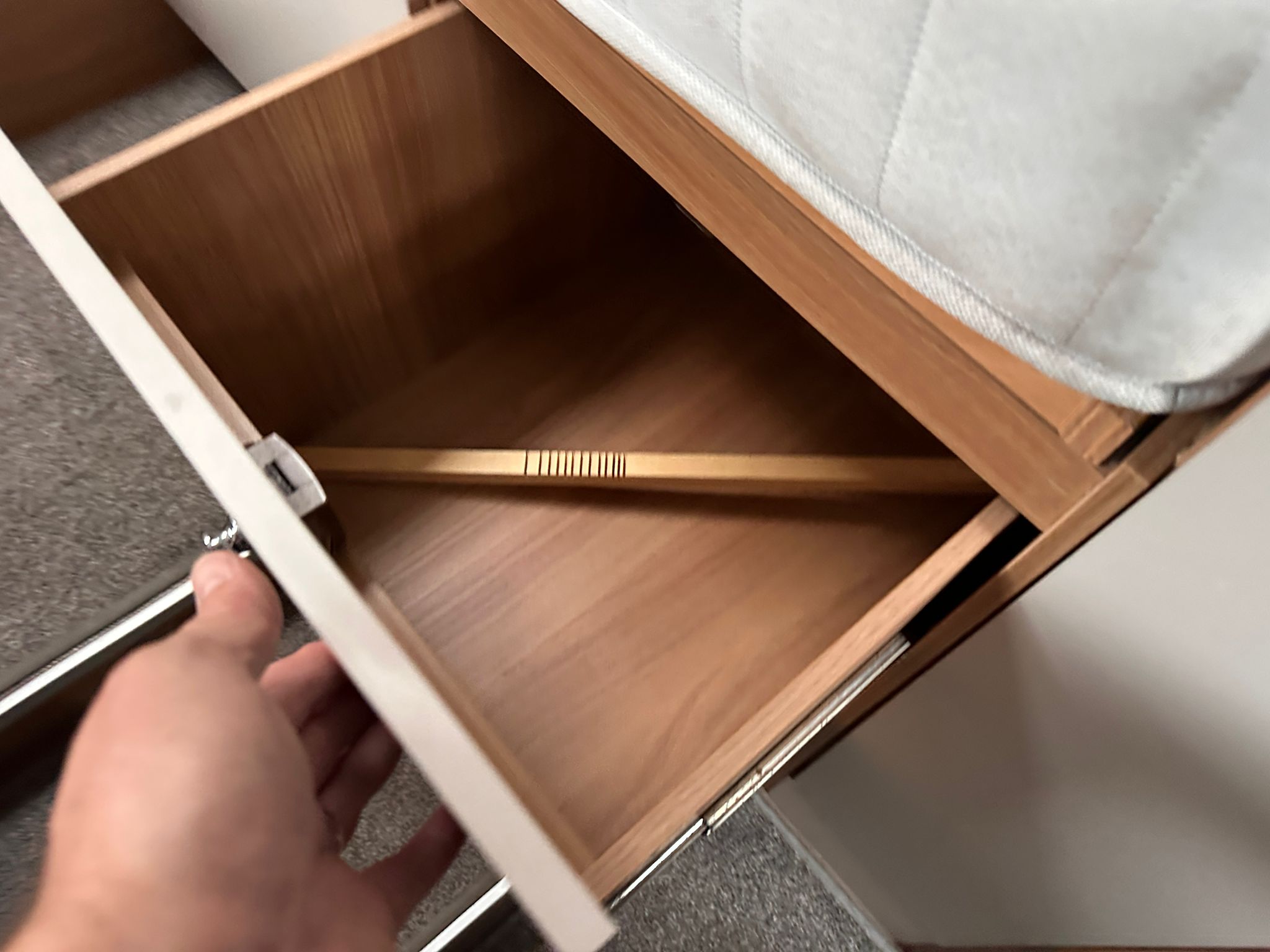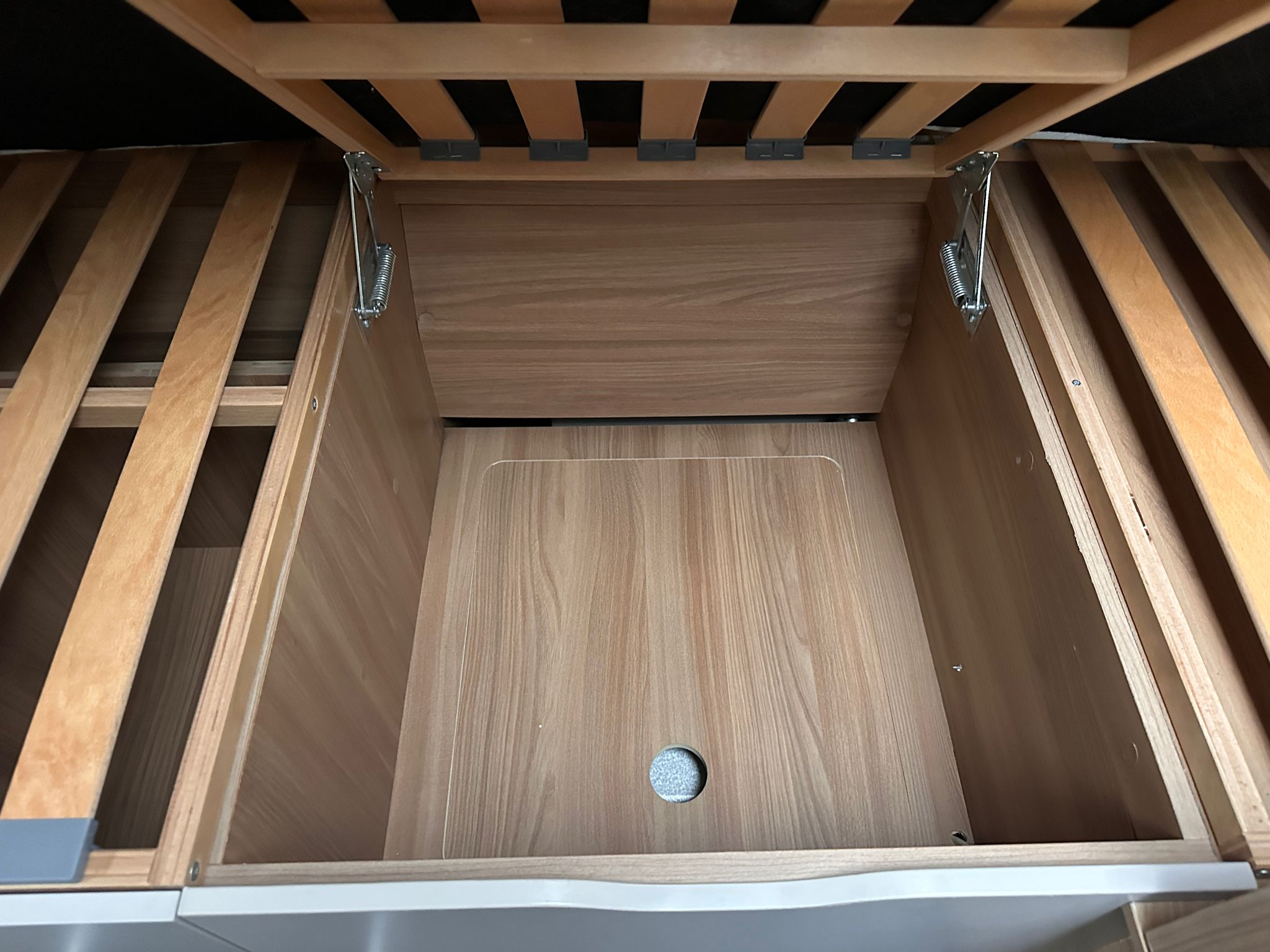 • Bedroom: The rear of the motorhome features fixed twin single beds, offering a comfortable, dedicated sleeping area without the need for daily setup.