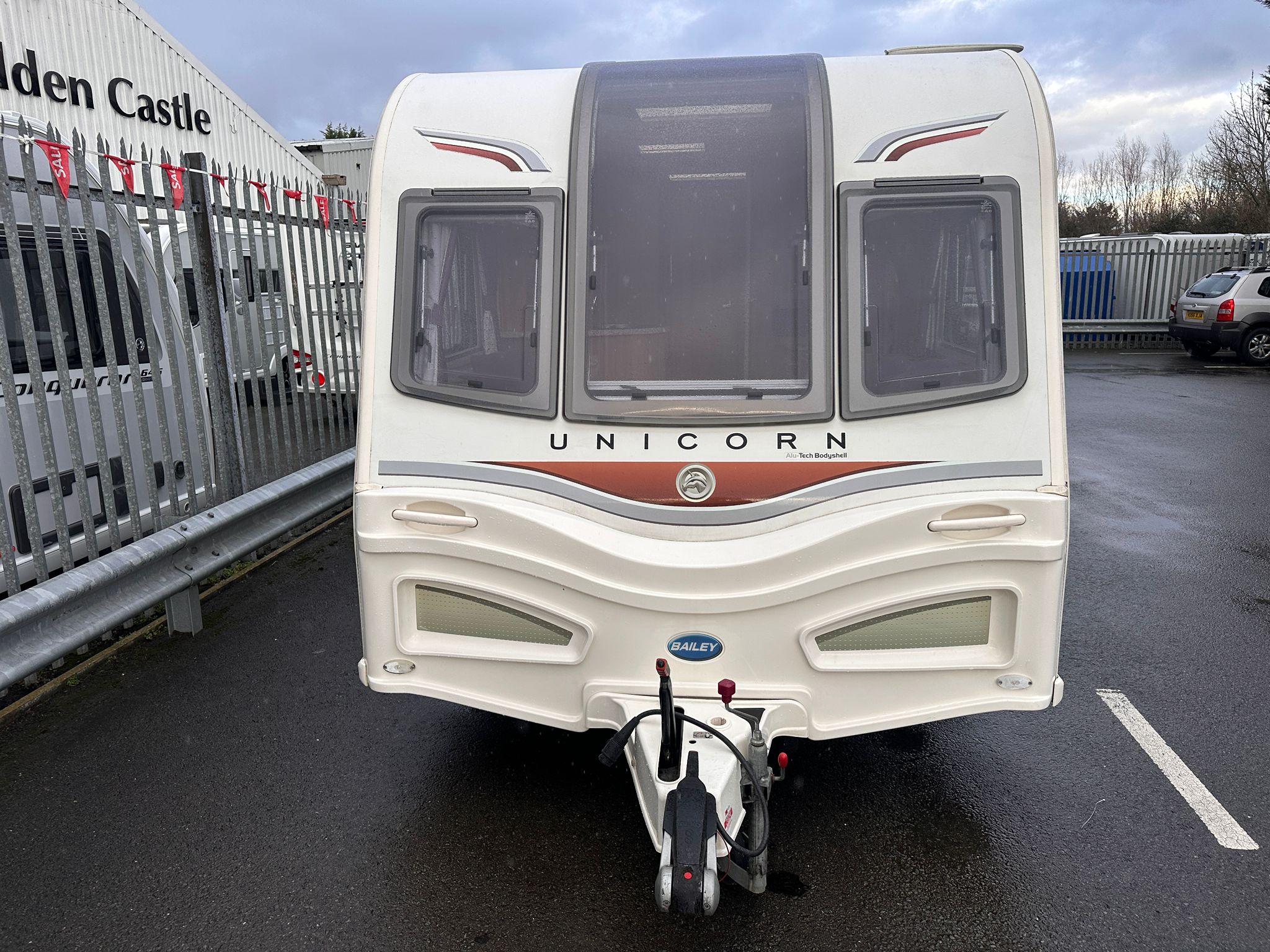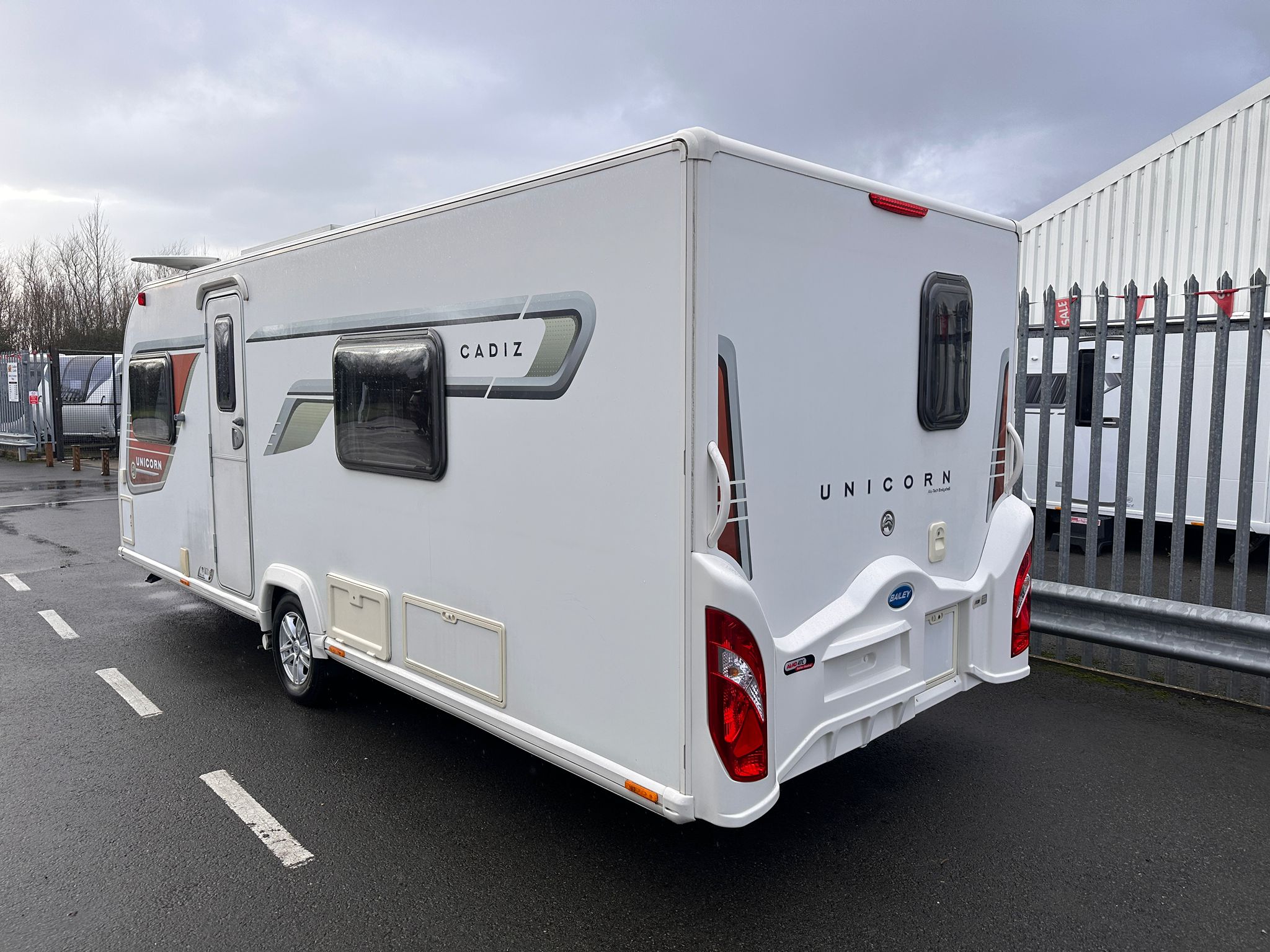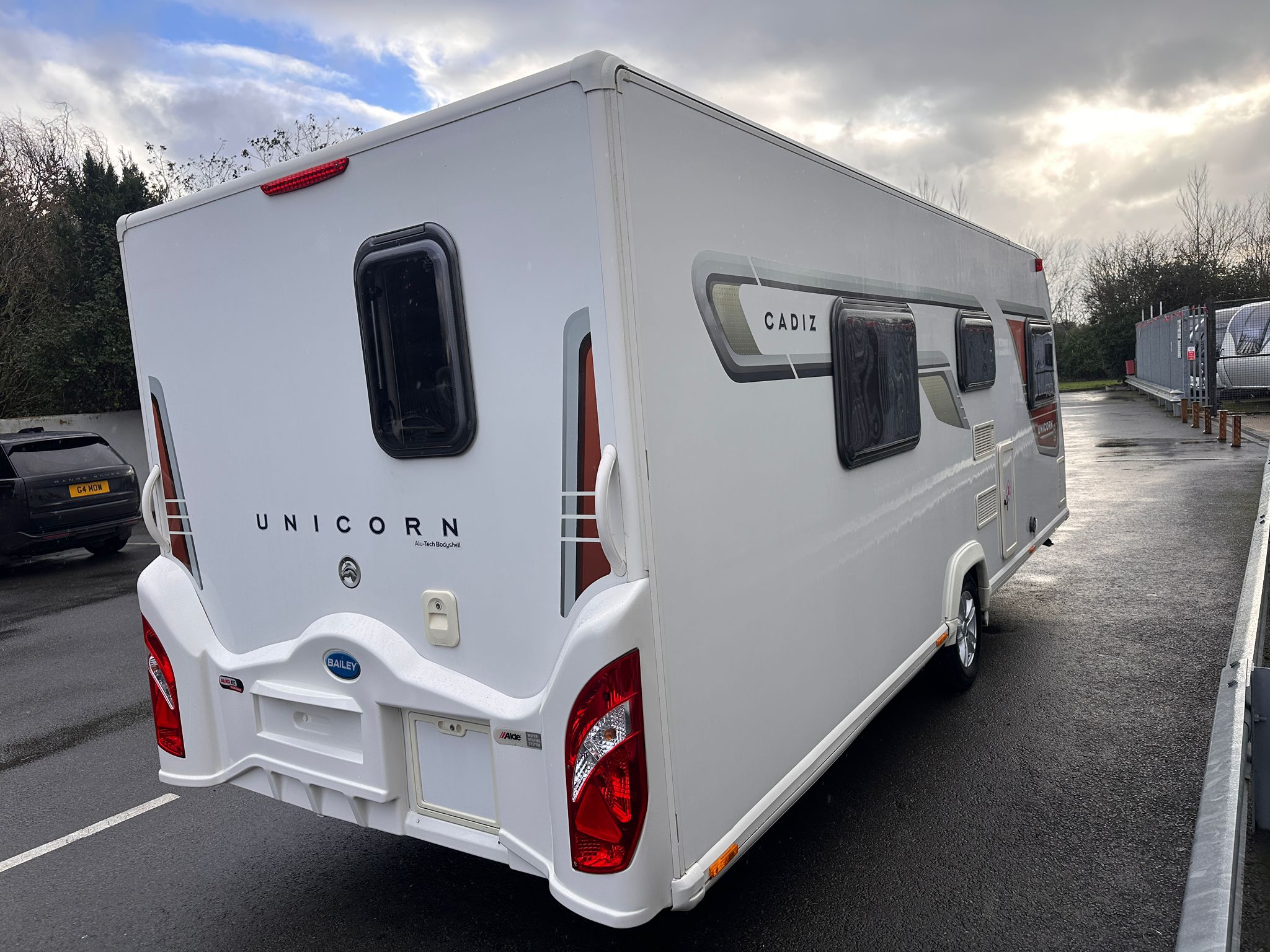 The 2014 Bailey Unicorn Cadiz (Series 2) is one of the most sought-after layouts on the market, featuring desirable twin fixed single beds and a spacious end washroom. As a flagship Unicorn model, it is built with Bailey’s patented Alu-Tech bodyshell and comes standard with the luxurious Alde wet central heating system. This example is packed with high-value extras, including a Solar Panel and a fitted Motor Mover, making it completely ready for touring. As with all our used caravans, it has undergone a comprehensive workshop inspection and full damp check.