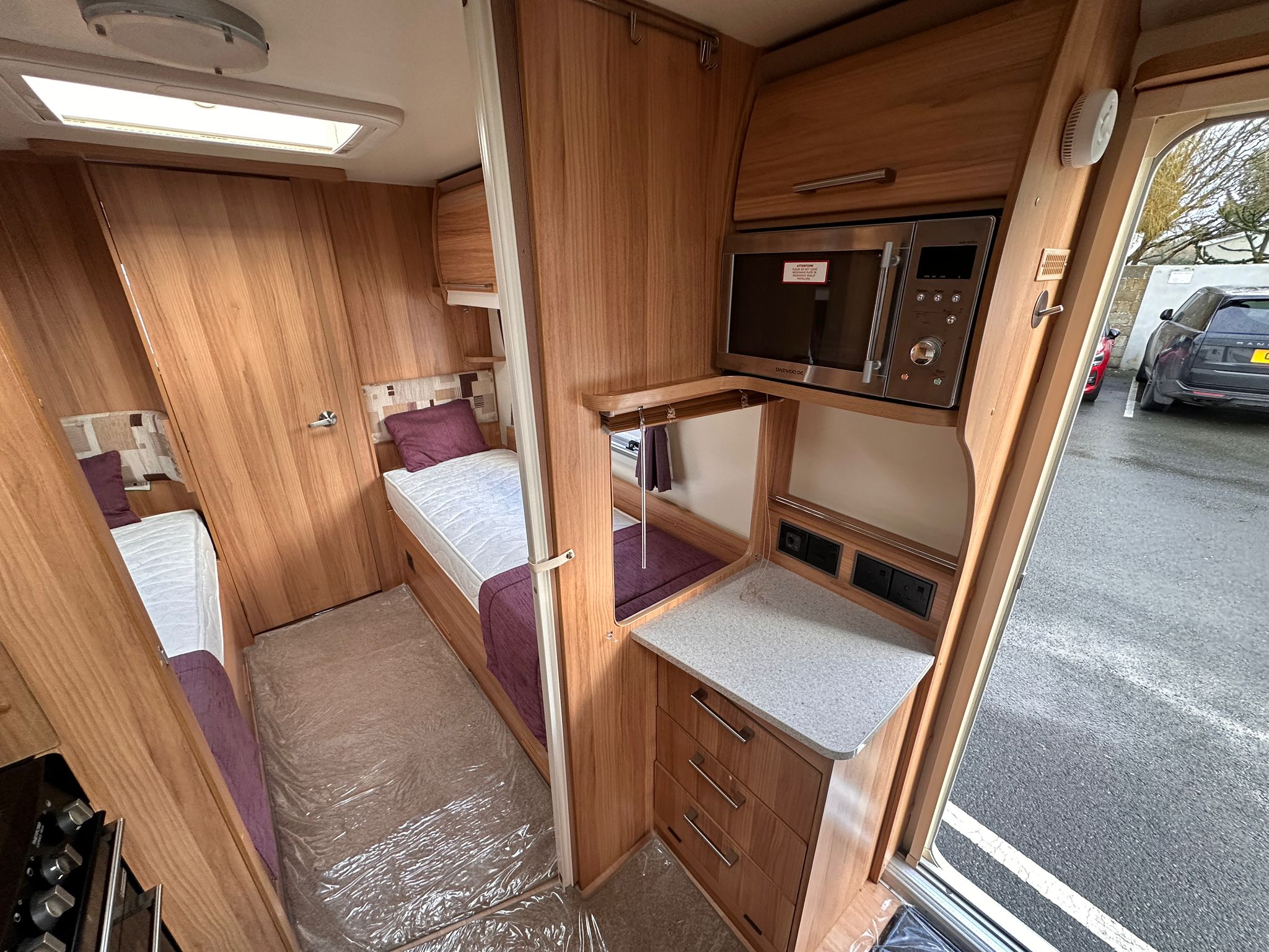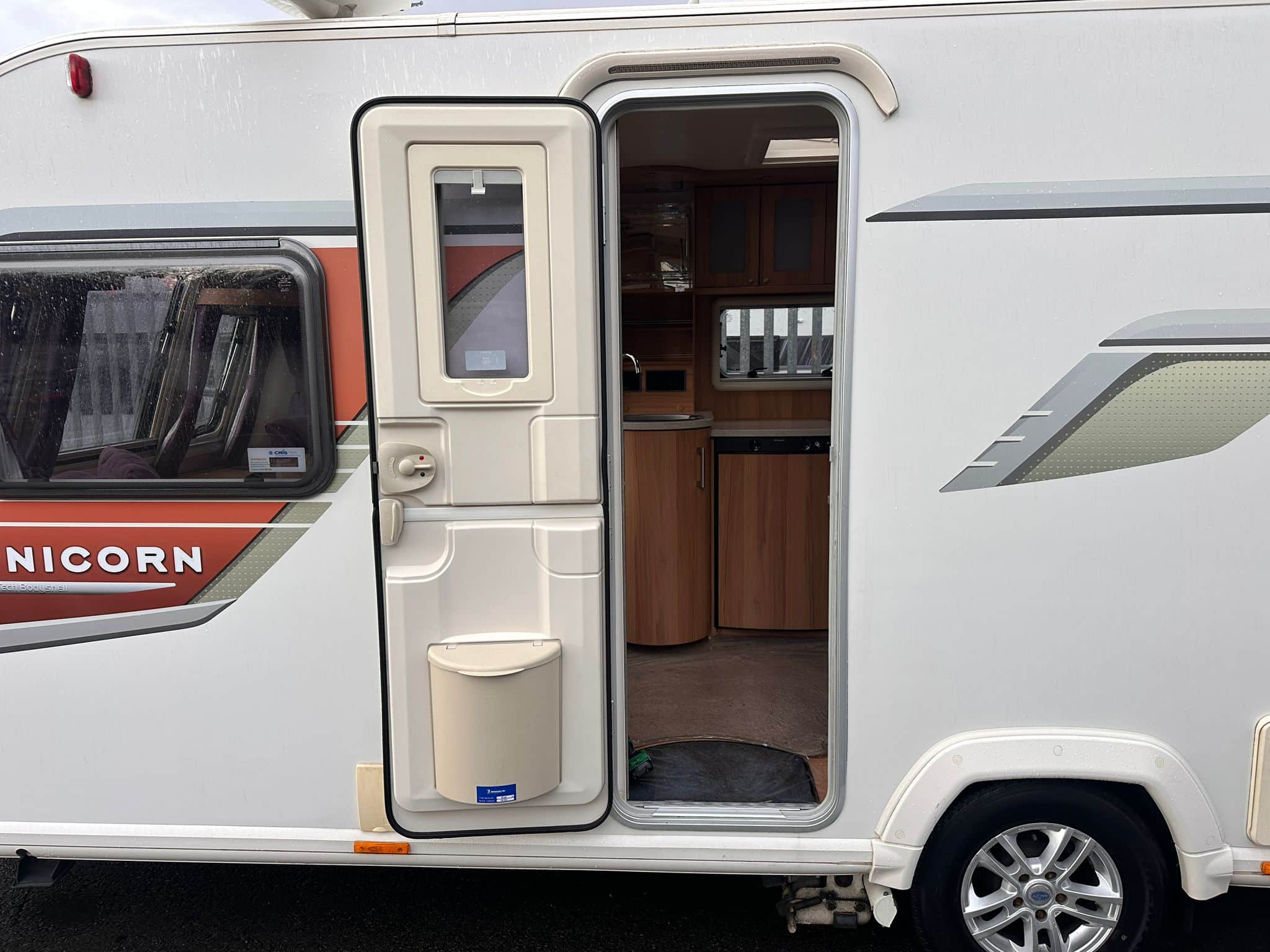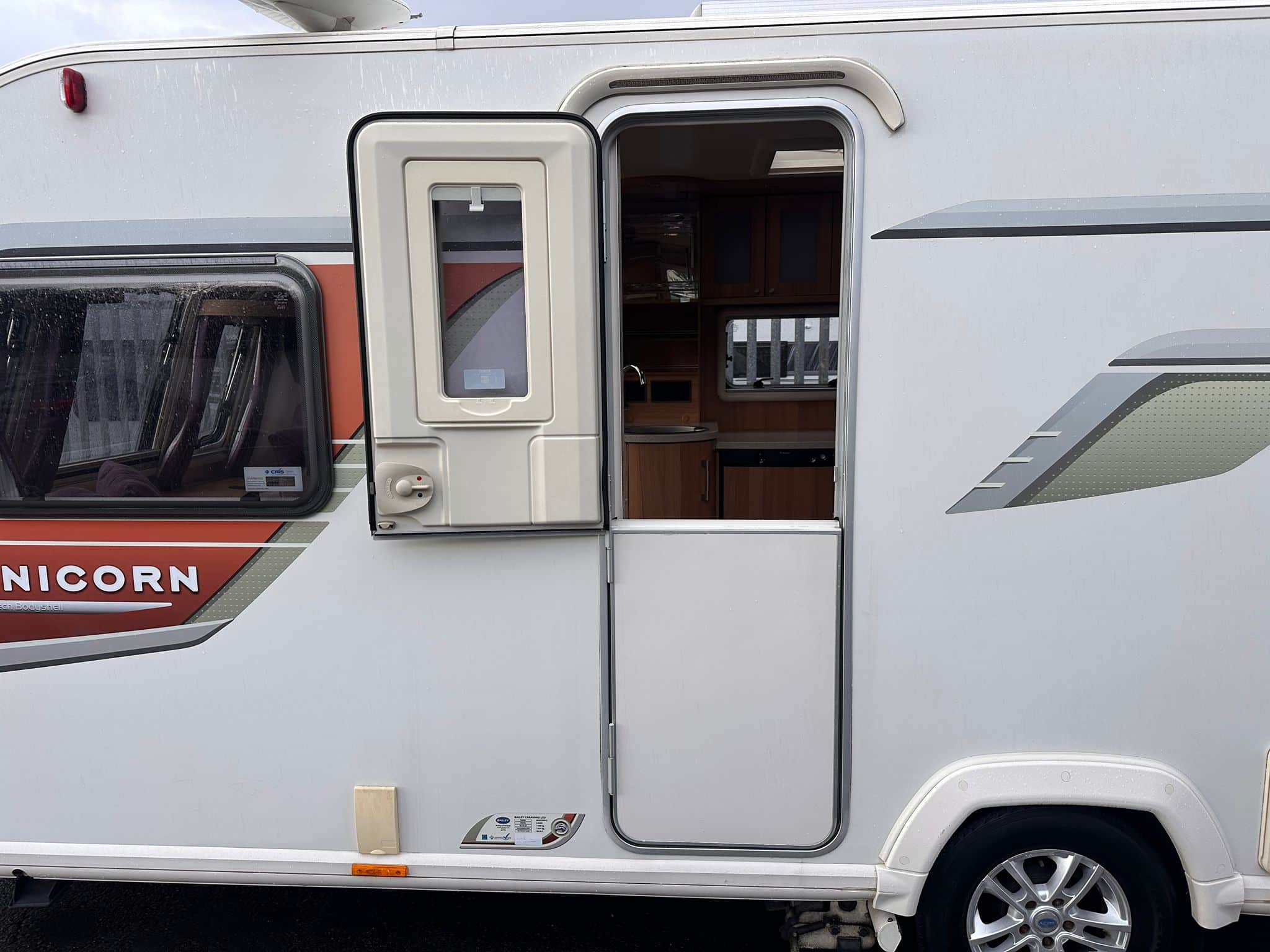 The 2014 Bailey Unicorn Cadiz (Series 2) is one of the most sought-after layouts on the market, featuring desirable twin fixed single beds and a spacious end washroom. As a flagship Unicorn model, it is built with Bailey’s patented Alu-Tech bodyshell and comes standard with the luxurious Alde wet central heating system. This example is packed with high-value extras, including a Solar Panel and a fitted Motor Mover, making it completely ready for touring. As with all our used caravans, it has undergone a comprehensive workshop inspection and full damp check.