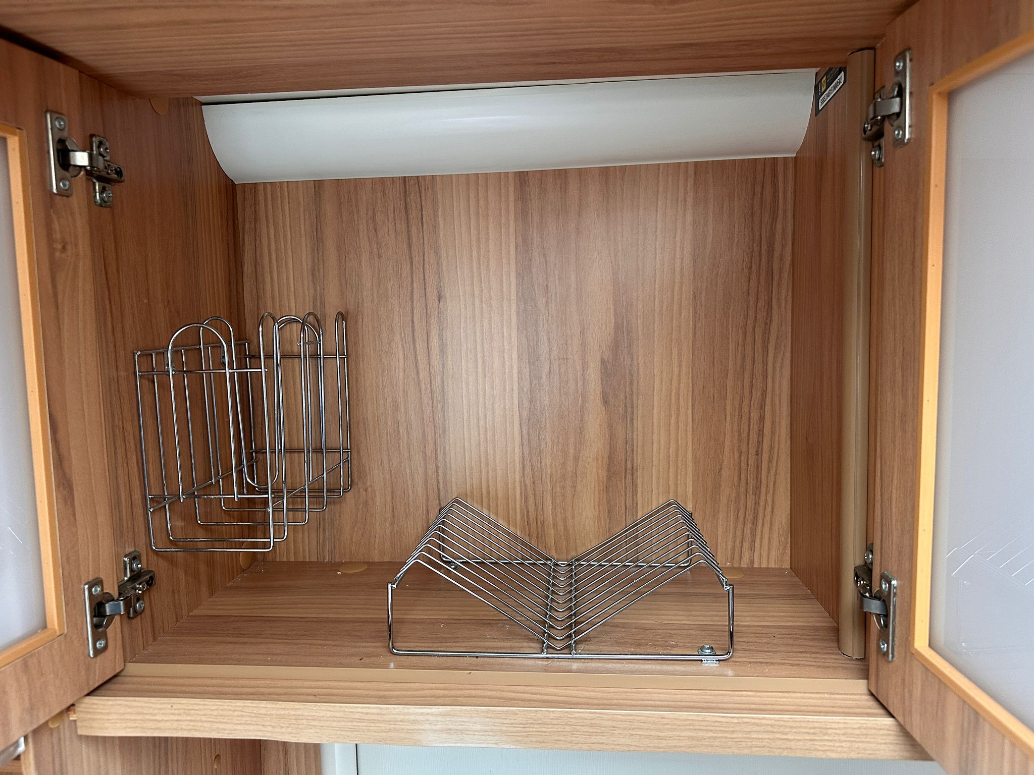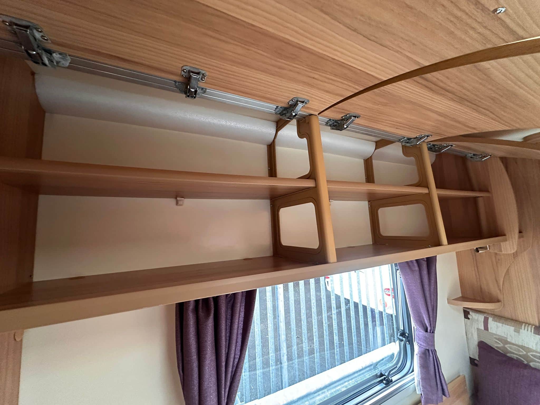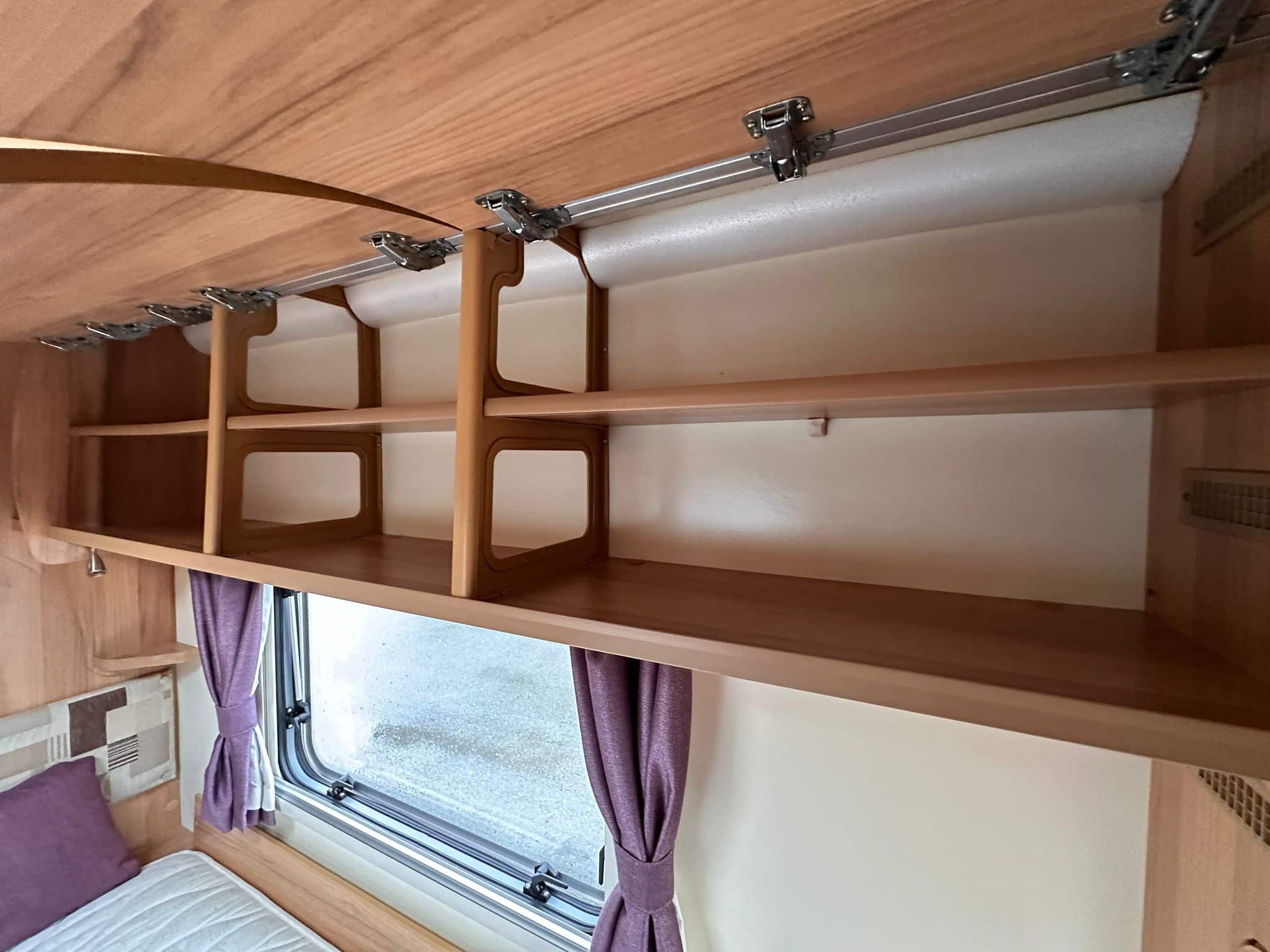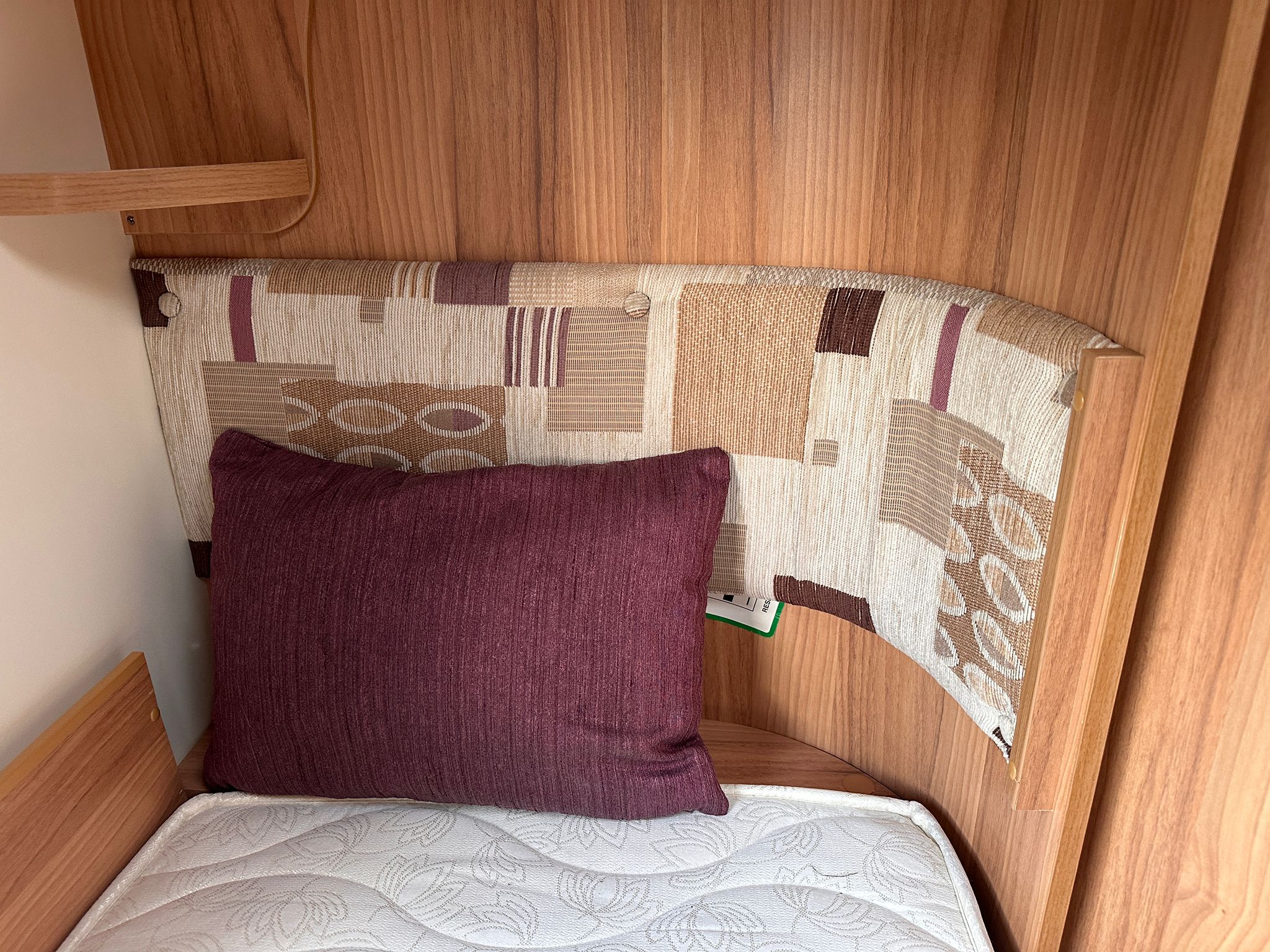 Bedroom: The rear bedroom features two comfortable fixed single beds. This layout is perfect for couples who prefer uninterrupted sleep or for families with older children. It includes overhead storage and a TV point.