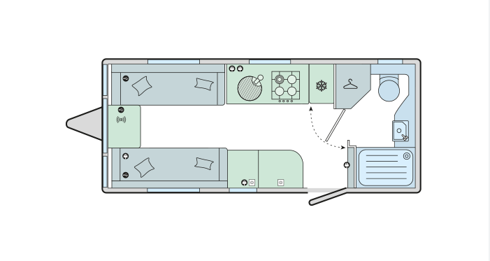 4. What kind of heating does it have? It is equipped with the highly desirable Alde Hydronic Compact 3020 wet central heating system. This works just like the radiators in a house, providing silent and even warmth, making the caravan perfectly suited for winter touring.