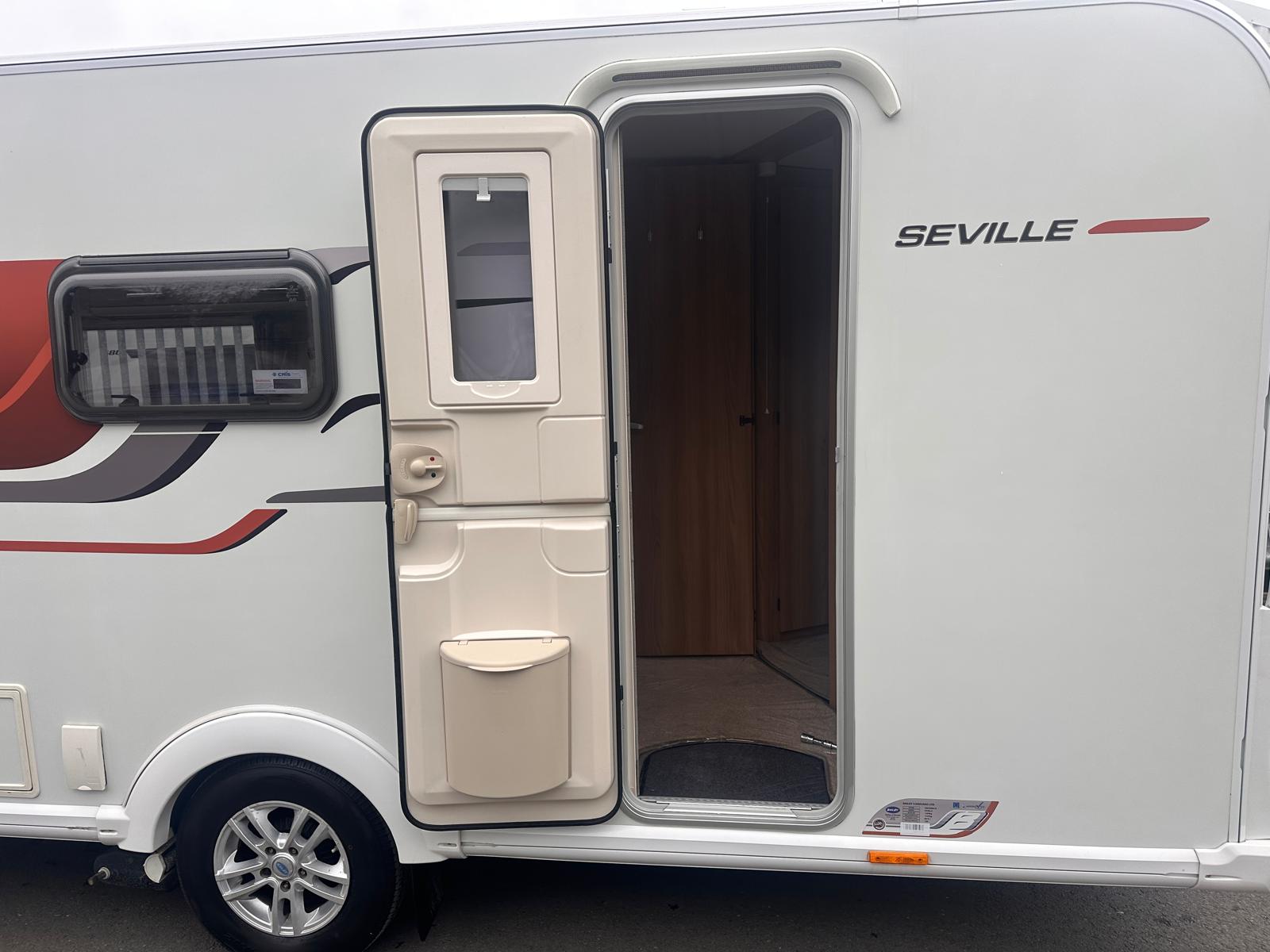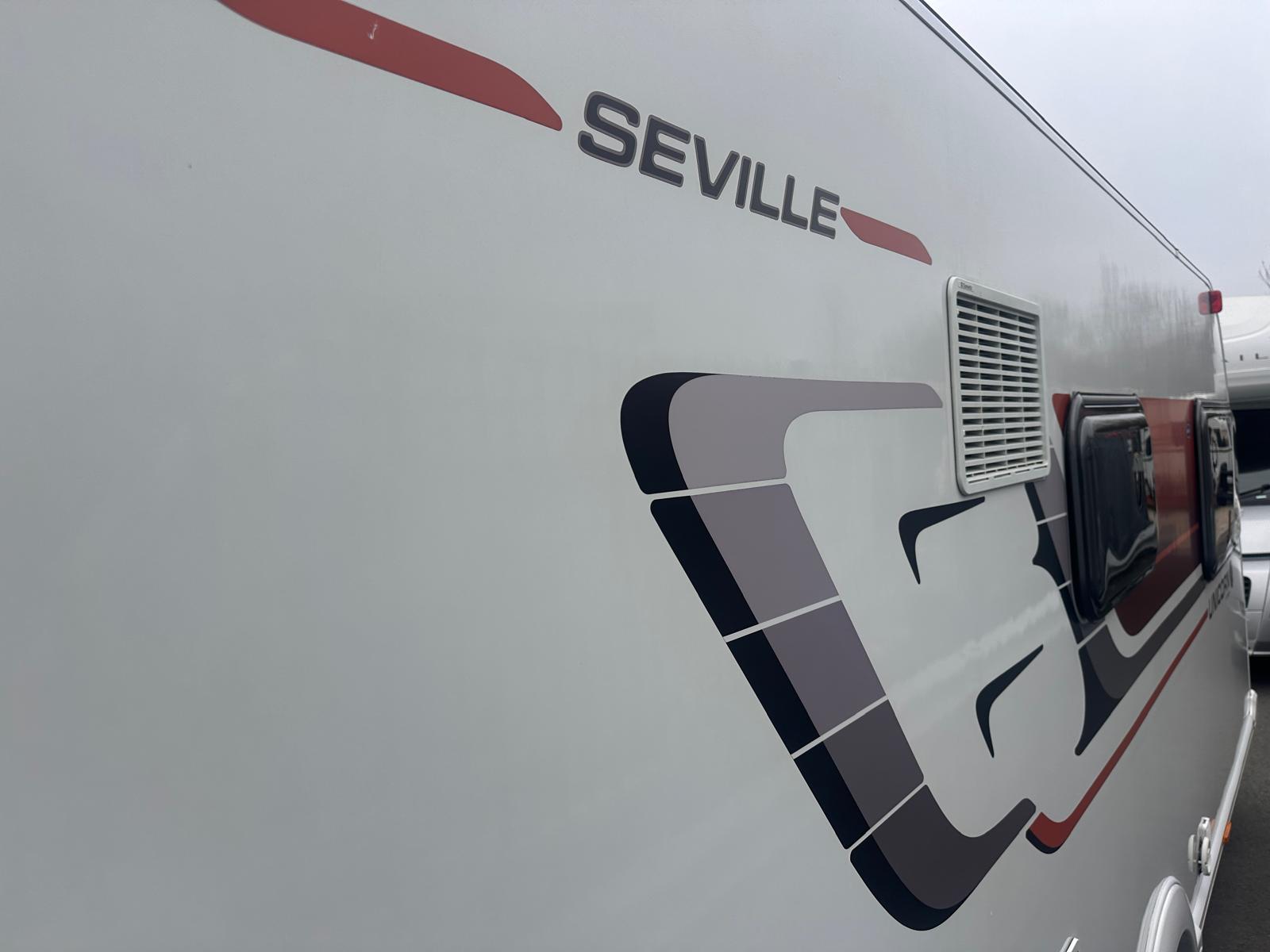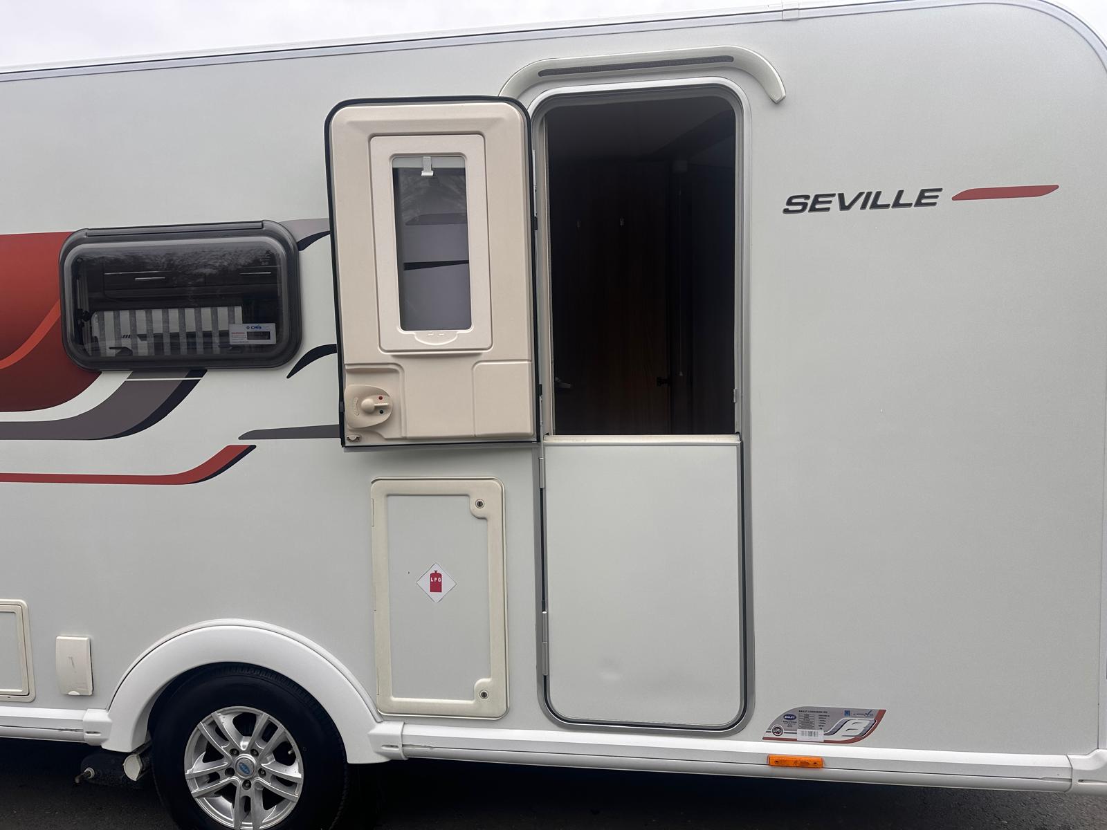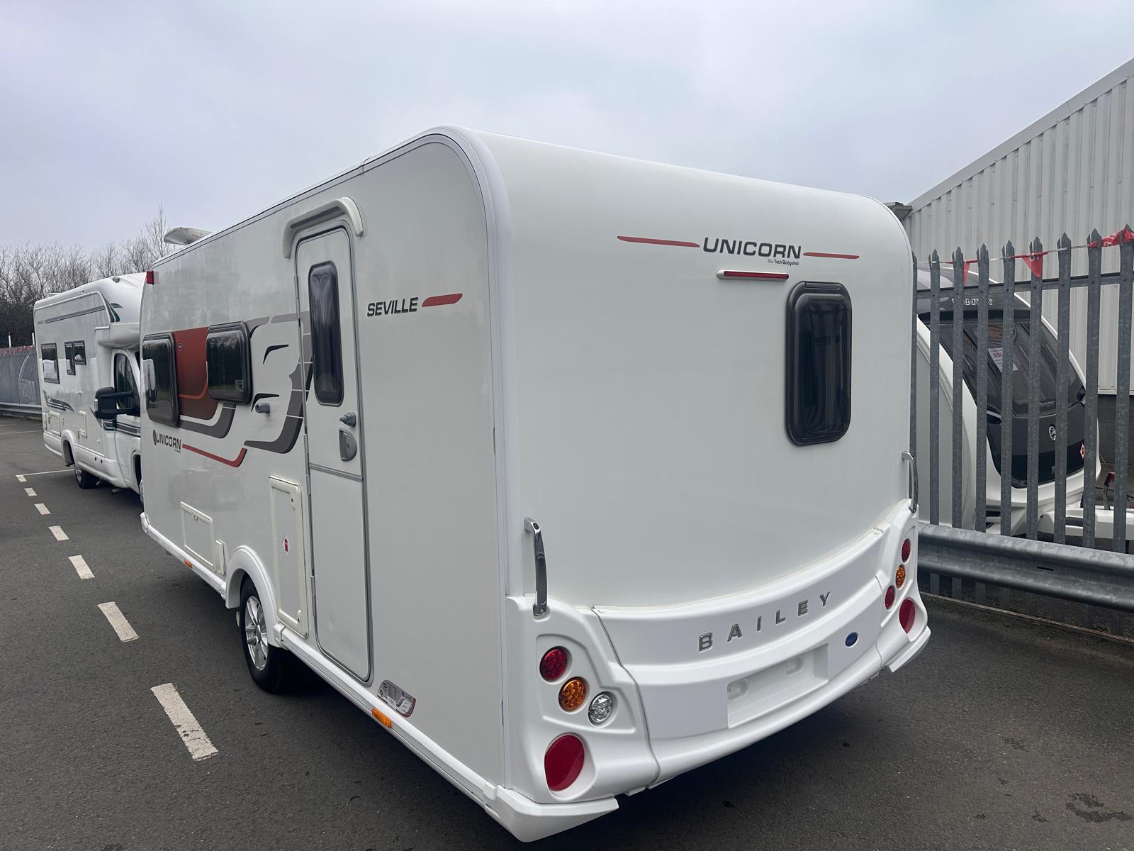 The 2015 Bailey Unicorn Seville (Series 3) is a premium, single-axle touring caravan renowned for its high-end specifications and true all-season capability. With an overall shipping length of 6.47m (21' 3"), it offers an incredibly spacious layout for couples.