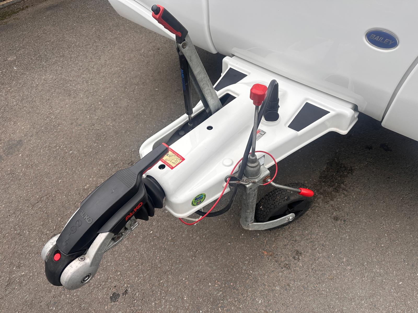 Construction & Safety: Built with Bailey’s renowned Alu-Tech bodyshell for superior insulation and durability. For towing safety, it features AL-KO ATC (Active Trailer Control) and an AL-KO stabiliser hitch.