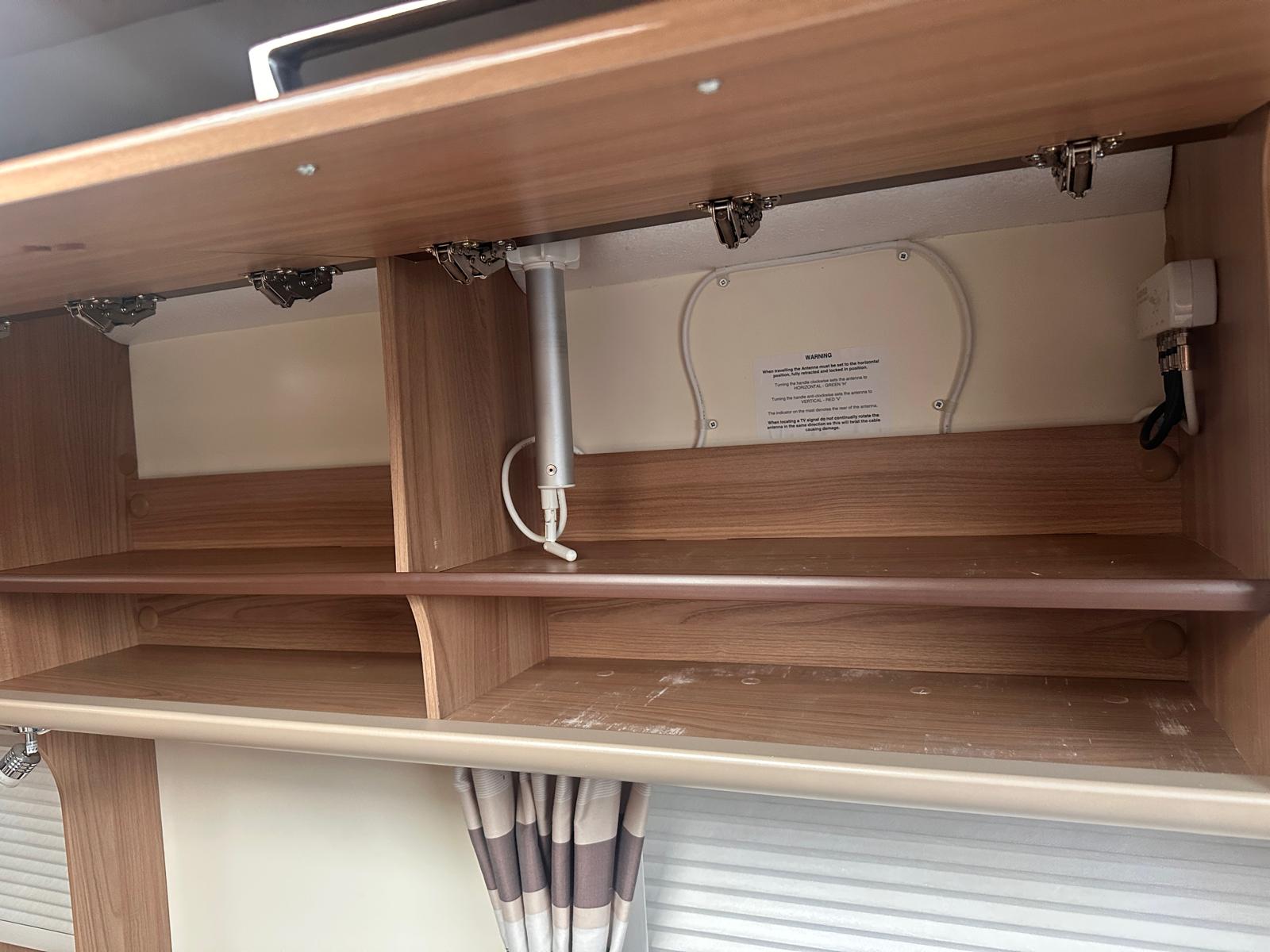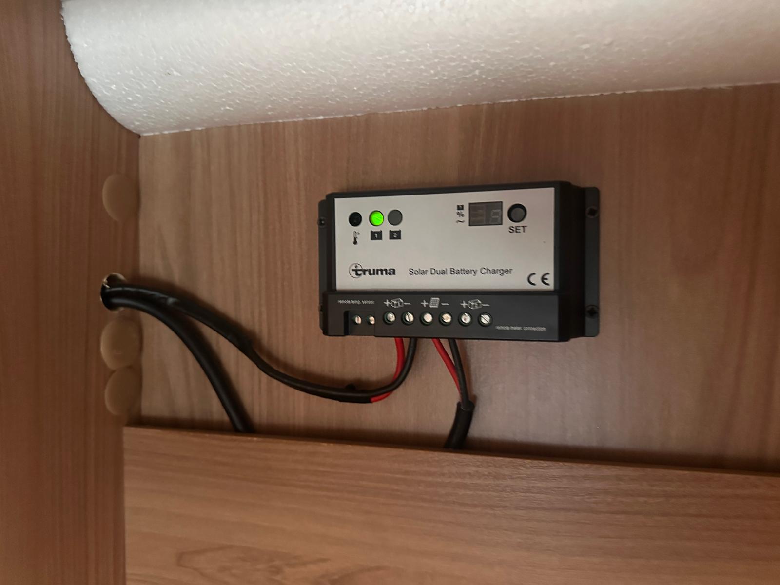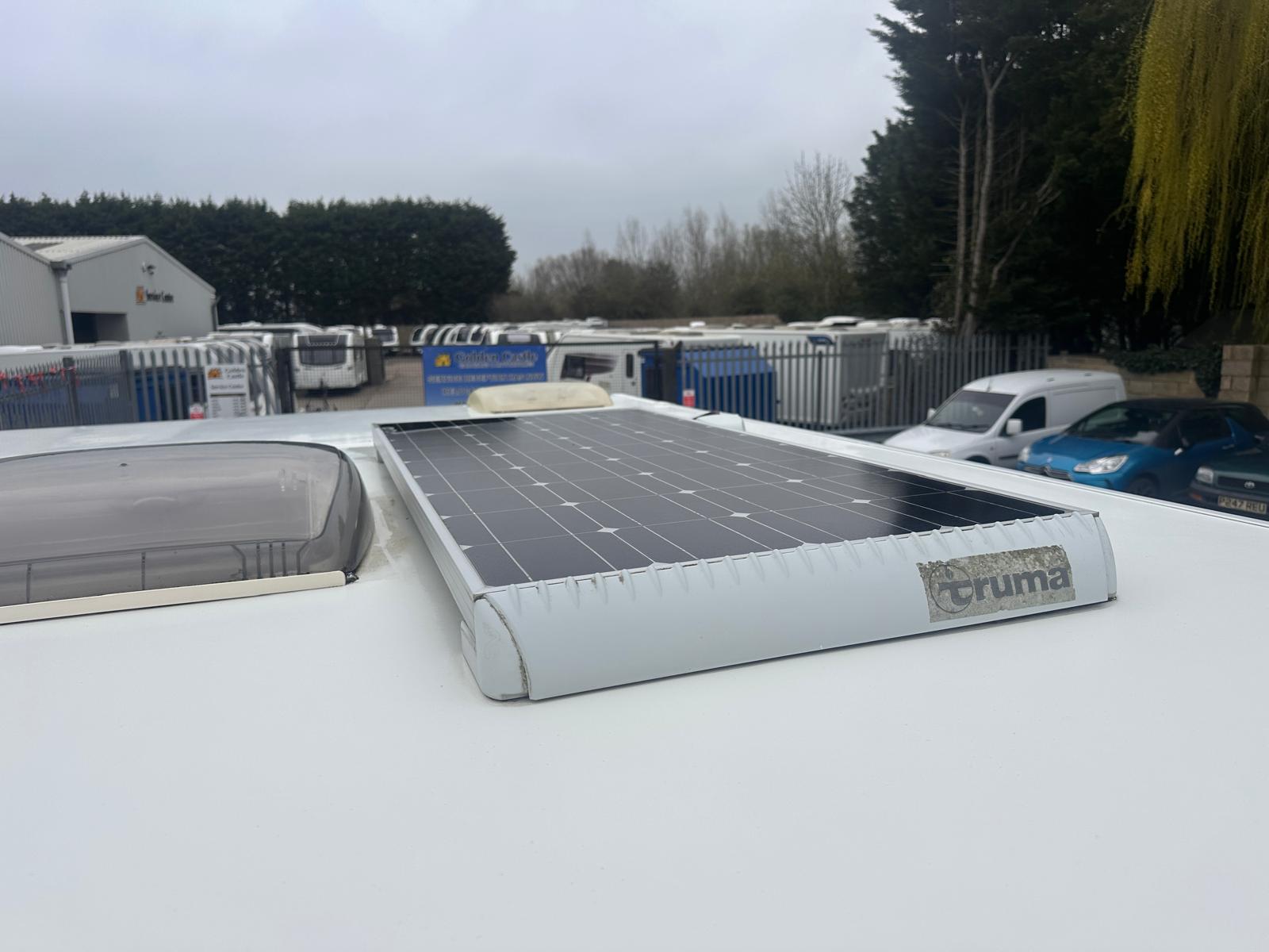 Off-Grid Power: Features a roof-mounted Truma Solar Panel paired with a Truma Solar Dual Battery Charger, ensuring your leisure battery stays topped up when not hooked up to mains power. A Vision Plus aerial is also fitted to the roof for TV reception.