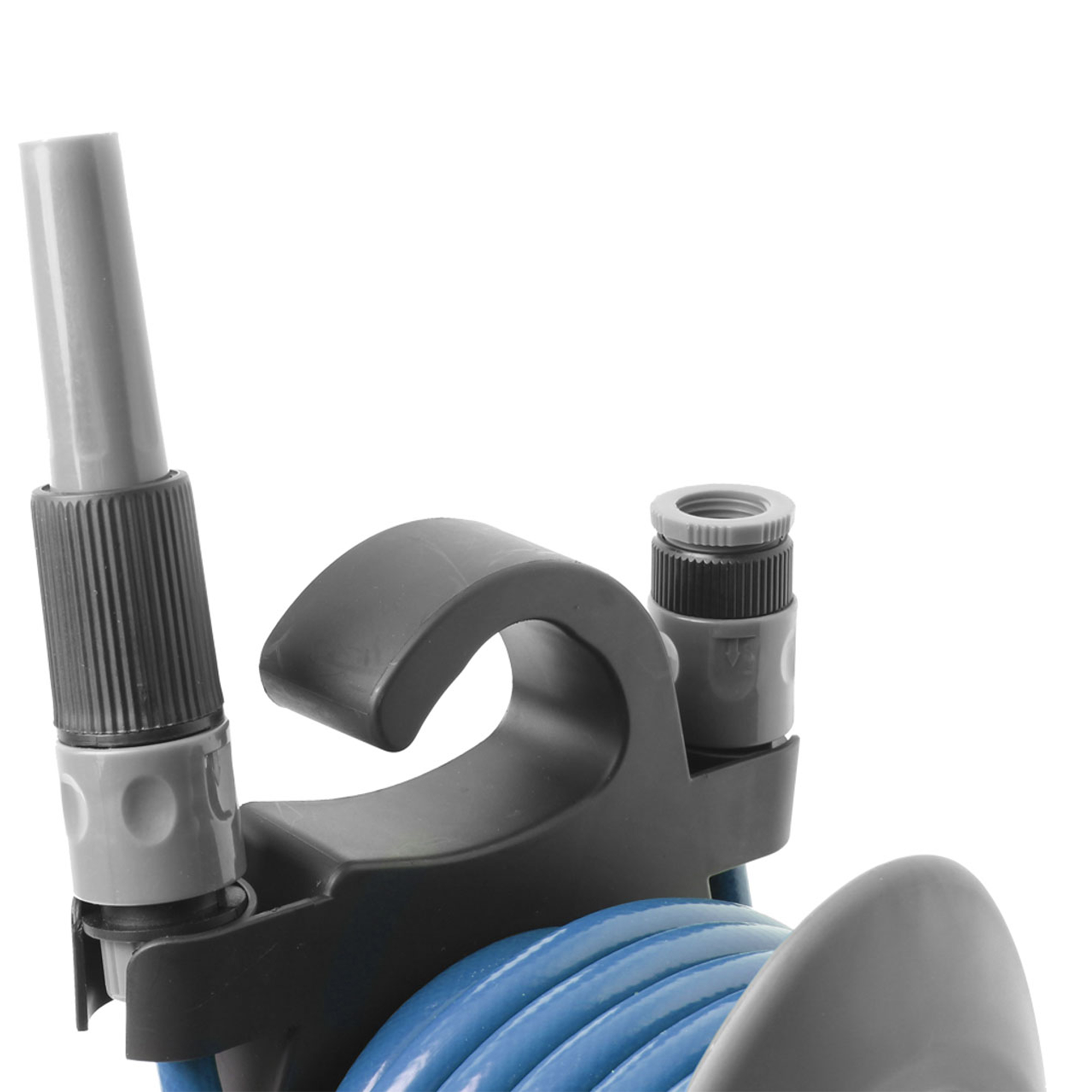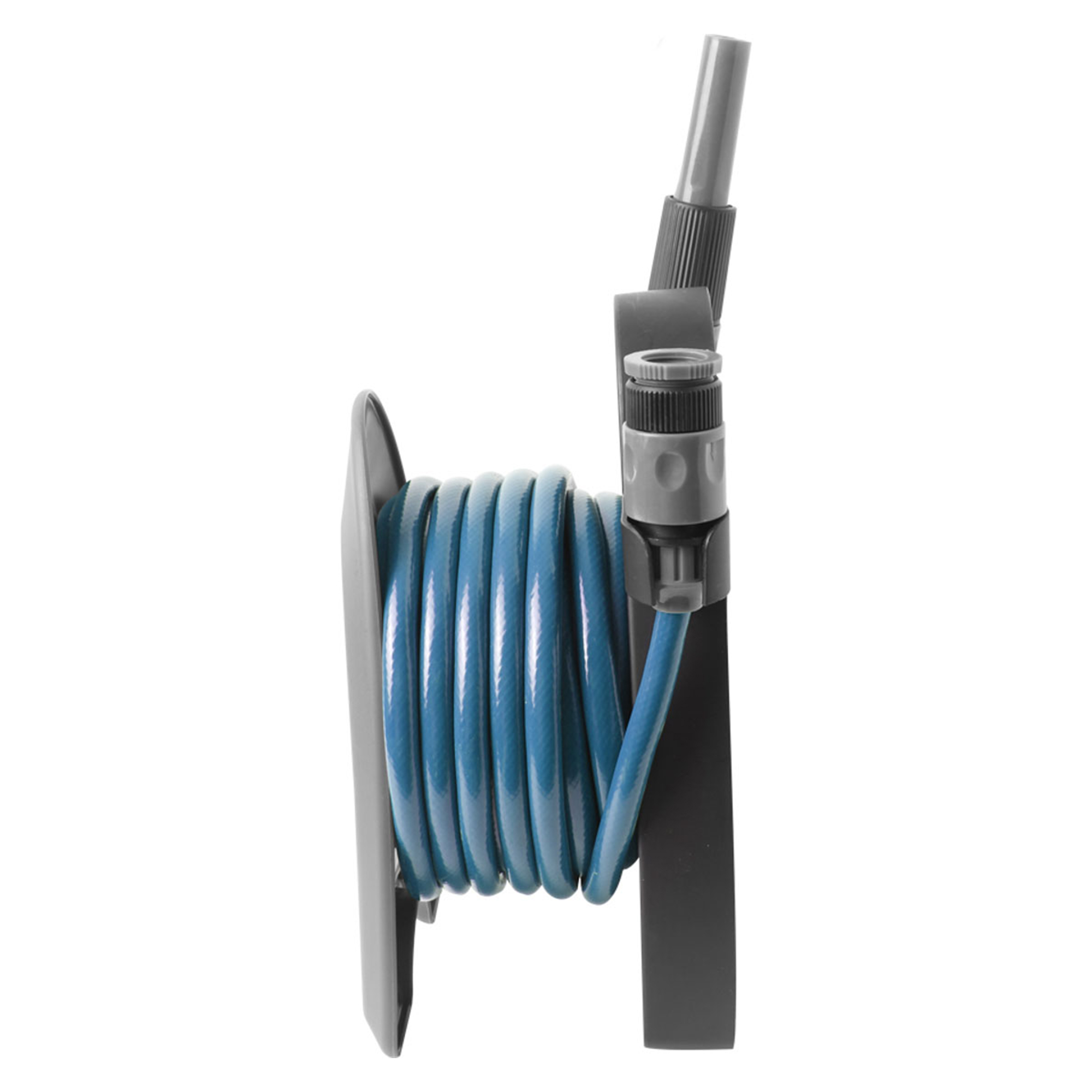 Lightweight and portable hose reel featuring a 10 m 3/8” food-grade PVC hose and two quick connectors. Built with a durable plastic frame and includes a spray nozzle. Compact and easy to carry, making it suitable for a wide range of outdoor and household tasks.