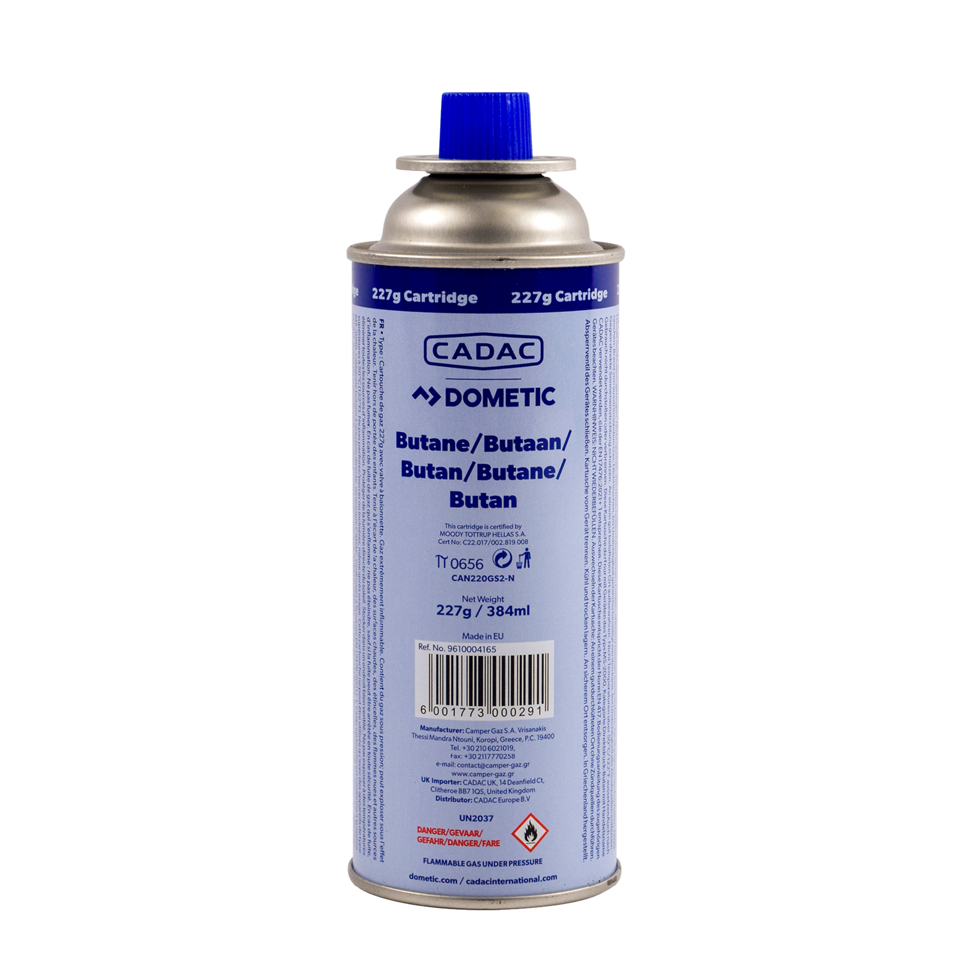 This butane gas cartridge has an SSN-29 flange valve and a protective cap. It is compatible with Cadac Dometic’s Quad Power Pak, Trio Power Pak, and Safari Chef 30 Compact BBQ.