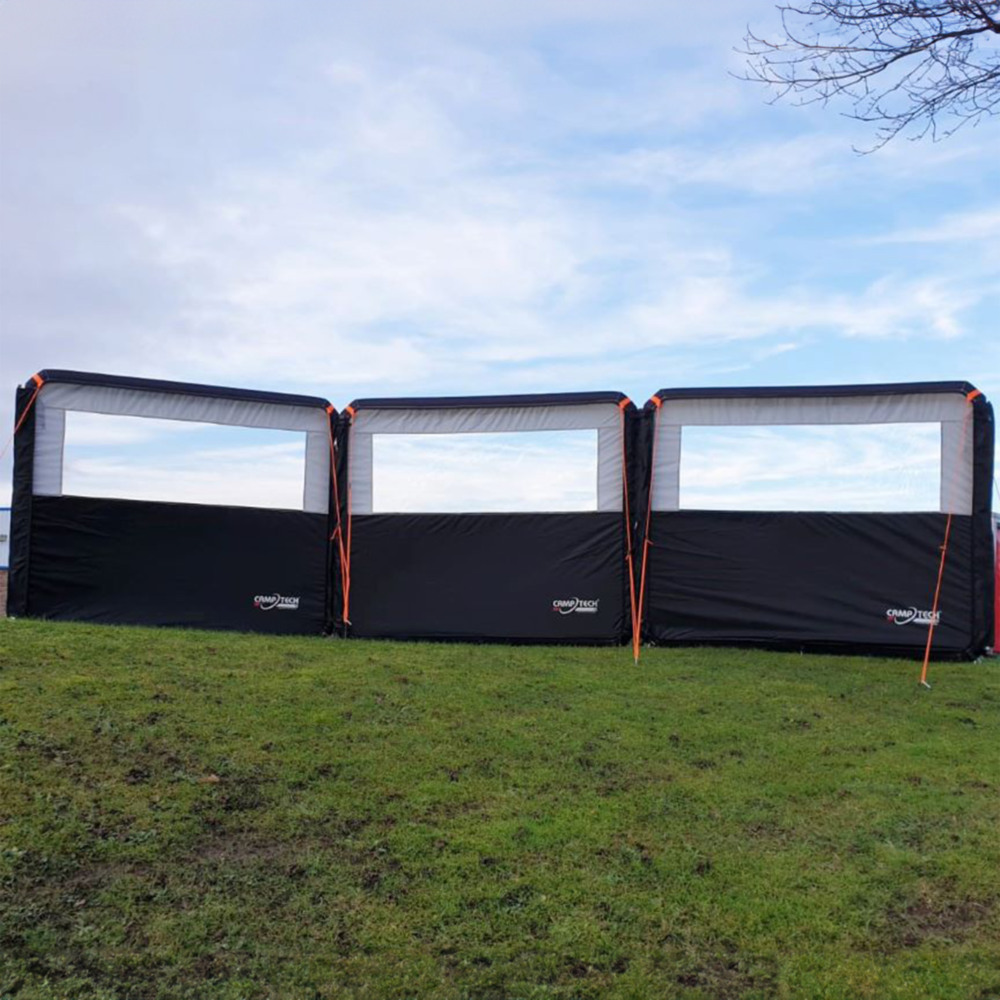 The Camptech Bosworth Air Windbreak is a modular, inflatable wind barrier that gives you protection, privacy and flexibility on your pitch. With three air-tube panels as standard, clear PVC windows, and optional expandable sections or adap-on kits, it lets you configure your windbreak to suit site layout while maintaining a view and style. Perfect for caravans, camping kits, or as a barrier for your awning area.