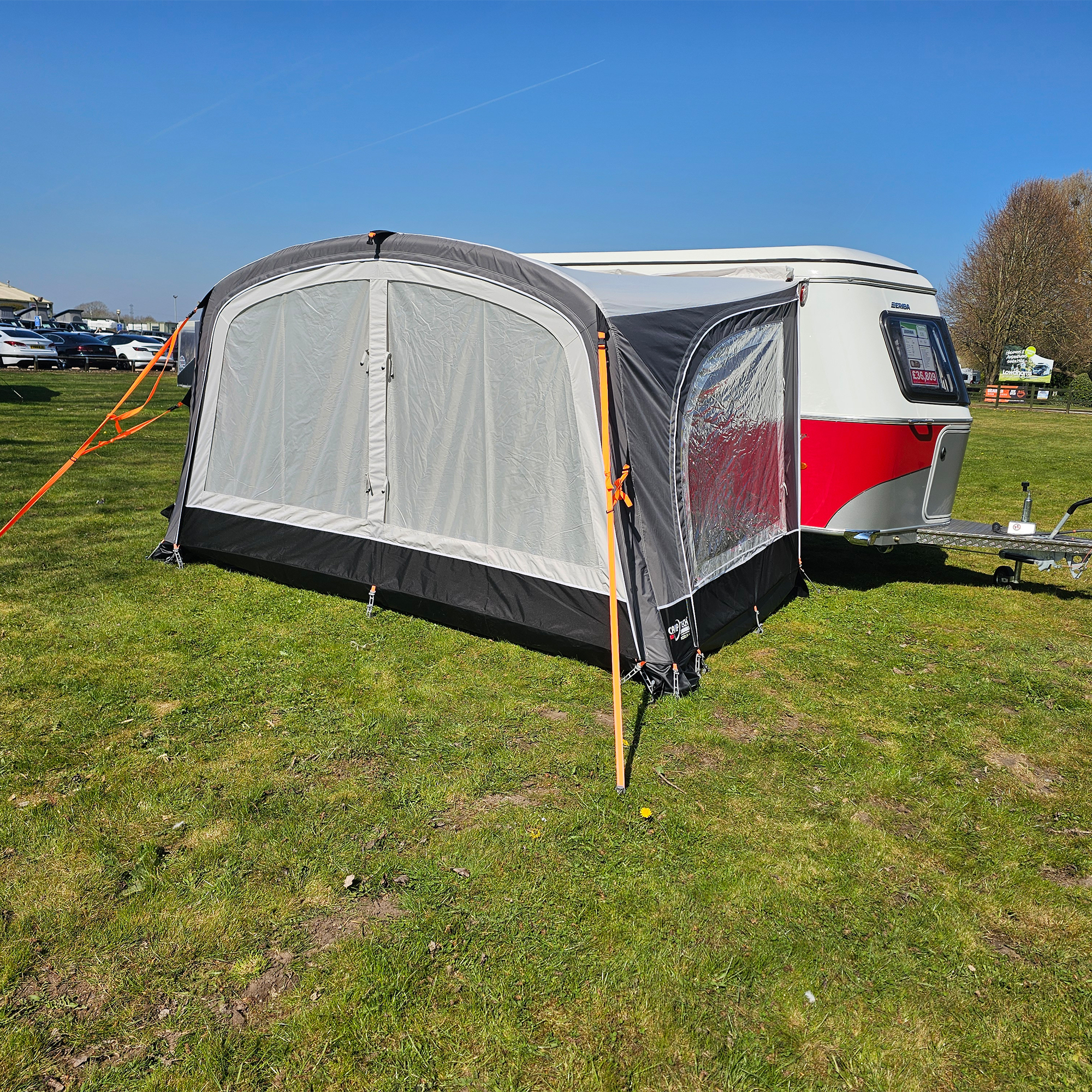 The Majestic is purpose-built for Eriba caravans, so always check your rail length and height before ordering to ensure the 262 cm connection suits your model. The dual 4 mm and 6 mm beading offers flexibility, but confirming your rail size will avoid fitting issues. While the air system speeds up pitching, use the heavy-duty webbing straps properly on exposed sites to maintain structure and reduce movement in stronger winds.