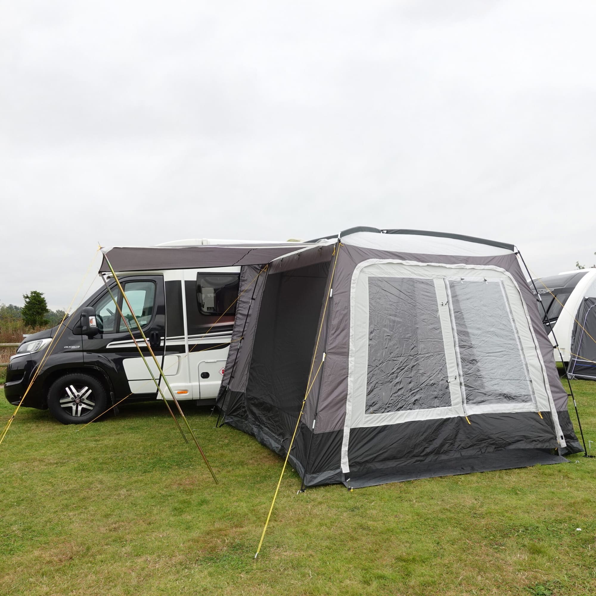 Designed for modern camping flexibility, the Venus Suntrek Drive-Away Awning fits a wide range of motorhomes thanks to its adaptable tunnel height. Its lightweight fibreglass frame and sewn-in groundsheet are built for comfort and ease. Removable front panels and internal blinds allow for quick configuration between shaded, enclosed, or open layouts. With the awning pitched, you’re free to explore, leaving your setup secure on site.
