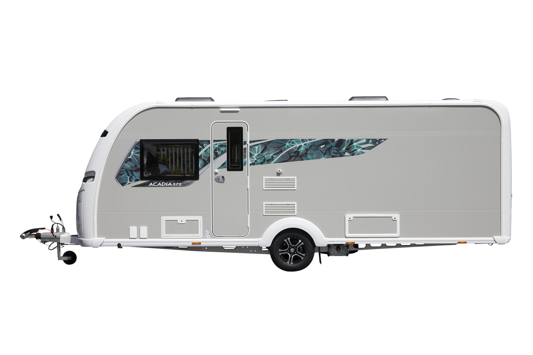 The 2026 Acadia 575 is a single-axle, four-berth caravan that effortlessly blends style, comfort, and practicality. We think it's an ideal choice for couples or families who appreciate a dedicated sleeping area without compromising on a spacious living space. This new model arrives with several considered updates, from a refreshed exterior to a host of interior refinements designed to make your time away even more relaxing.