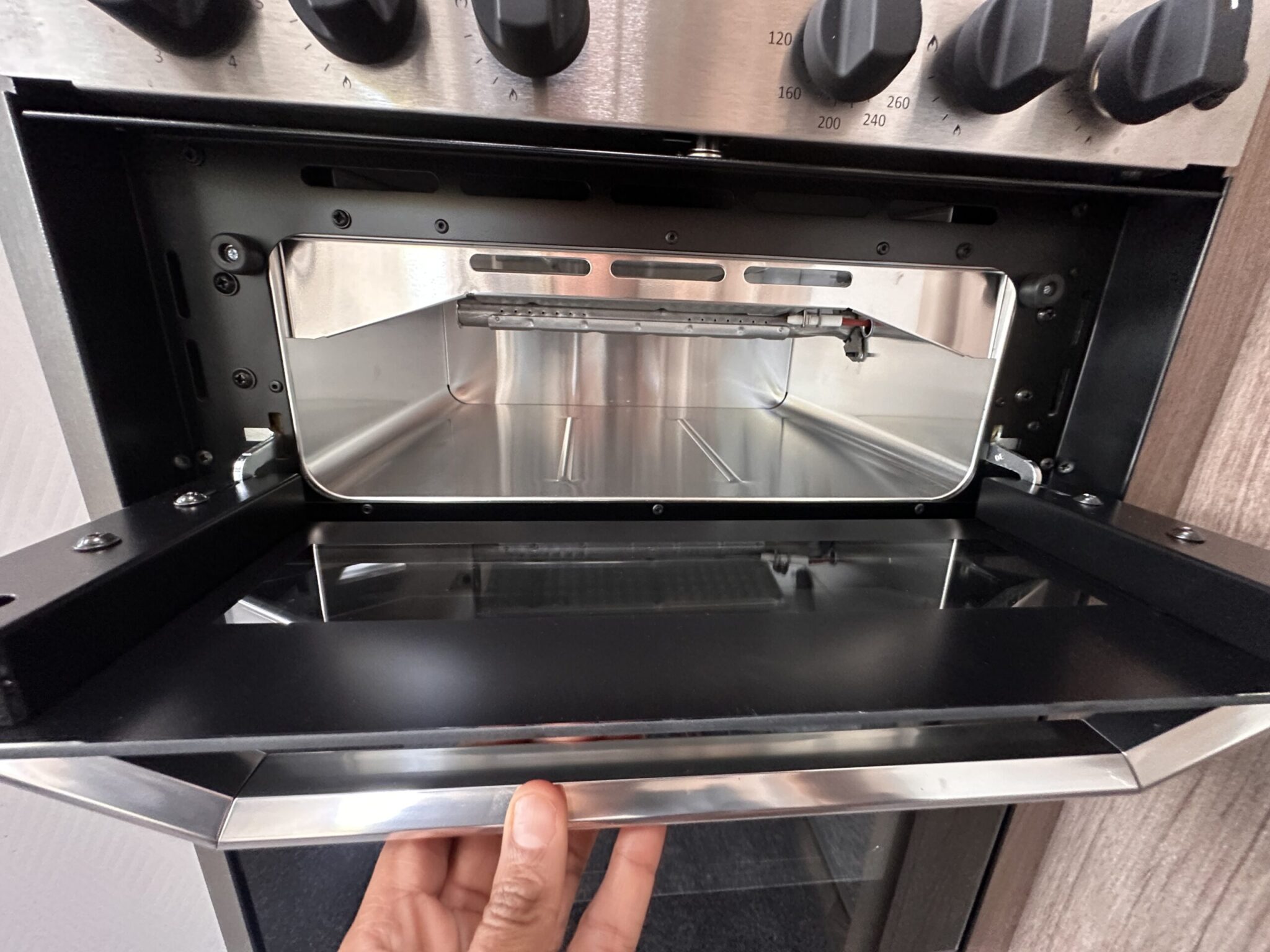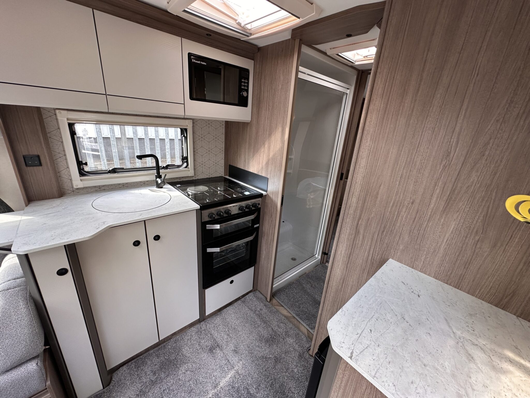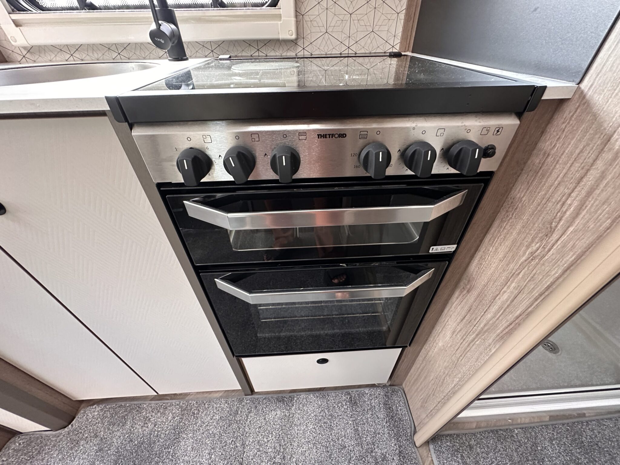 Thetford oven and dual fuel hob, separate grill, and 91L fridge freezer