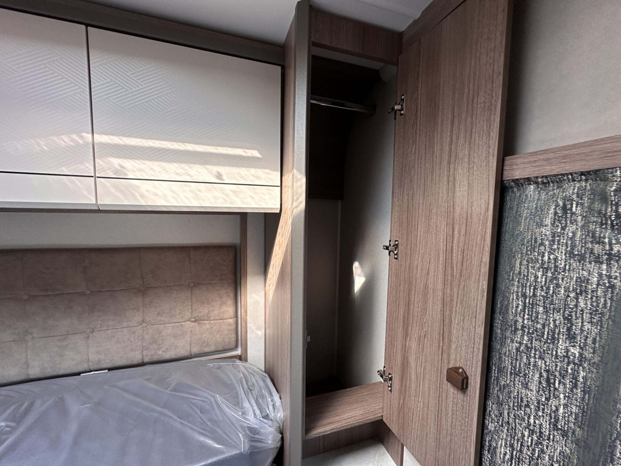 End bedroom with retractable fixed double bed for added space