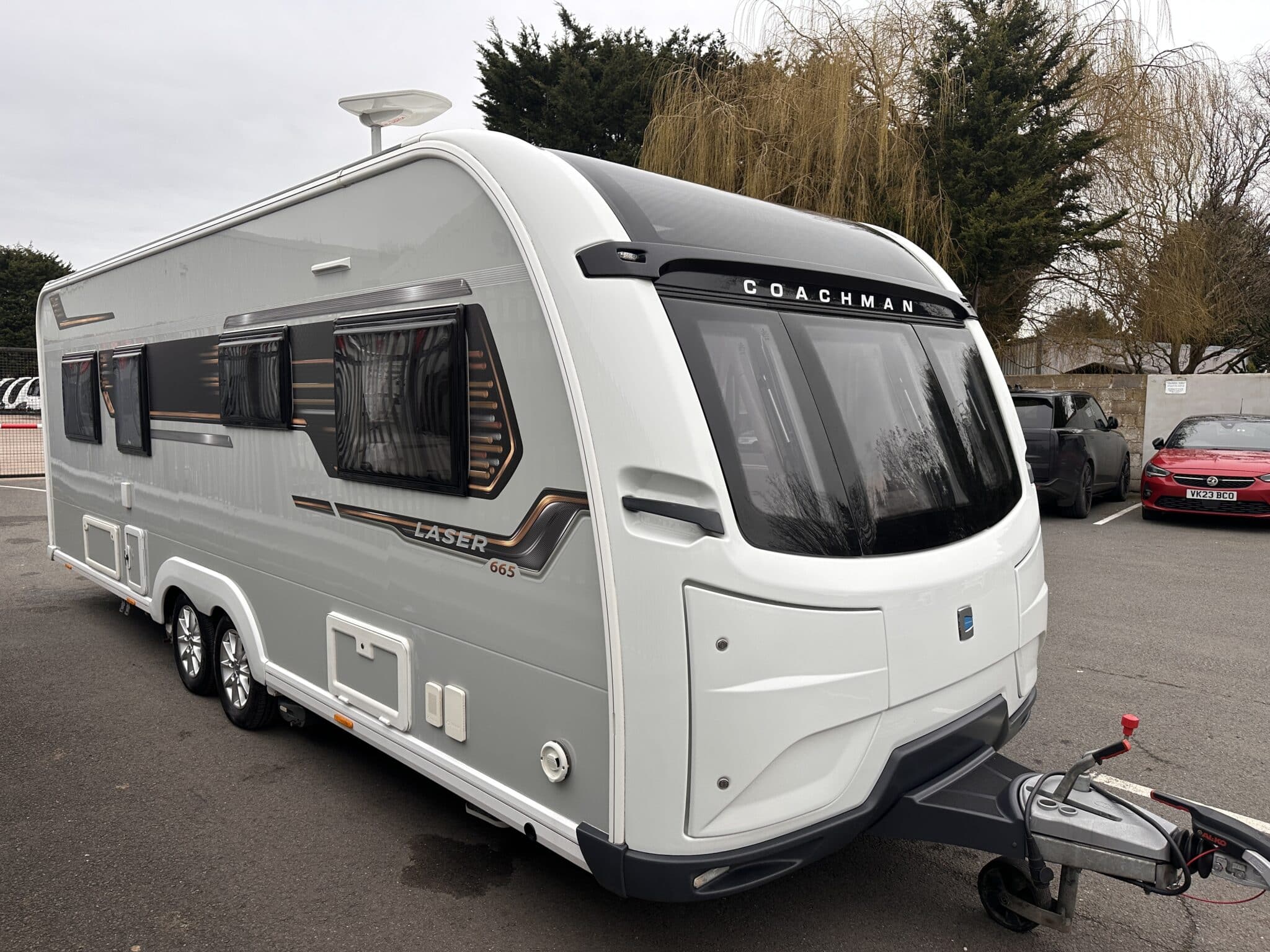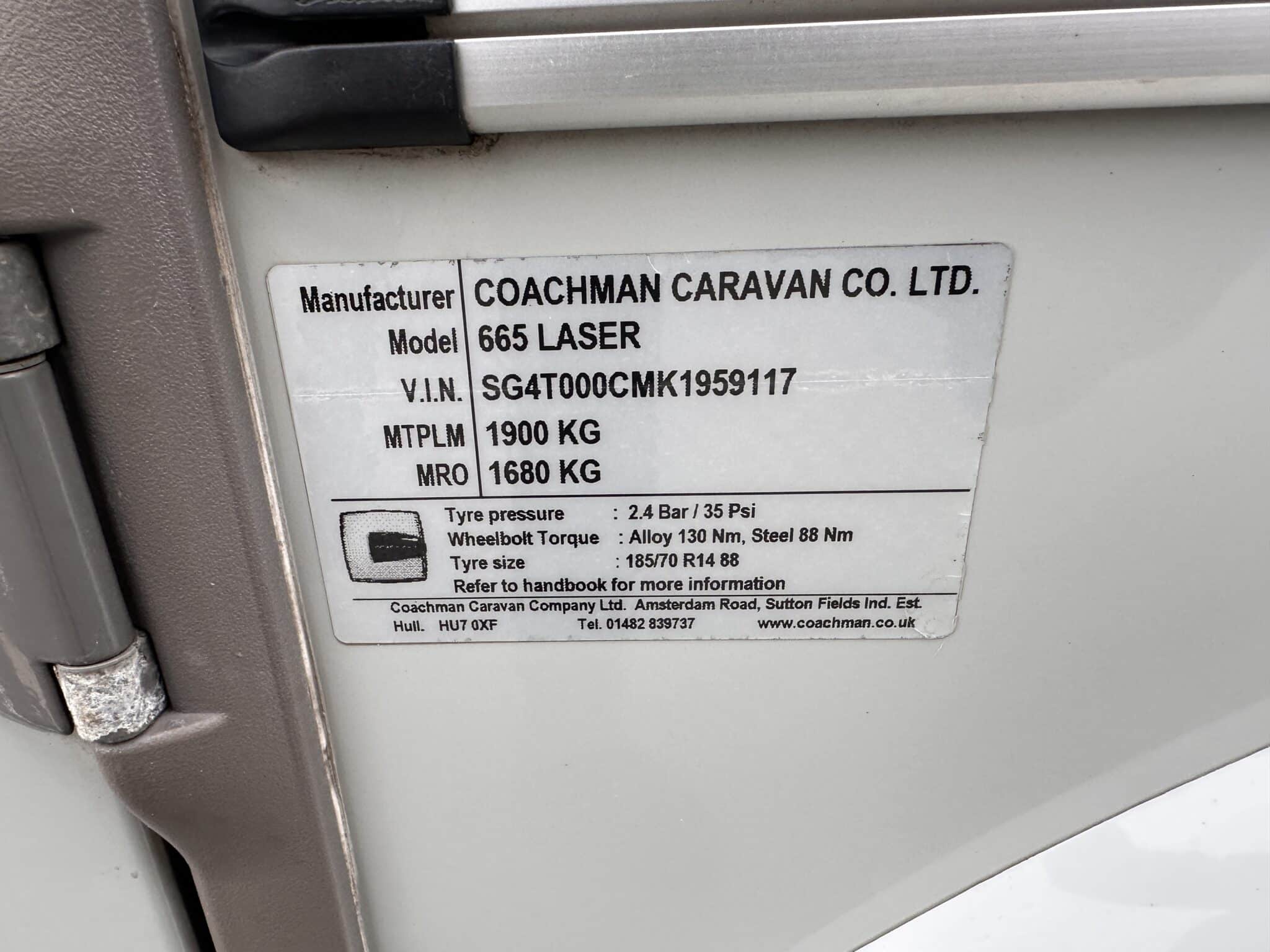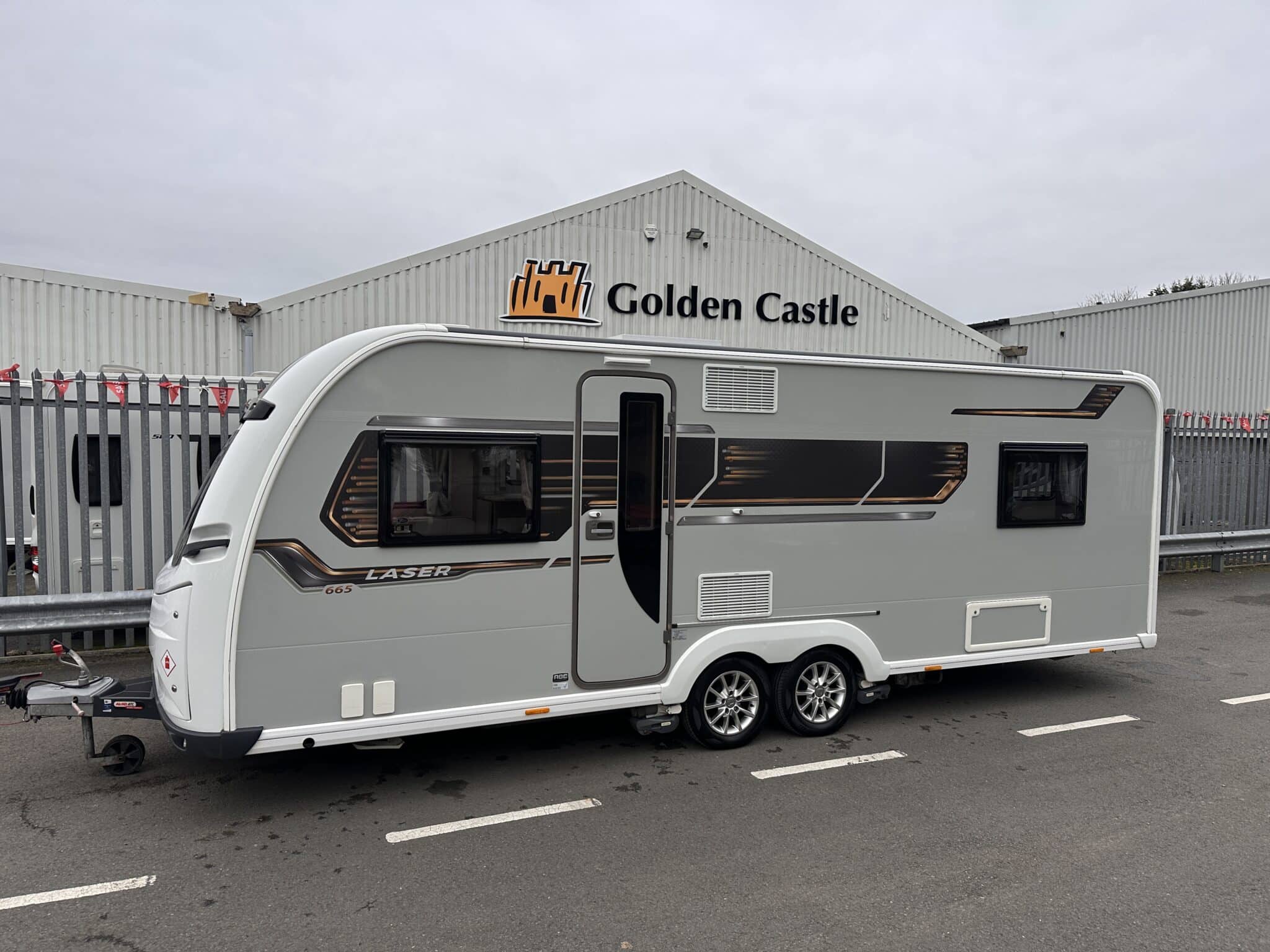 Frequently Asked QuestionsWhat is the sleeping layout of the Coachman Laser 665? The 665 has fixed twin single beds in a private rear bedroom—each one is 6ft 3in long, so they’re proper full-length beds. The front lounge also converts into a large double bed, giving you flexibility for four people.Does this caravan have a motor mover fitted? Yes, a Powrtouch motor mover is fitted. For a twin-axle caravan of this size, it makes a real difference when manoeuvring on site or into storage.Is a solar panel included? Yes, a roof-mounted solar panel is fitted, helping to keep your leisure battery charged during off-grid stays and when the caravan is in storage.What is the Alde heating system? Alde is a wet central heating system—similar to central heating at home. It circulates warm water through radiators, giving you quiet, even heat throughout the caravan. It also heats the towel rail in the washroom and provides hot water on demand.Has this caravan been inspected and checked for damp? Yes, like all our used caravans, this Coachman Laser 665 has been through a full workshop inspection and damp check. It also comes with the Golden Castle warranty for your peace of mind.