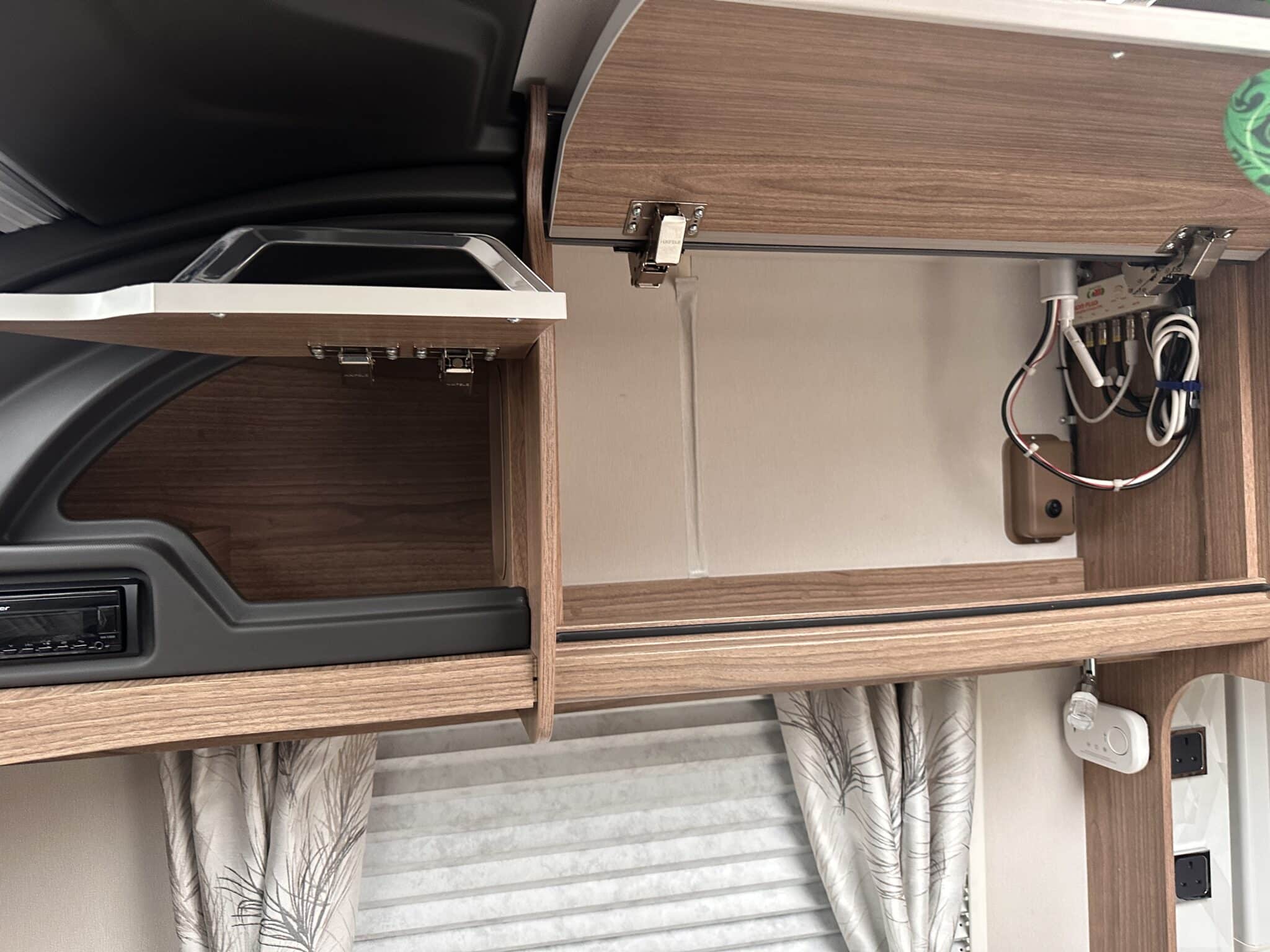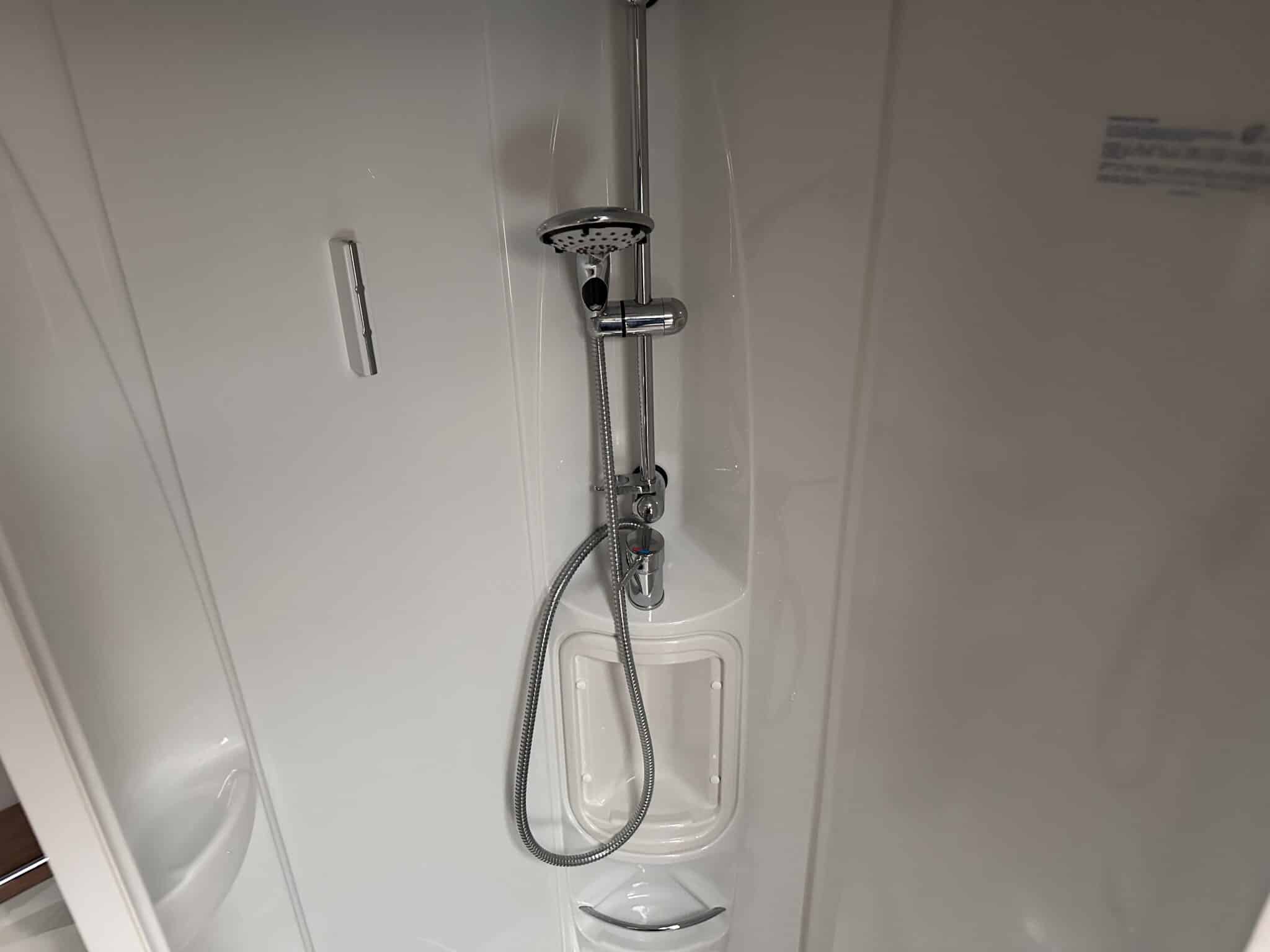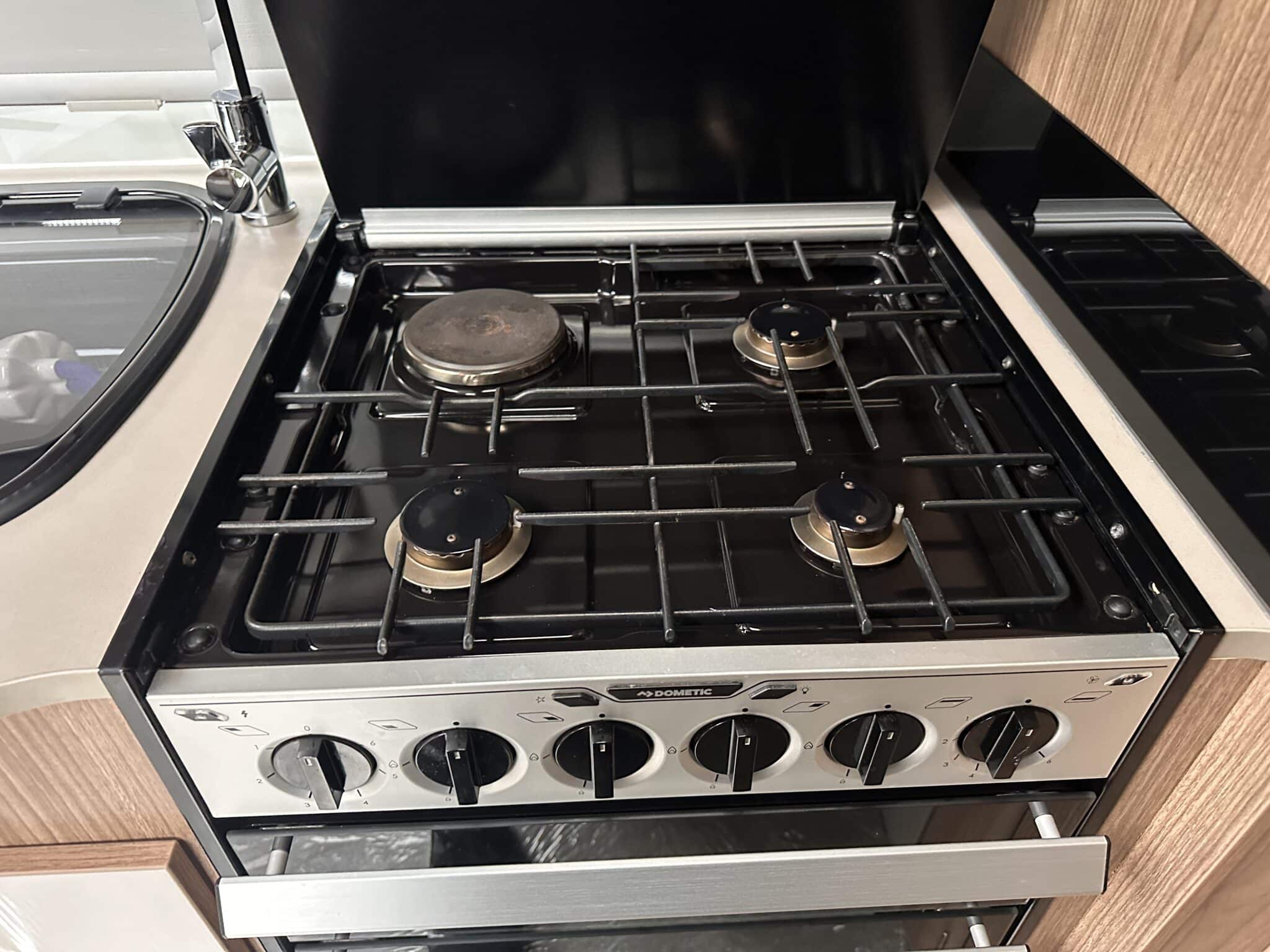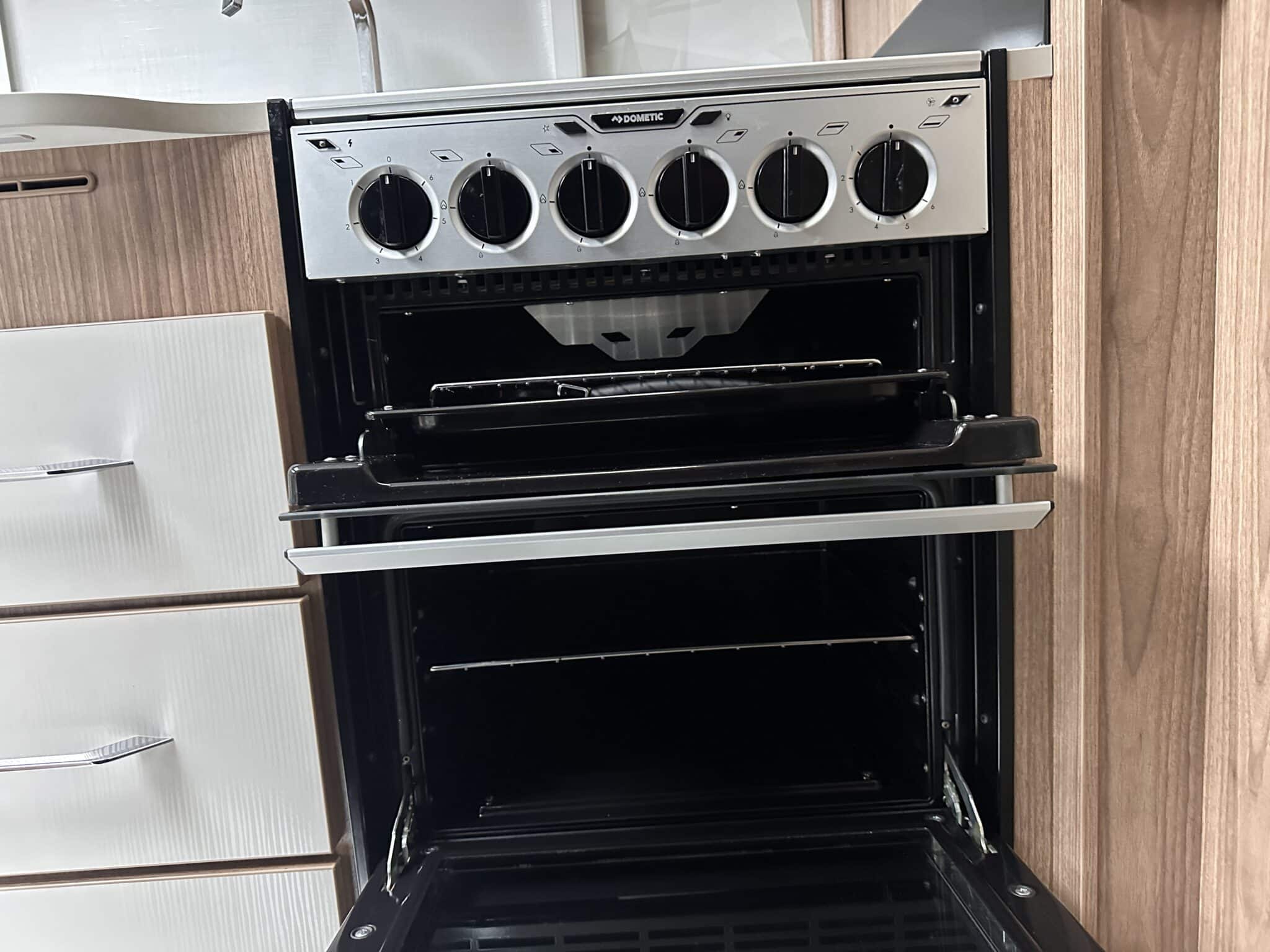 INTERIOR HIGHLIGHTSLounge The front lounge is generous in size, with comfortable seating that converts into a large double bed when needed. It’s a proper living space—not cramped—and the Pioneer stereo with Bluetooth and speakers in both the lounge and bedroom means you can have music wherever you are in the caravan.Kitchen The kitchen is well set up for longer trips. You get a dual-fuel hob (3 gas burners and 1 electric hotplate), a separate oven and grill, a microwave, and a Dometic 10-series tower fridge-freezer that can be opened from either side—a genuinely useful feature in a busy kitchen.Bedroom The rear bedroom has two fixed single beds, each 6ft 3in long—proper full-length beds, not the short ones you sometimes find in caravans. There’s good storage around them too, with wardrobes and overhead lockers keeping things tidy.Washroom The central washroom is one of the standout features of the 665. It’s genuinely spacious, with a fully-lined separate shower cubicle, vanity sink, and toilet. It also includes a heated towel rail, courtesy of the Alde heating system—a nice touch that makes a real difference.Heating The Alde wet heating system is fitted throughout, providing quiet, consistent warmth in every part of the caravan. It also heats the towel rail in the washroom and provides hot water on demand—ideal for year-round touring.Water System An onboard 36-litre fresh water tank is included, giving you independence from site water points and making this caravan well suited to off-grid stays.