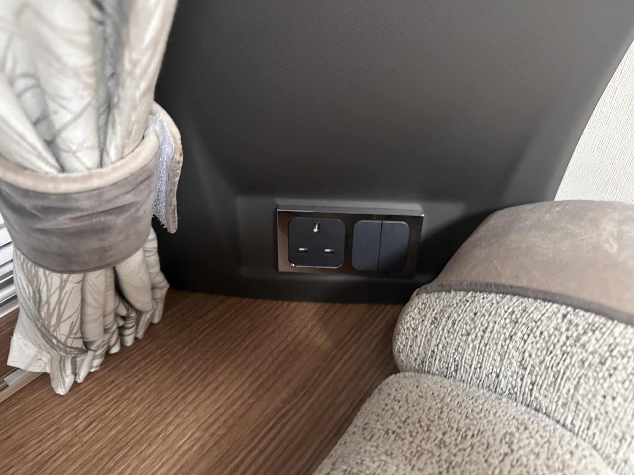 EXTERIOR HIGHLIGHTSSolar Panel A roof-mounted solar panel is fitted, keeping your leisure battery topped up during off-grid stays and reducing reliance on hook-up.Motor Mover A Powrtouch motor mover is fitted, making it straightforward to manoeuvre this twin-axle caravan via remote control—something you’ll really appreciate given its size.Reversing Camera A reversing camera is fitted to the rear of the caravan, making hitching up and reversing onto pitches significantly easier.Vision Plus Aerial A Vision Plus aerial is fitted for reliable TV reception while on tour.Exterior Features Includes an external gas BBQ point, a 230V mains socket, and an external cold shower—handy for rinsing off muddy boots or washing the dog after a walk.Safety & Chassis Built on a twin-axle AL-KO chassis with ATC (Active Trailer Control) and a stabiliser for confident, stable towing.