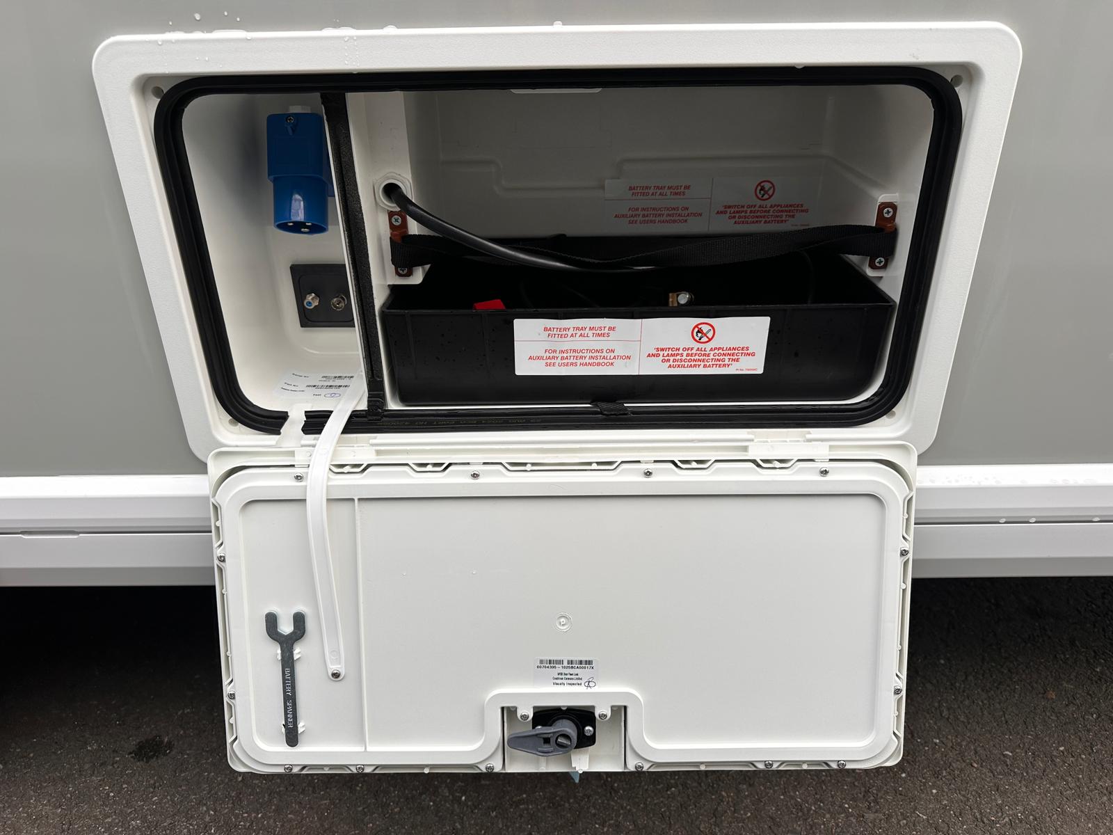 - NEW Exterior Access Battery Locker: This new feature is a game-changer, with an integrated mains electric inlet and external satellite & aerial connections all in one place.