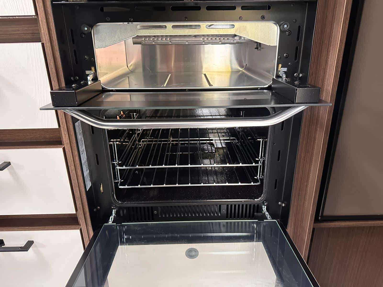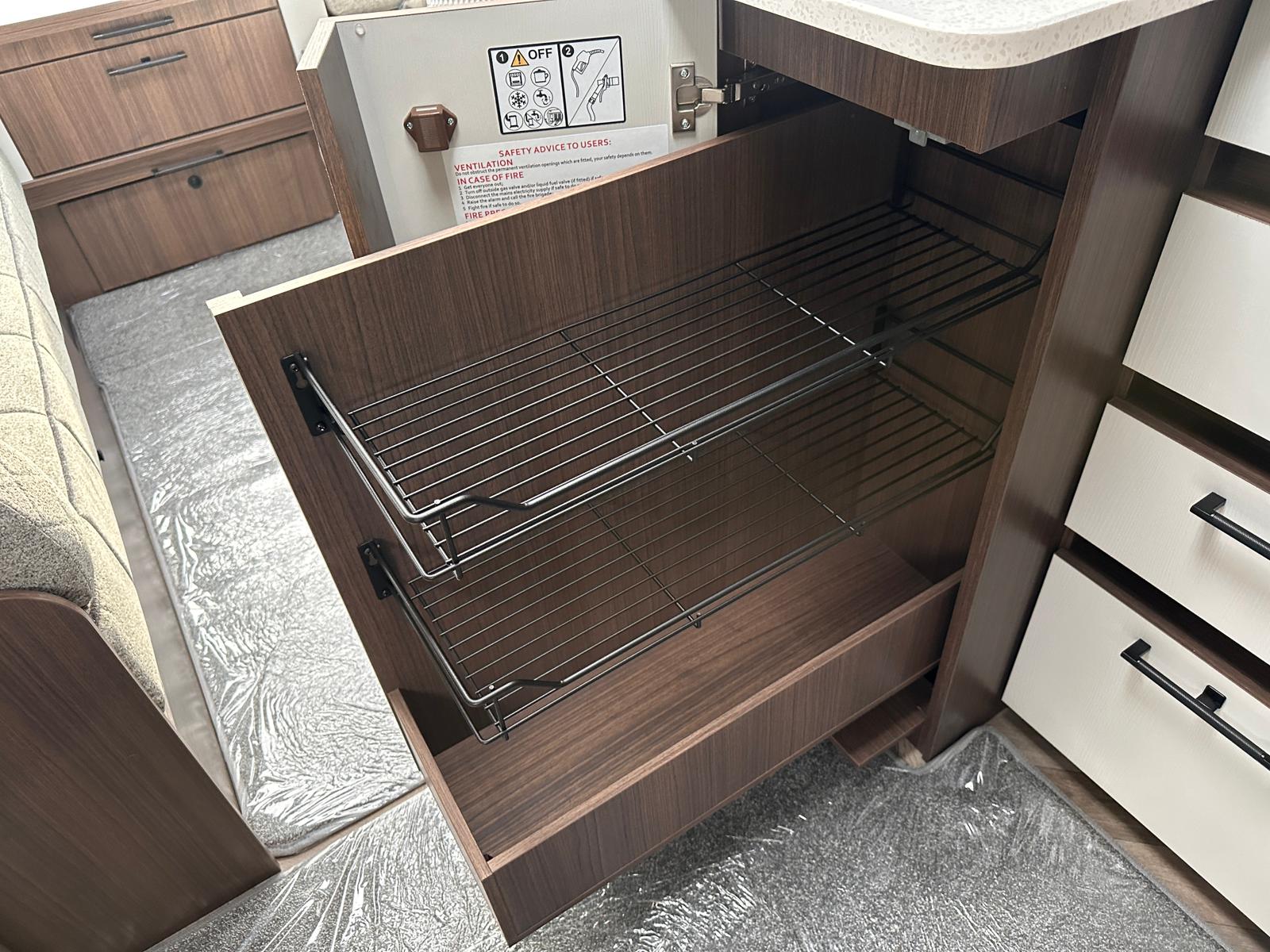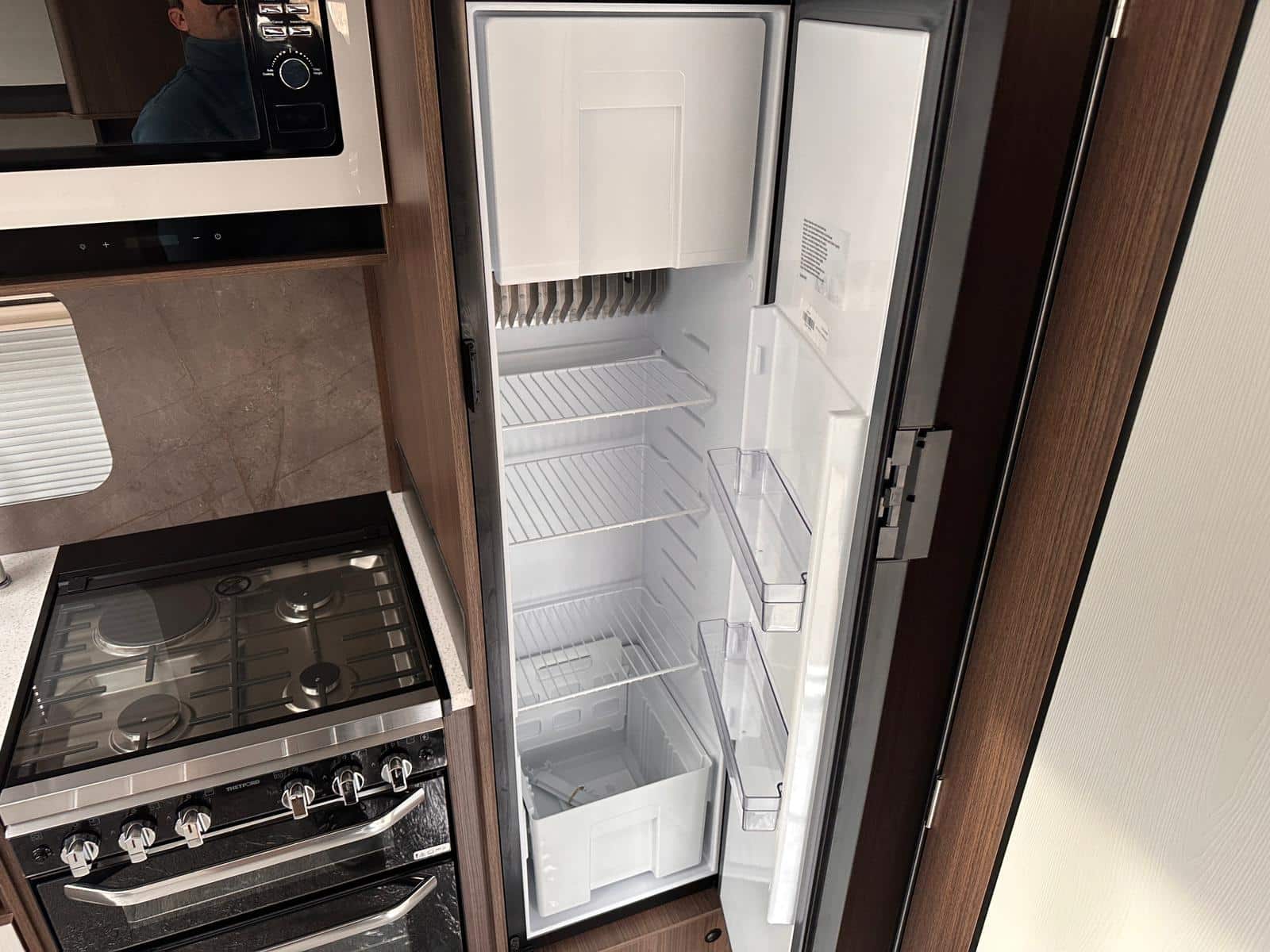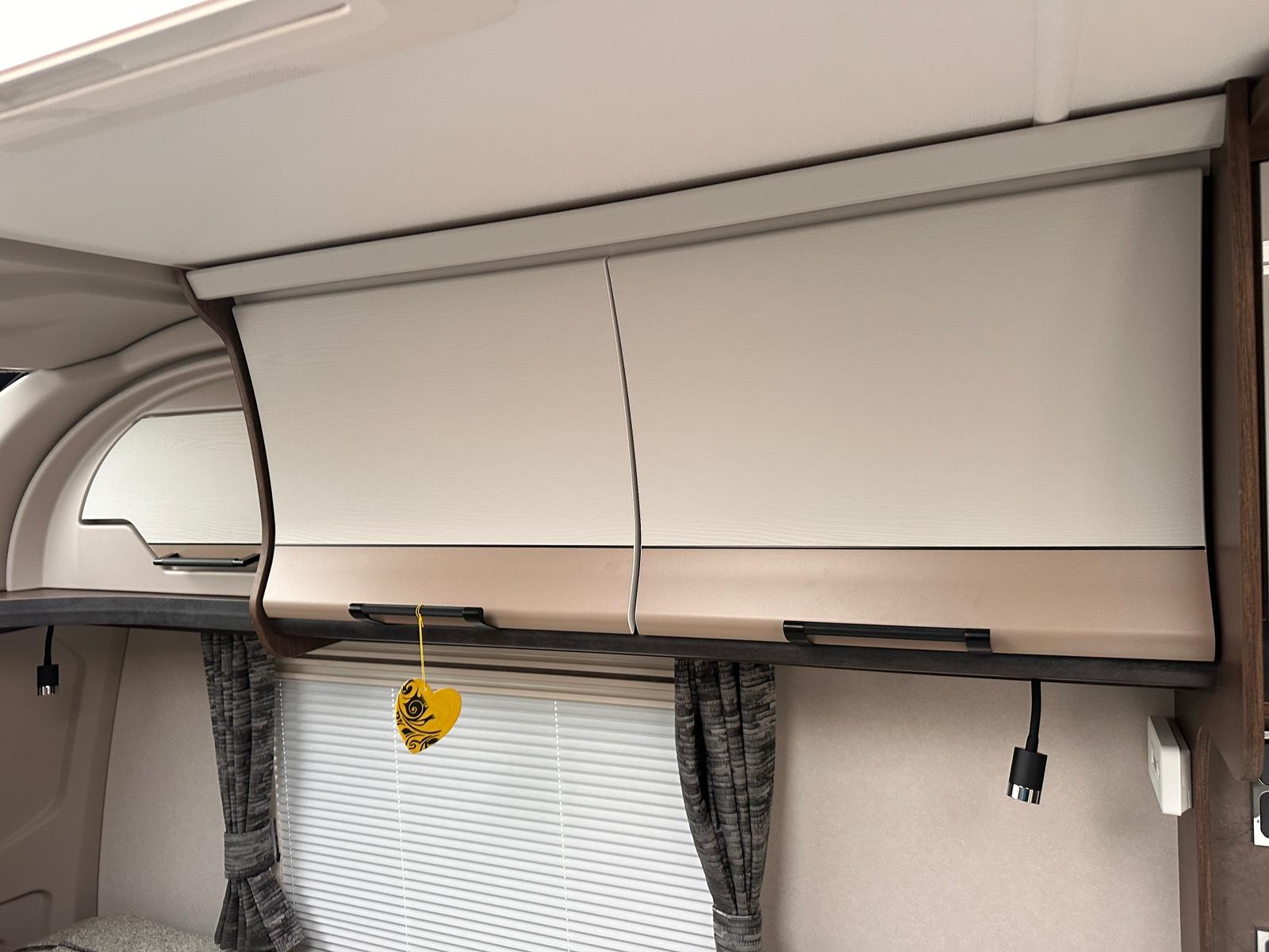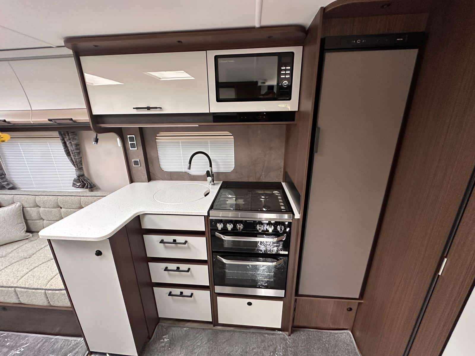 - Modern Kitchen: It’s great to have a fully equipped kitchen with a Thetford dual-fuel hob, oven, grill, and a 137-litre electronic fridge freezer.