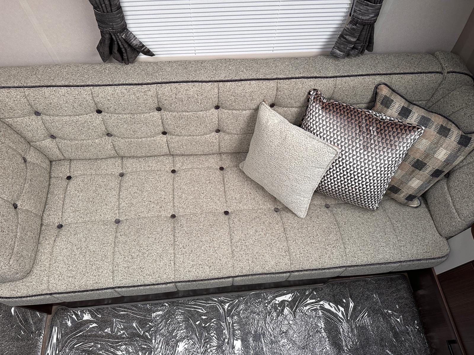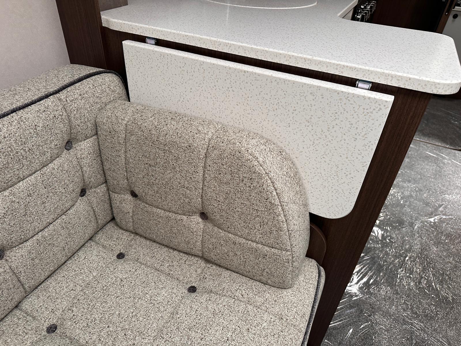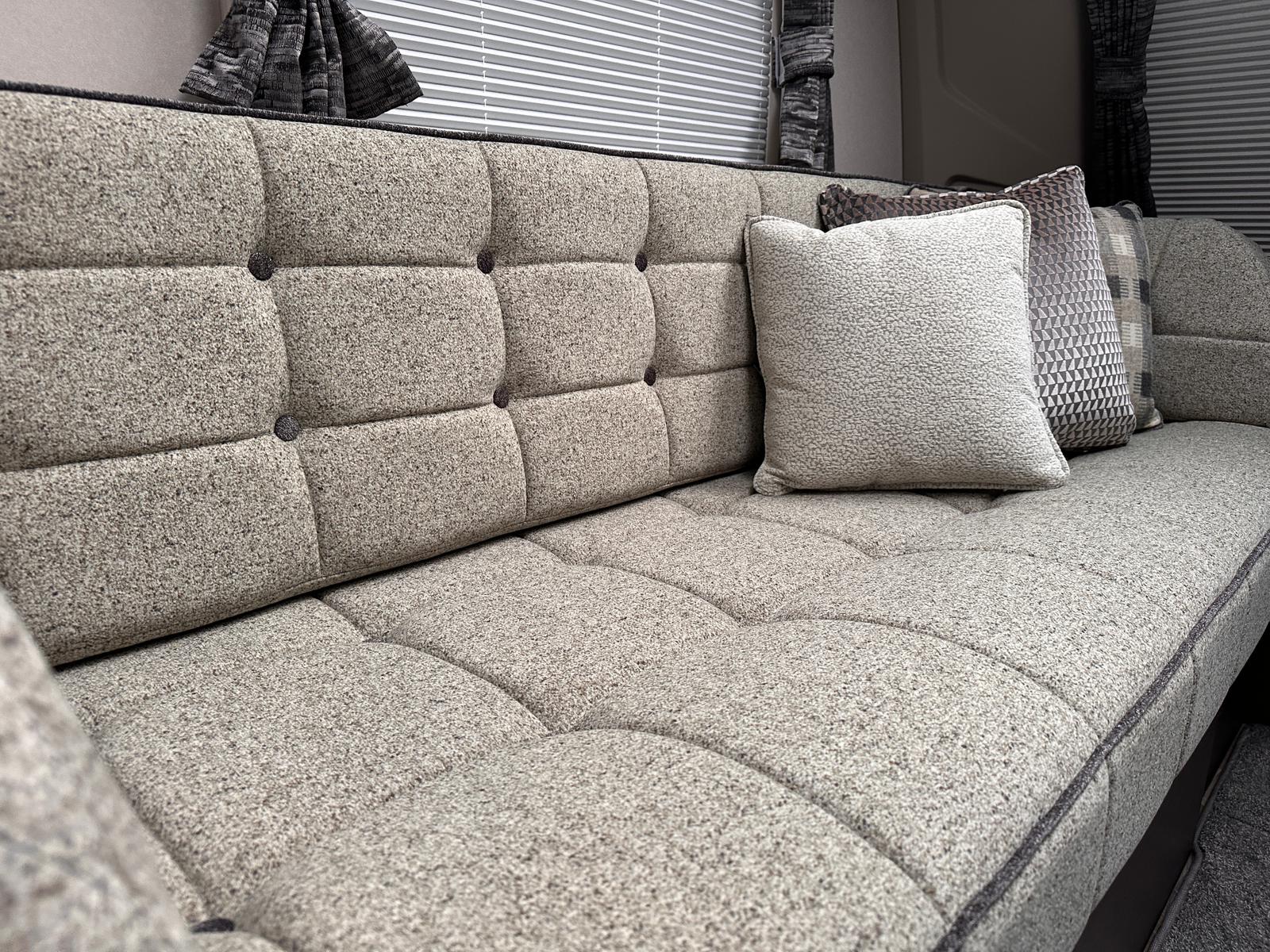 - Modern Style: We’re big fans of the NEW soft furnishings with coordinating scatter cushions and sculpted armrests. The new domestic floor covering in ‘French Oak Grey Herringbone’ design looks fantastic and is so practical.