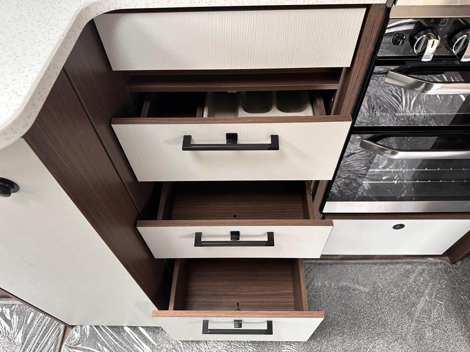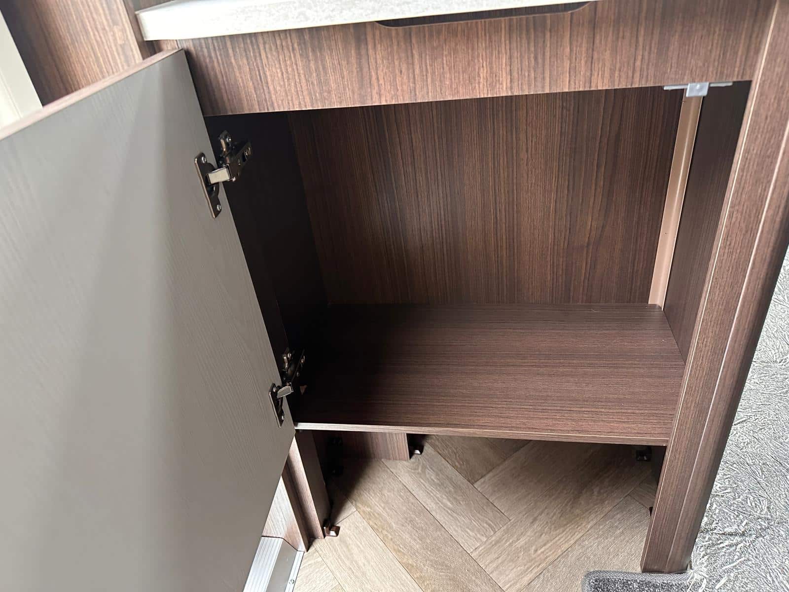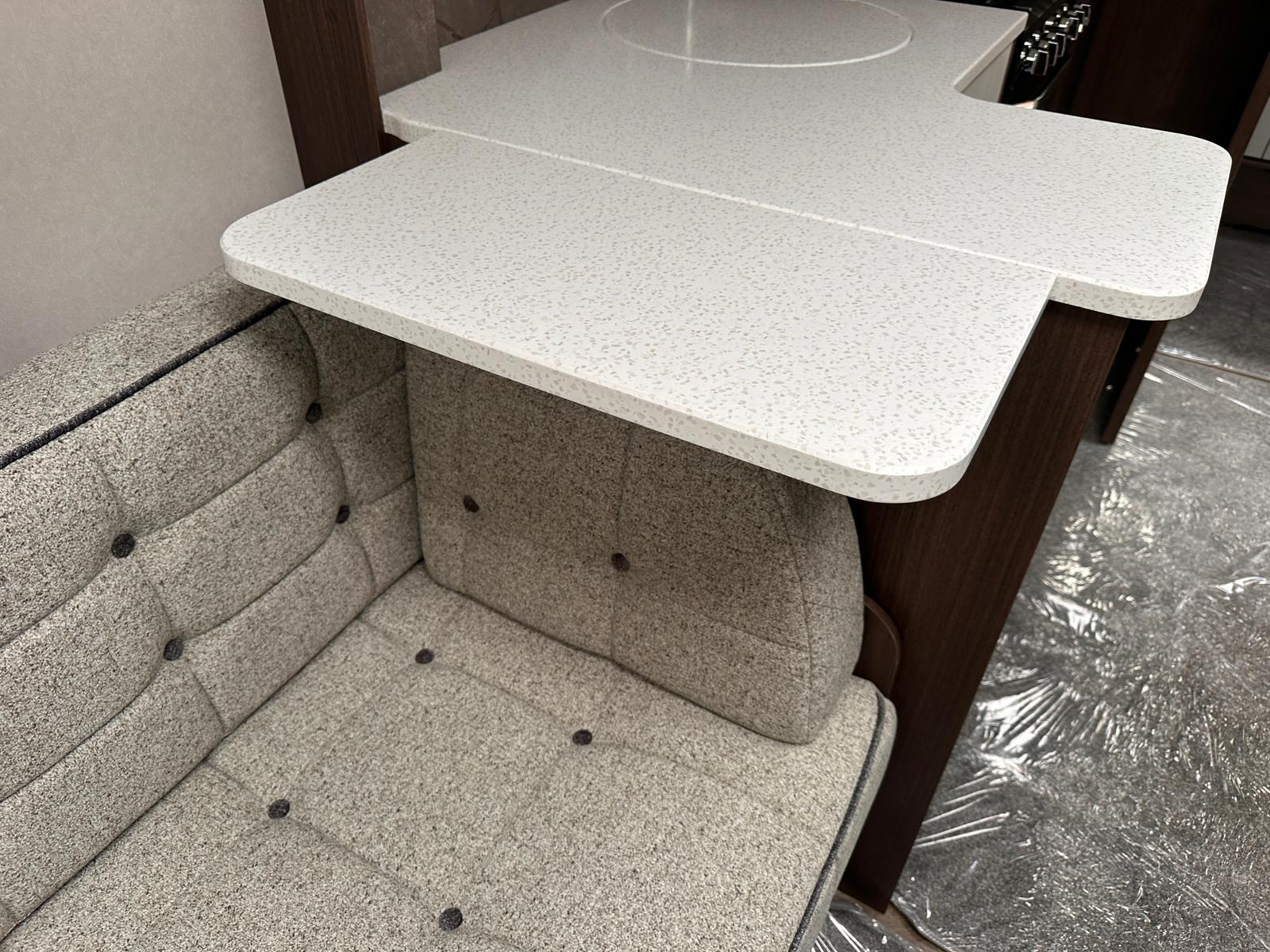 - Modern Style: We’re big fans of the NEW soft furnishings with coordinating scatter cushions and sculpted armrests. The new domestic floor covering in ‘French Oak Grey Herringbone’ design looks fantastic and is so practical.