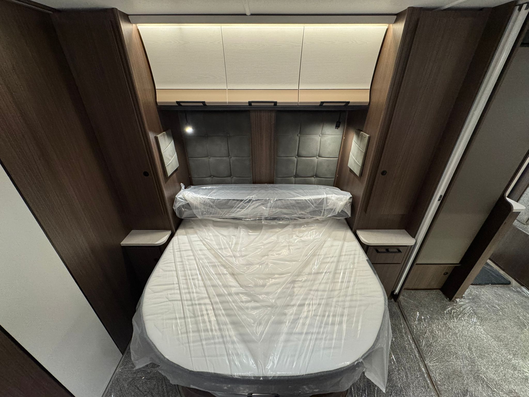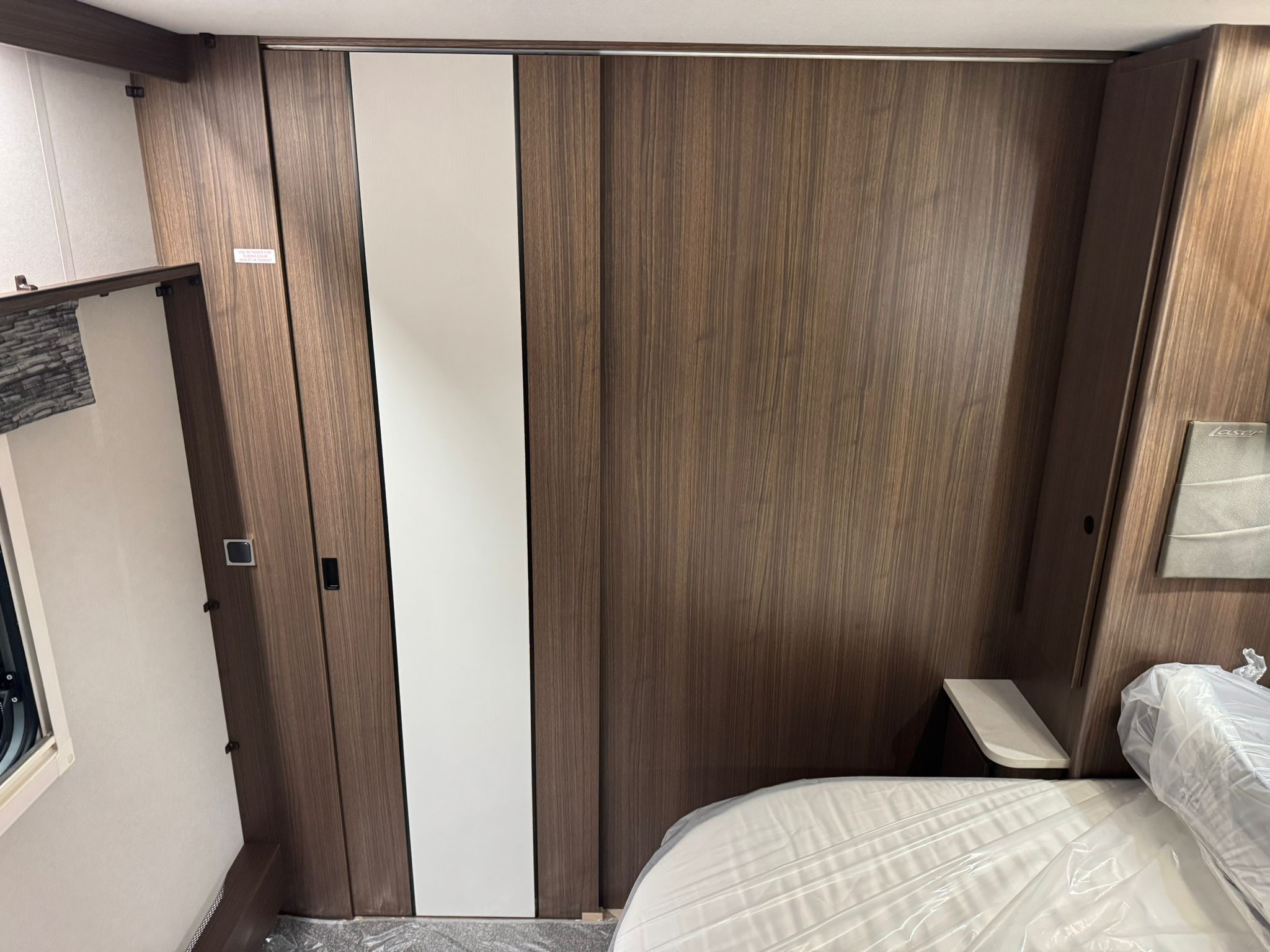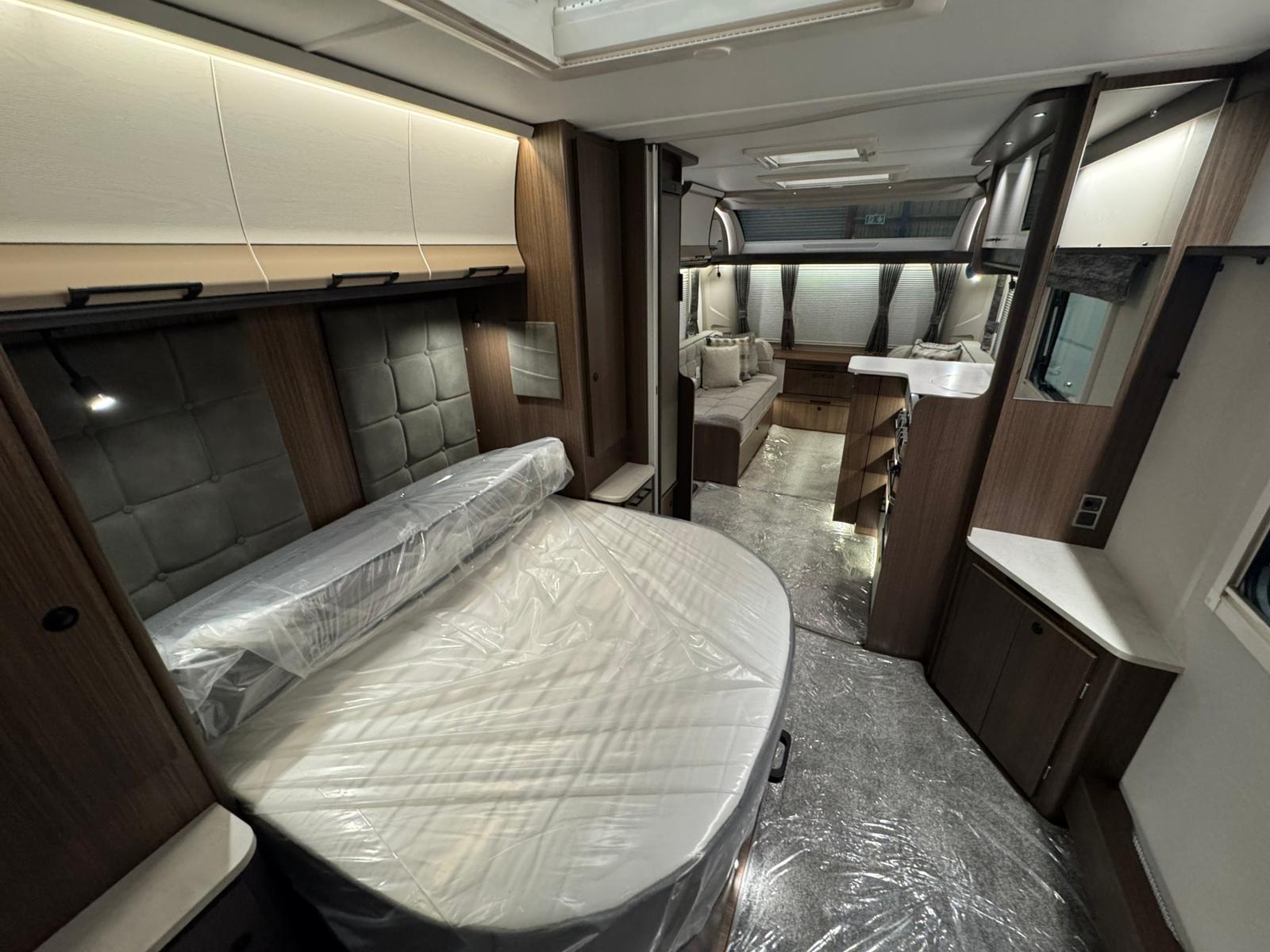 - An Impressive Layout: The front lounge provides a sociable and comfortable space, while a central, fully-equipped kitchen leads back to a private rear bedroom featuring a transverse island bed and a dedicated end washroom. The retractable bed gives you even more freedom to walk around during the day.