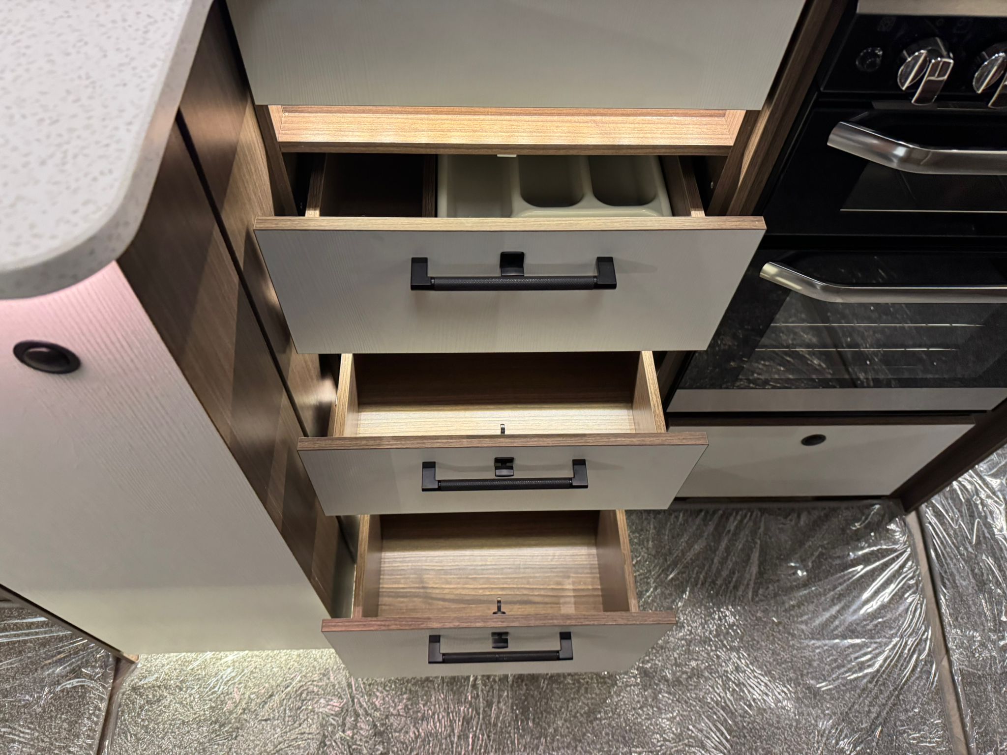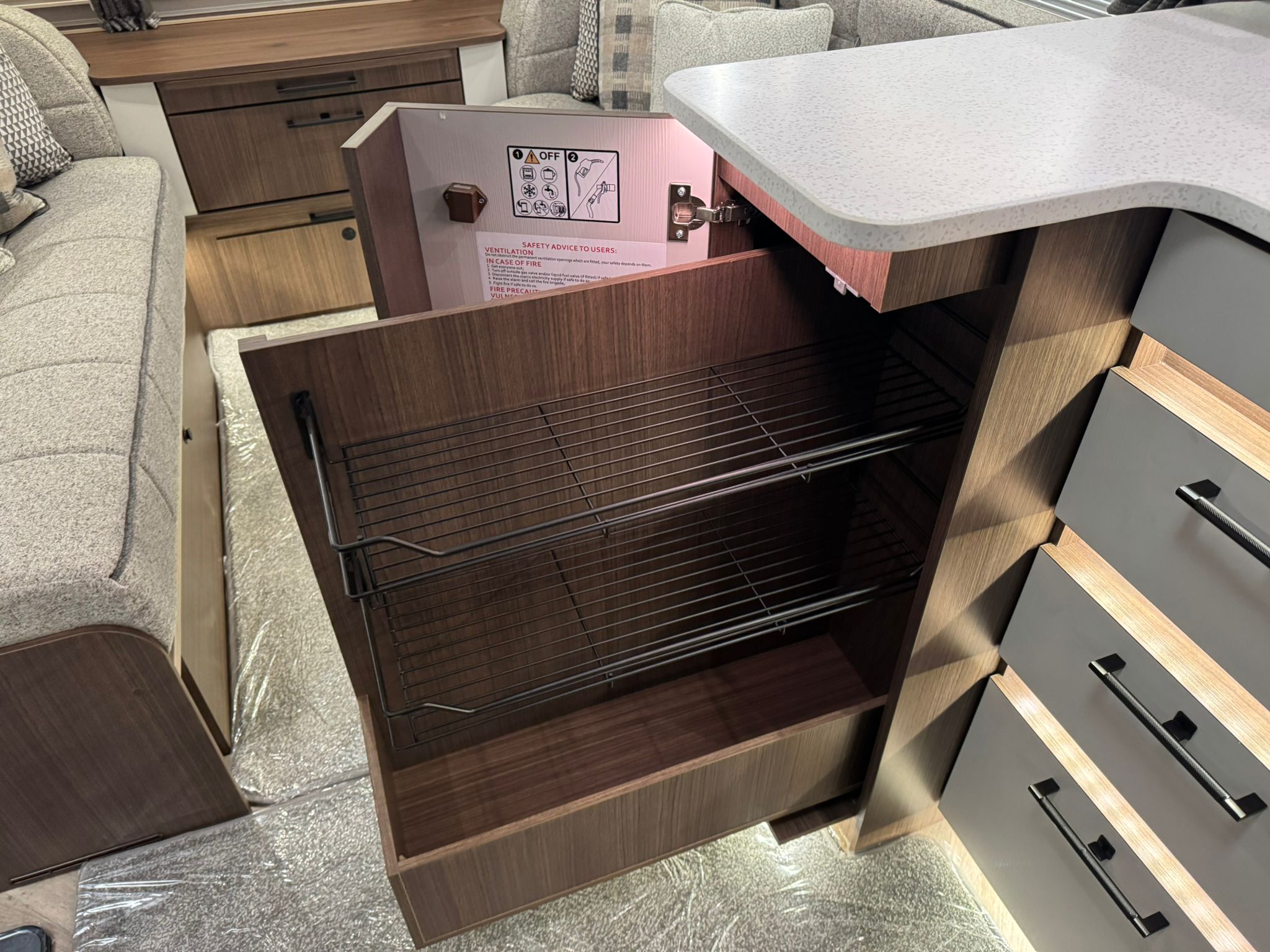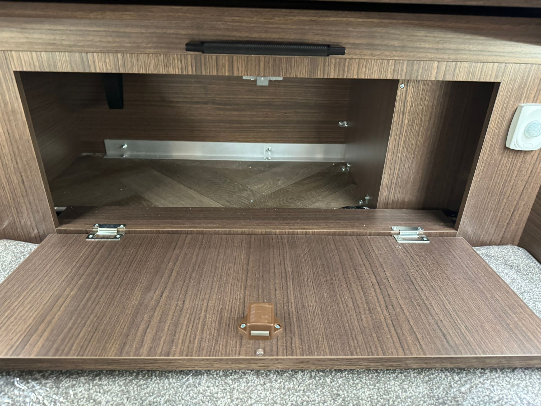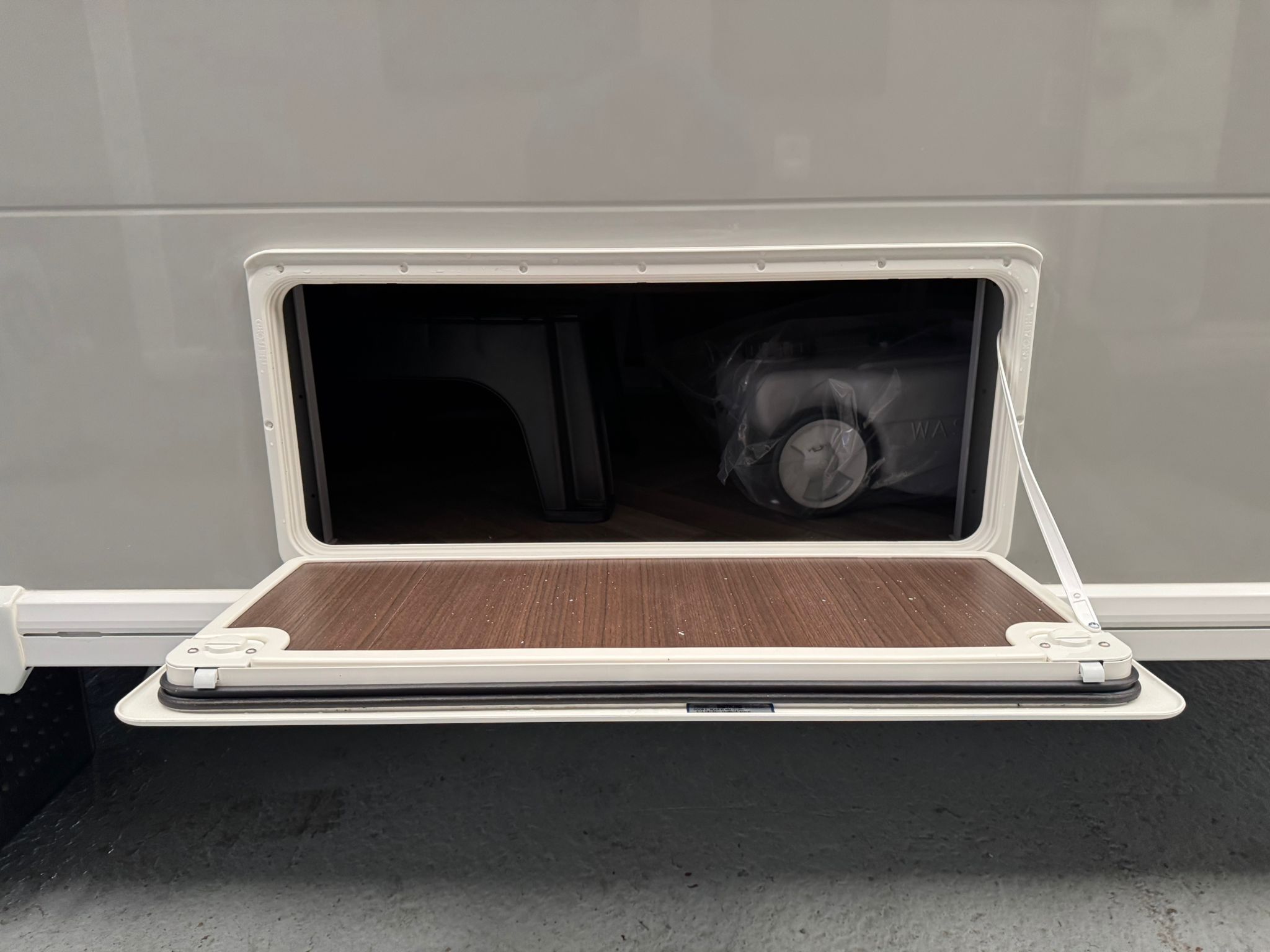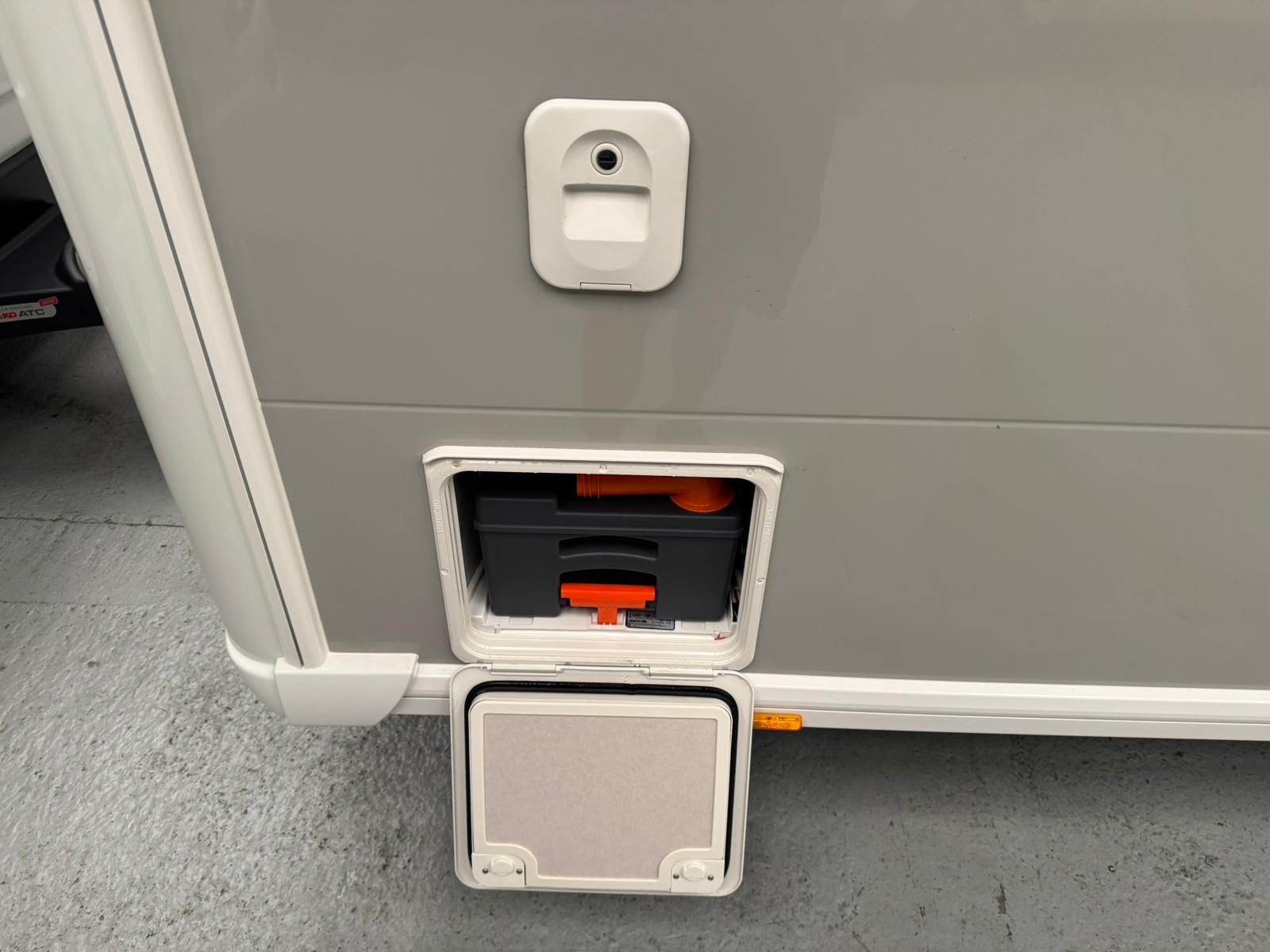 - Practical Touches: We love the little details that make life easier, like the NEW Exterior Access Battery Locker with an integrated mains electric inlet and external satellite & aerial connections. It also has an additional under bed access locker.