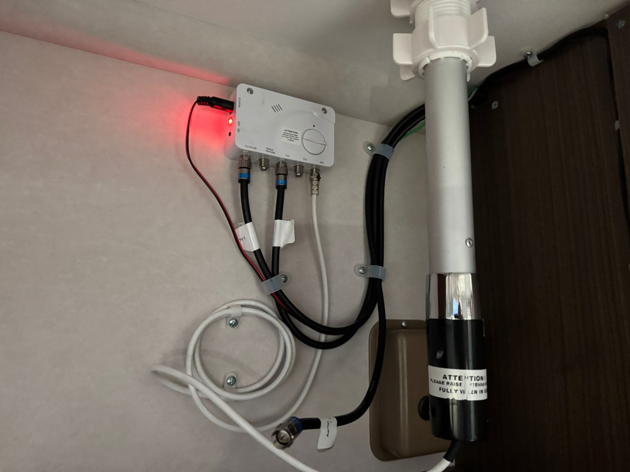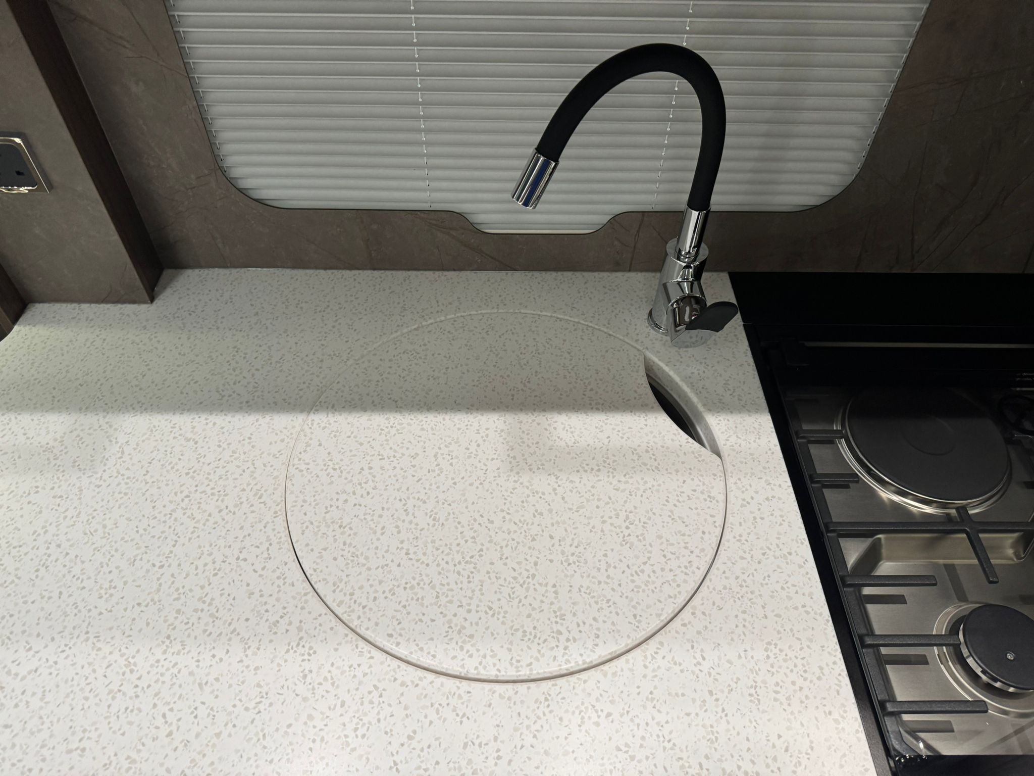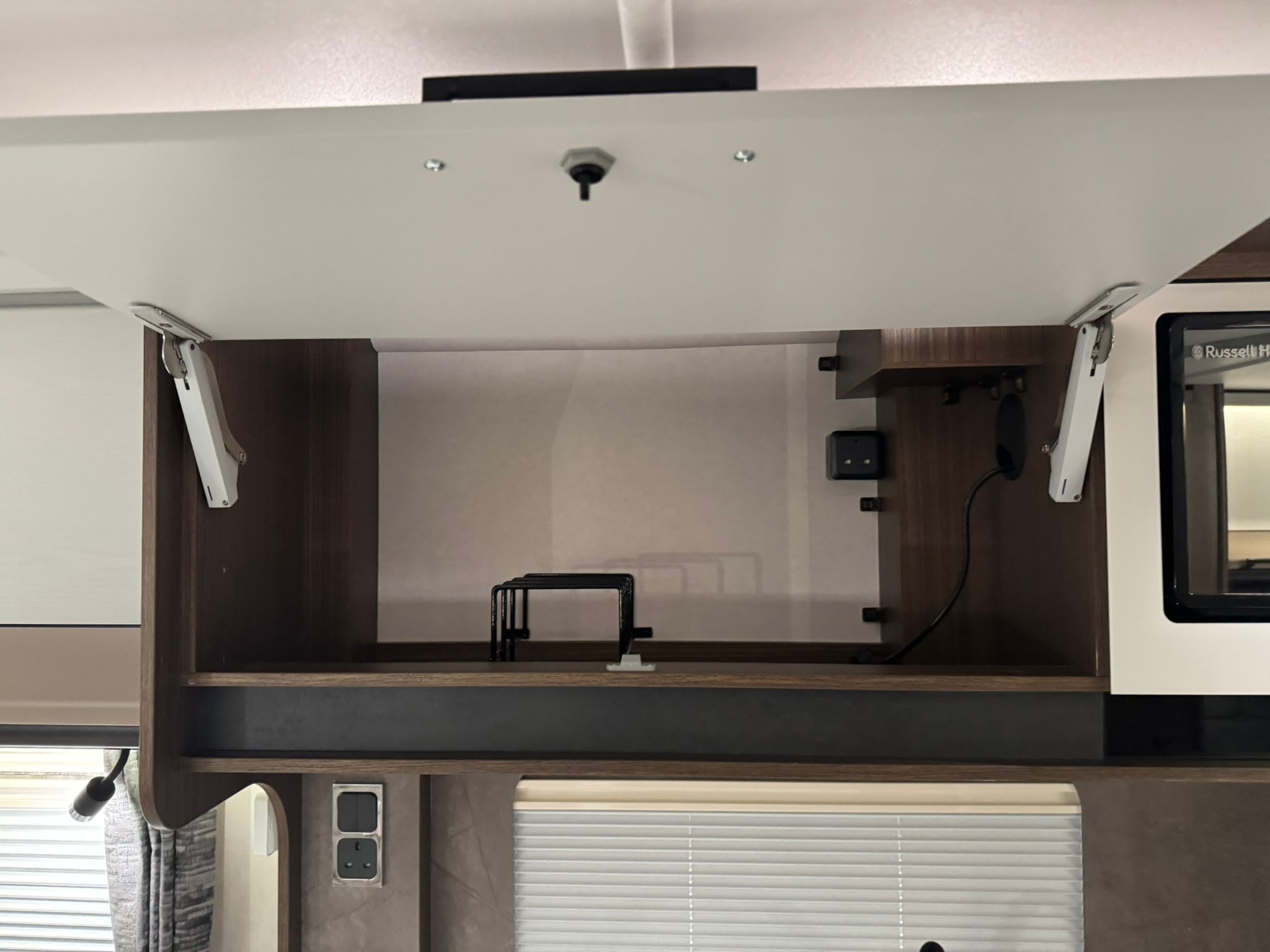- Modern Kitchen: A built-in Extractor Fan and Omnivent three speed, two way roof fan helps to keep the kitchen fresh. It’s also great to have a dedicated TV station with 230v, 12v, satellite and aerial sockets.