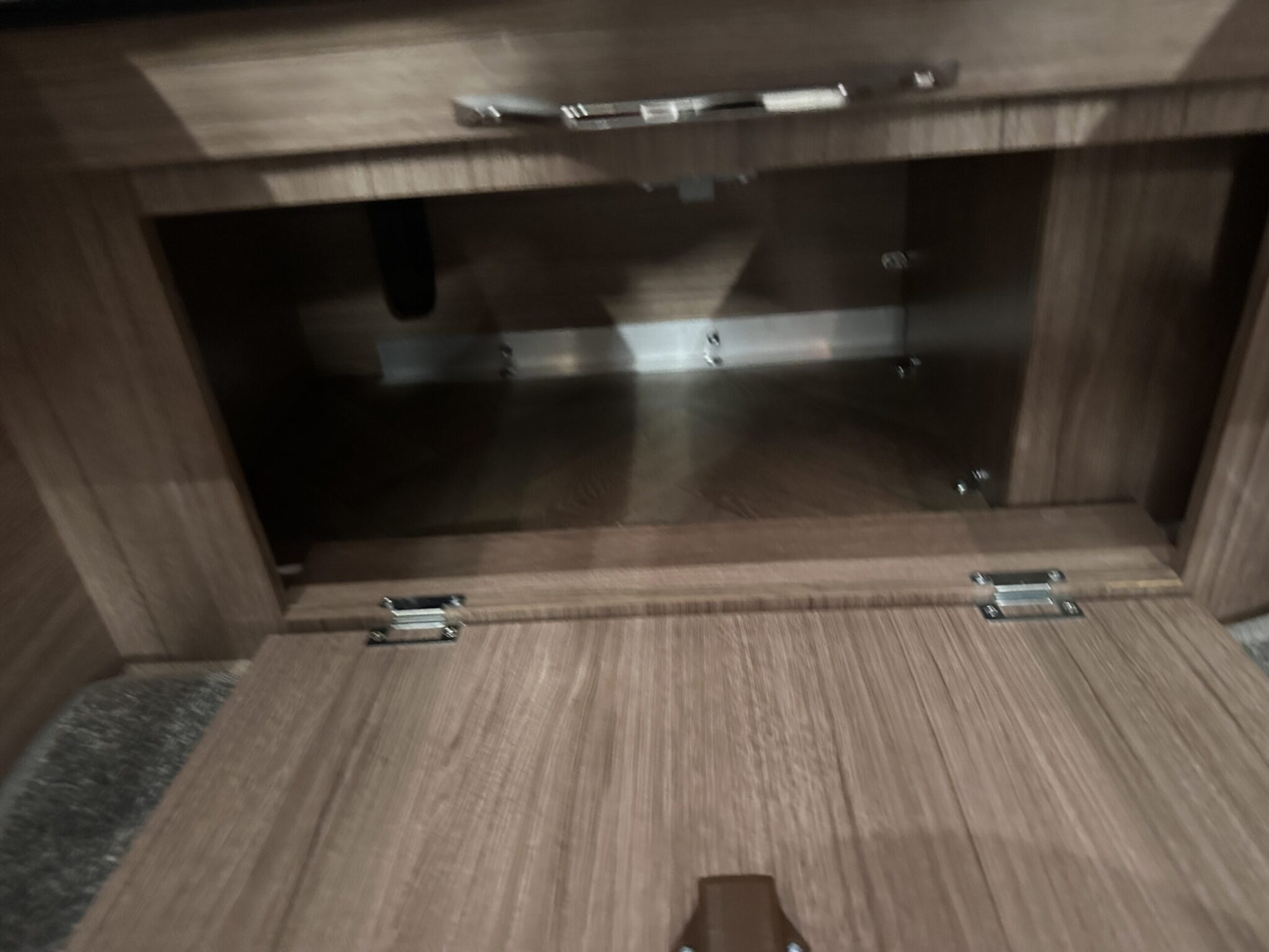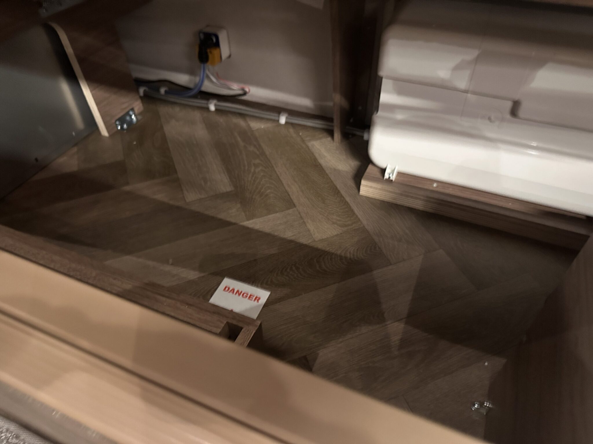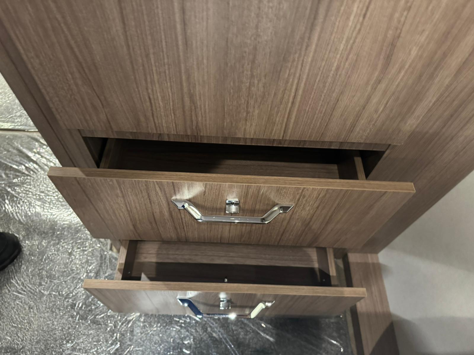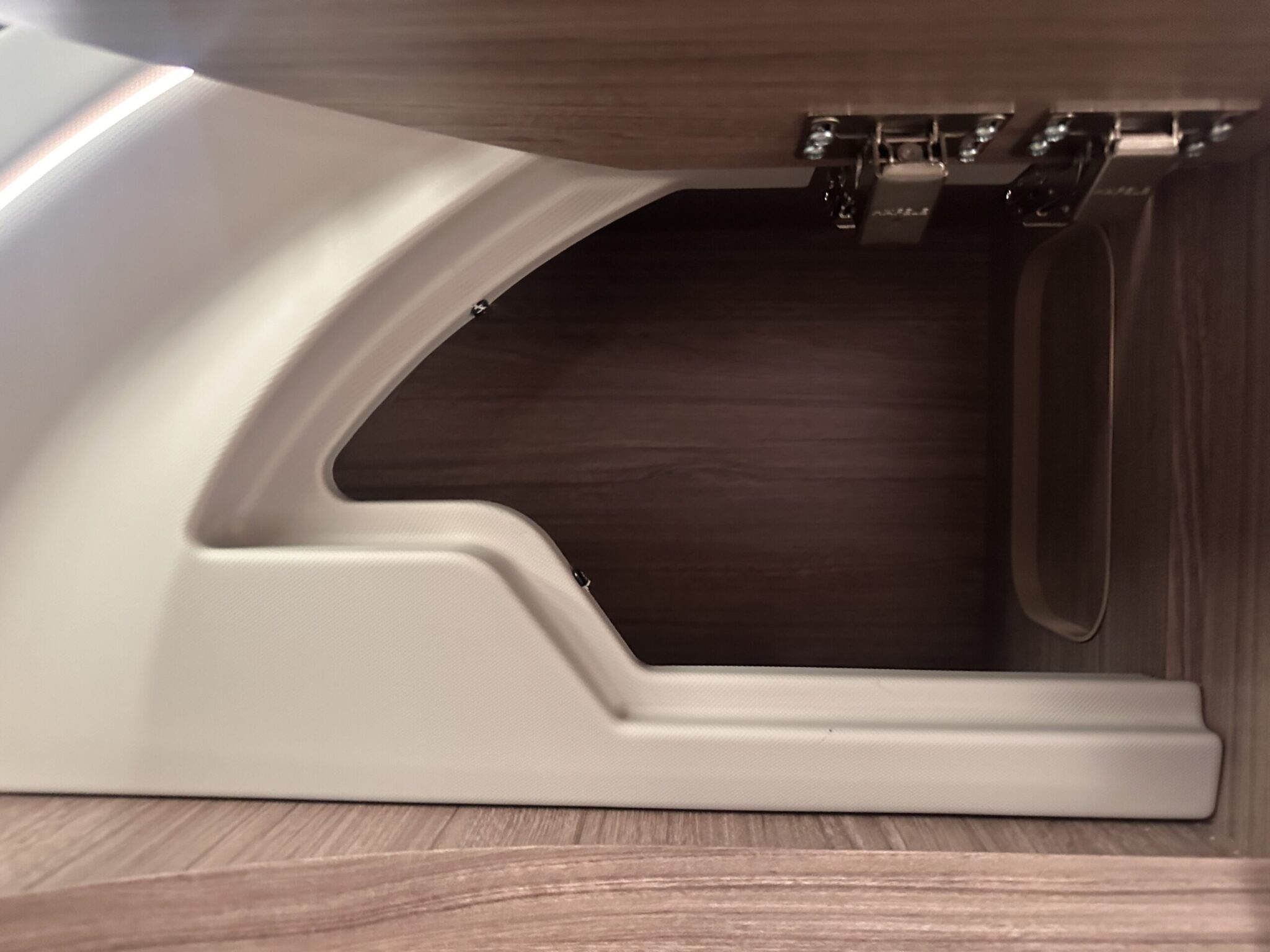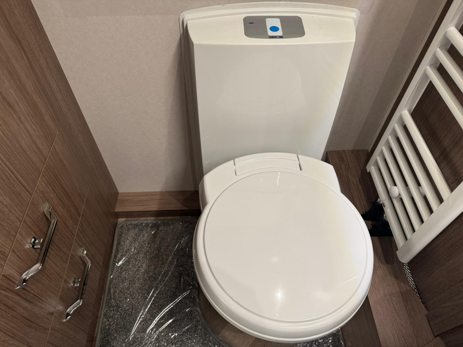 - Modern Kitchen: It’s great to have a fully equipped kitchen with a Thetford dual-fuel hob, oven, grill, and a 91-litre electronic fridge freezer. The NEW pull out Black wire baskets to lower kitchen cupboards are a smart addition.
