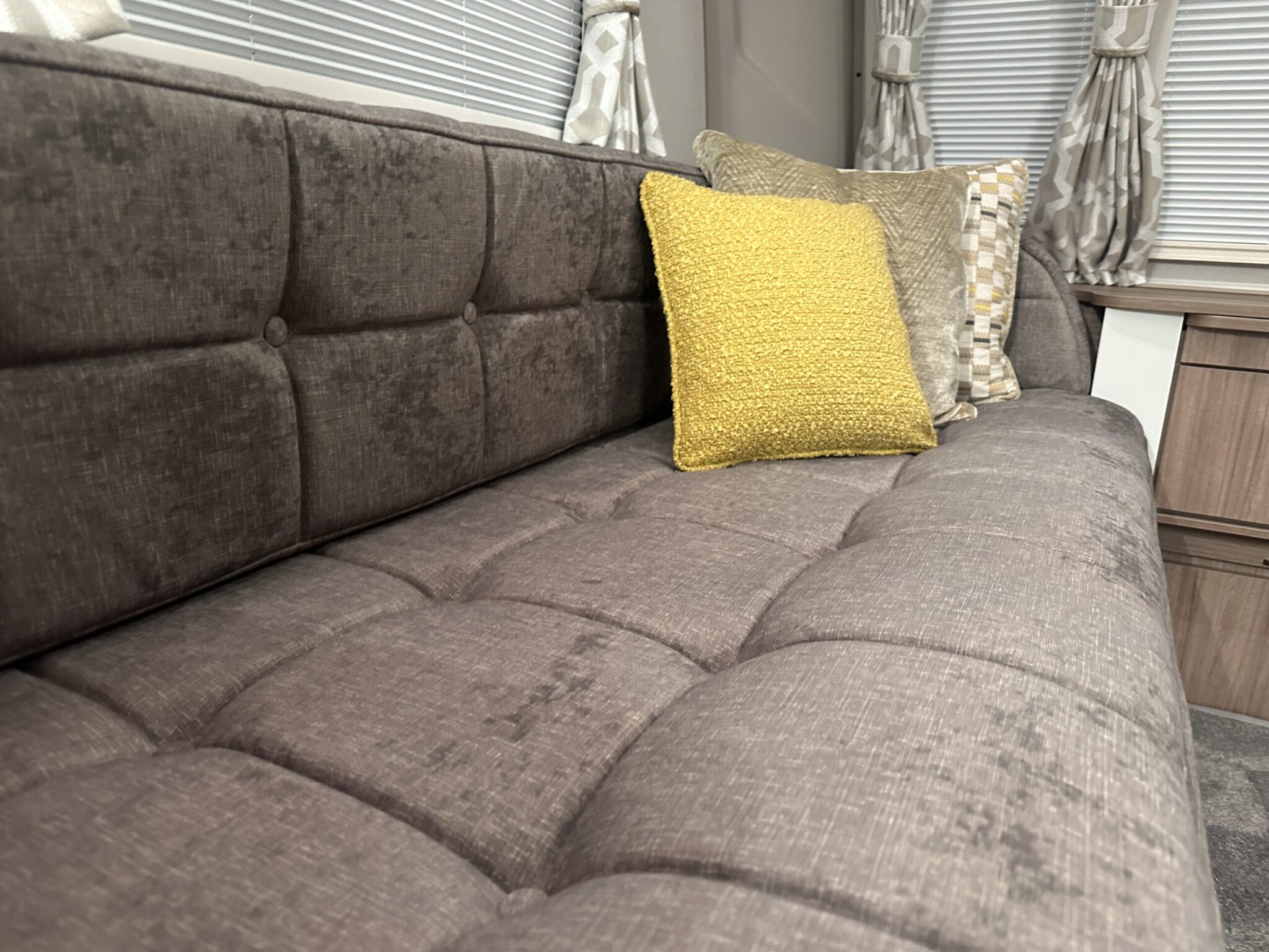 - Modern Style: We’re big fans of the NEW ‘French Oak Grey Herringbone’ domestic-style flooring, which looks fantastic and is so practical. The new soft furnishings with coordinating scatter cushions and sculpted armrests are a standout feature.