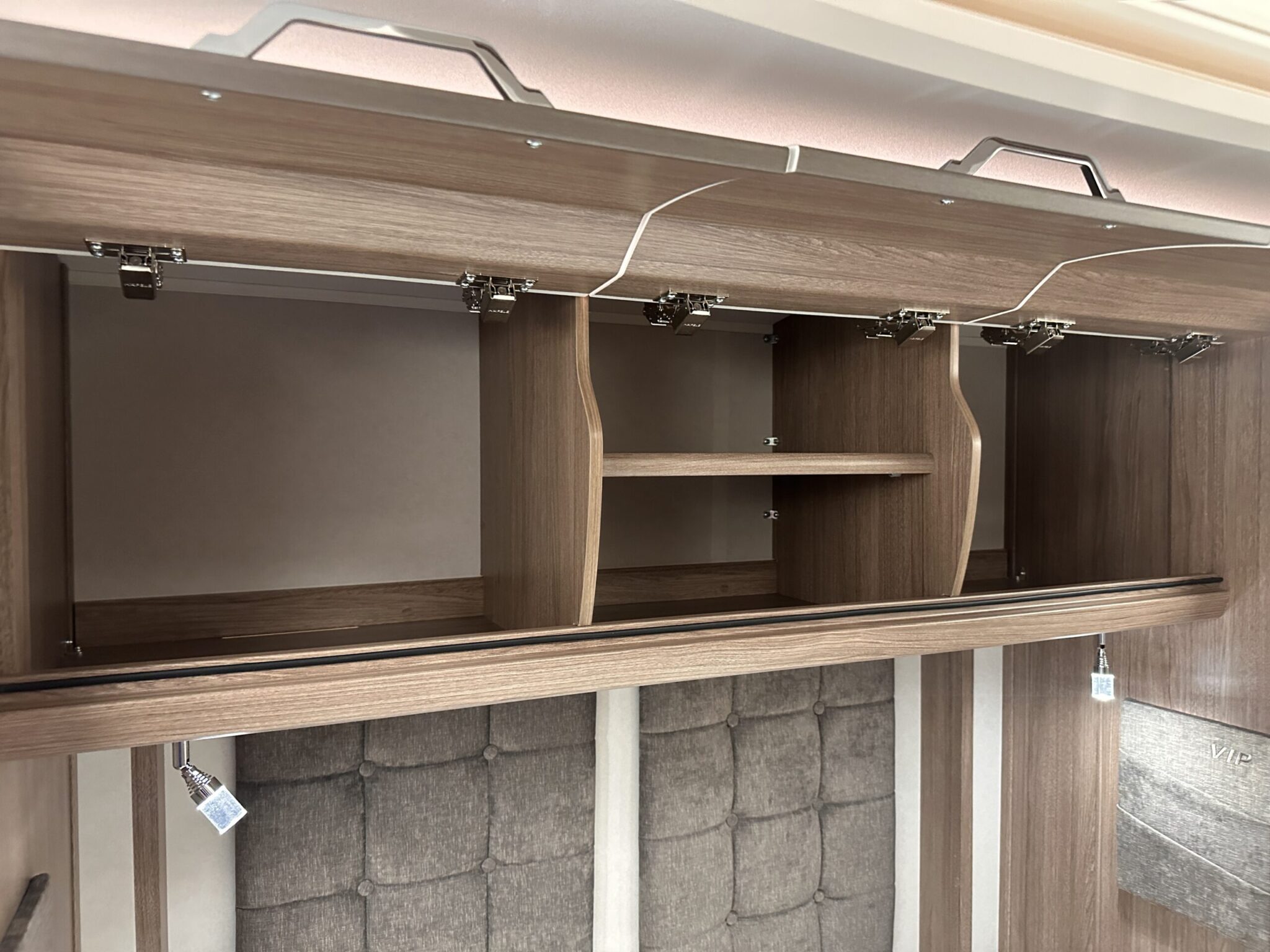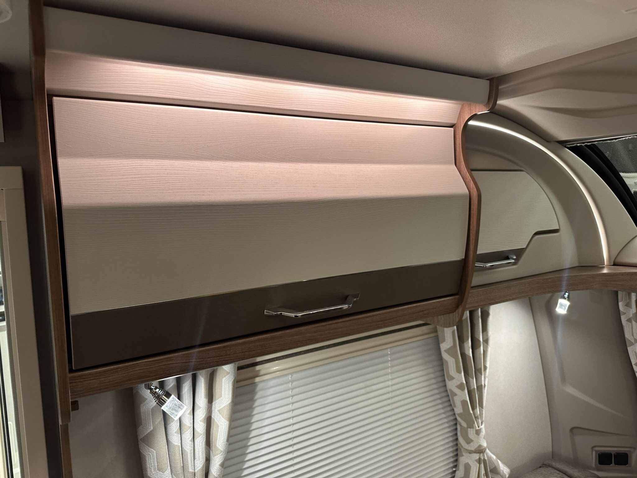 - Modern Style: We’re big fans of the NEW Hartal Smooth Action Pleated Blinds with Flyscreens to all Windows , and the new soft furnishings with coordinating scatter cushions and sculpted armrests.Contemporary Finishes: The NEW overhead locker profile in ‘Pebble’ design with LED lighting provides a sleek finish