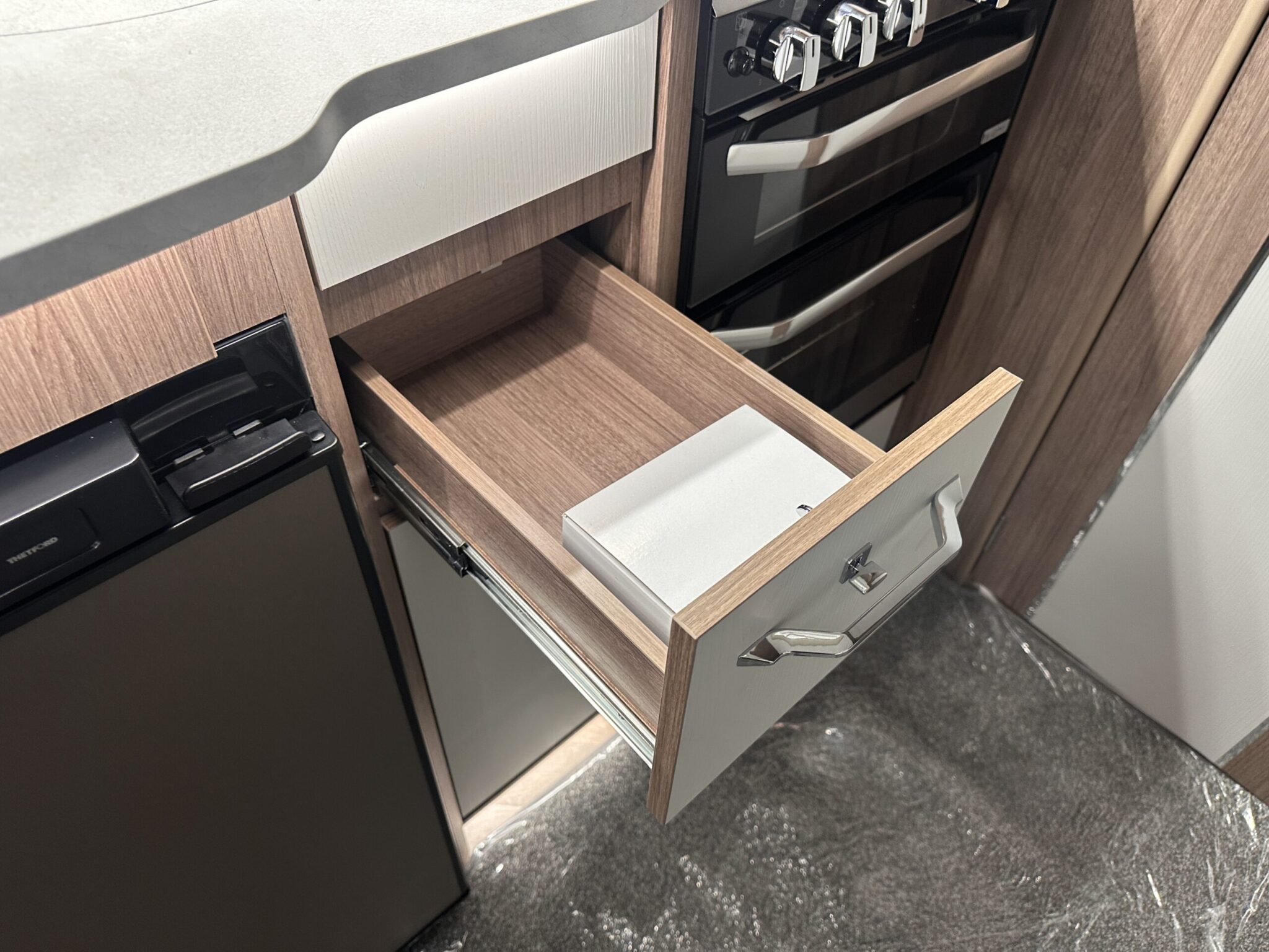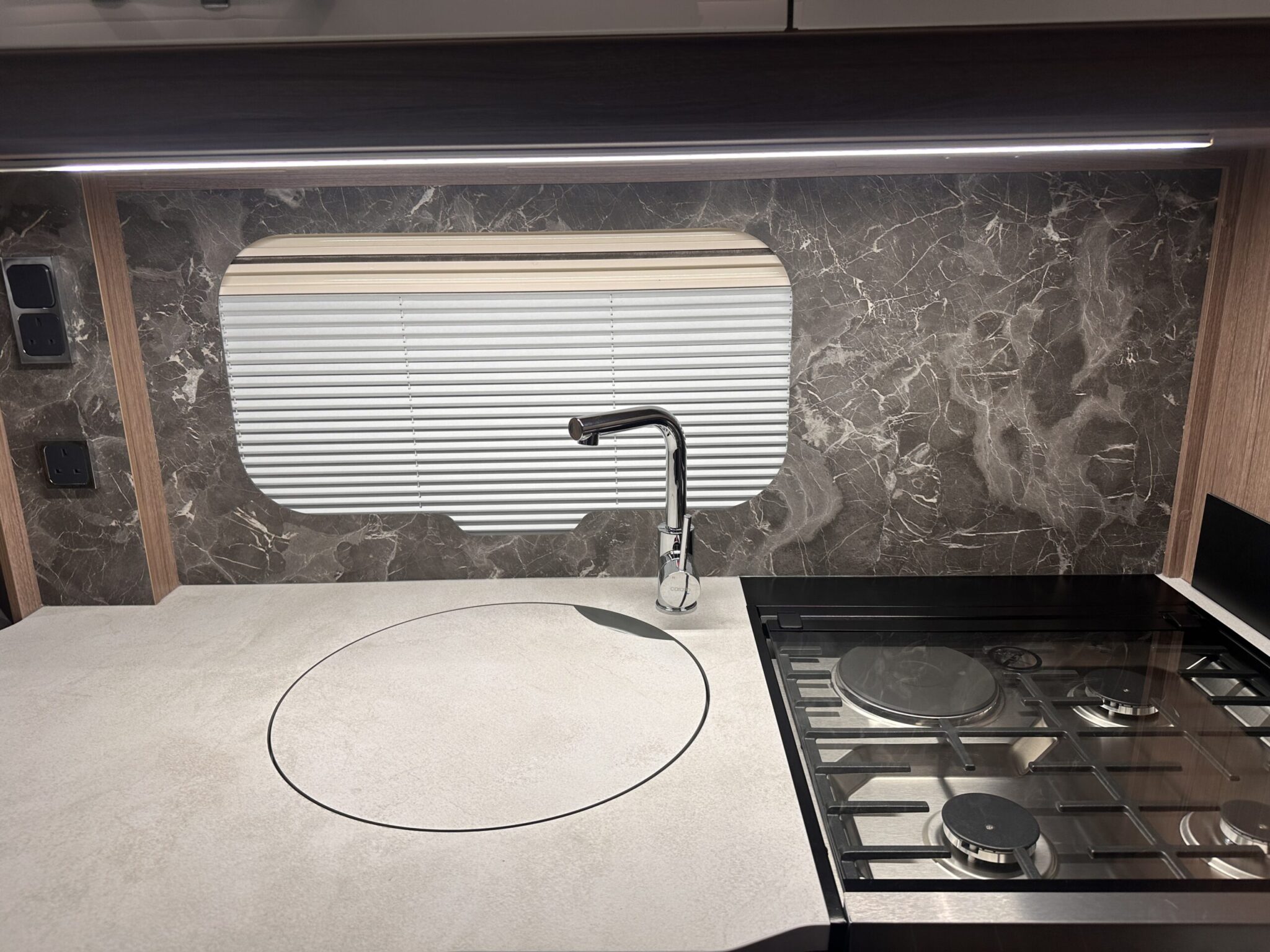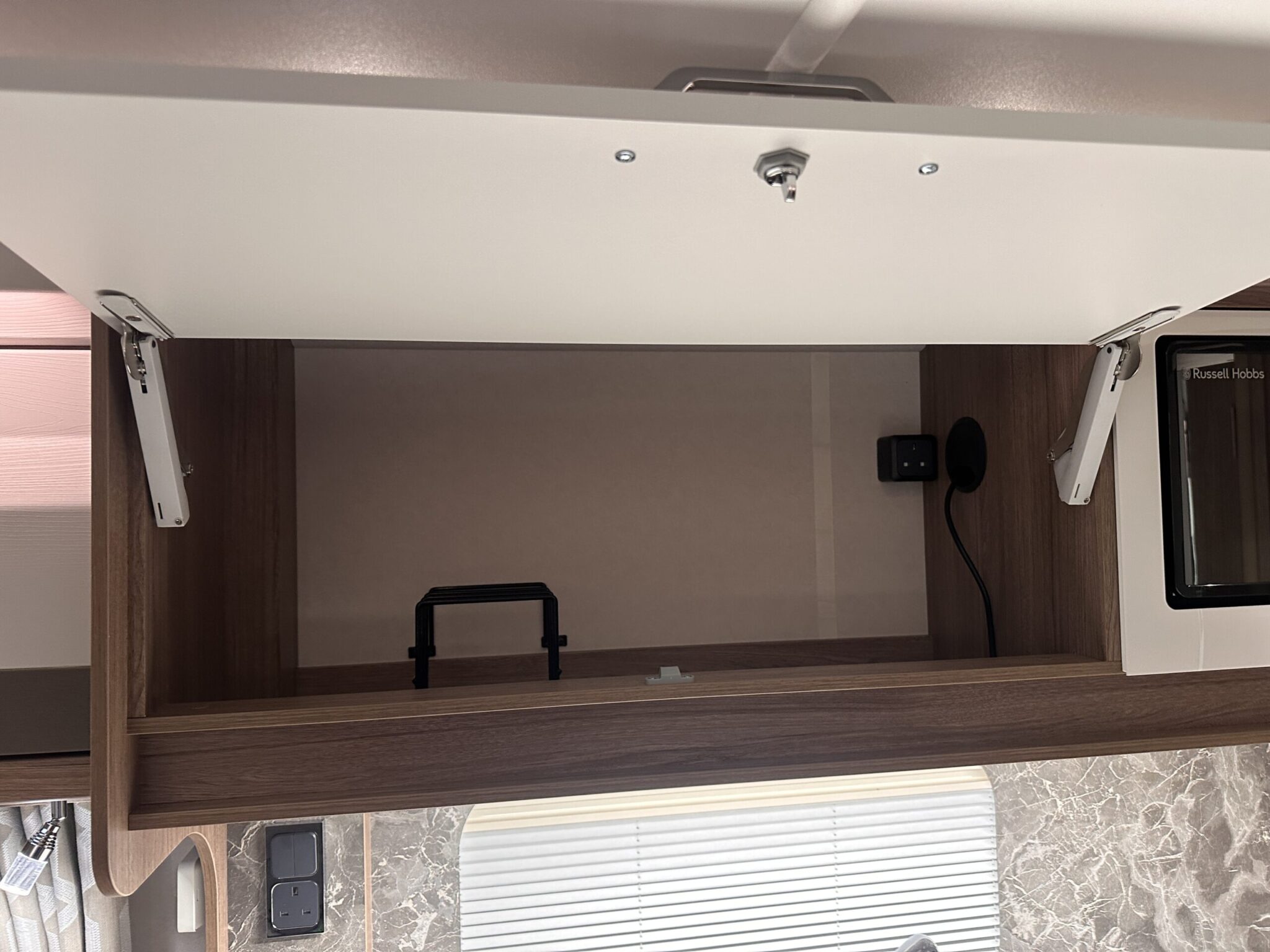 - Modern Kitchen: The Omnivent three-speed, two-way roof fan helps to keep the kitchen fresh. It’s also great to have a dedicated TV station with 230v, 12v, satellite and aerial sockets.
