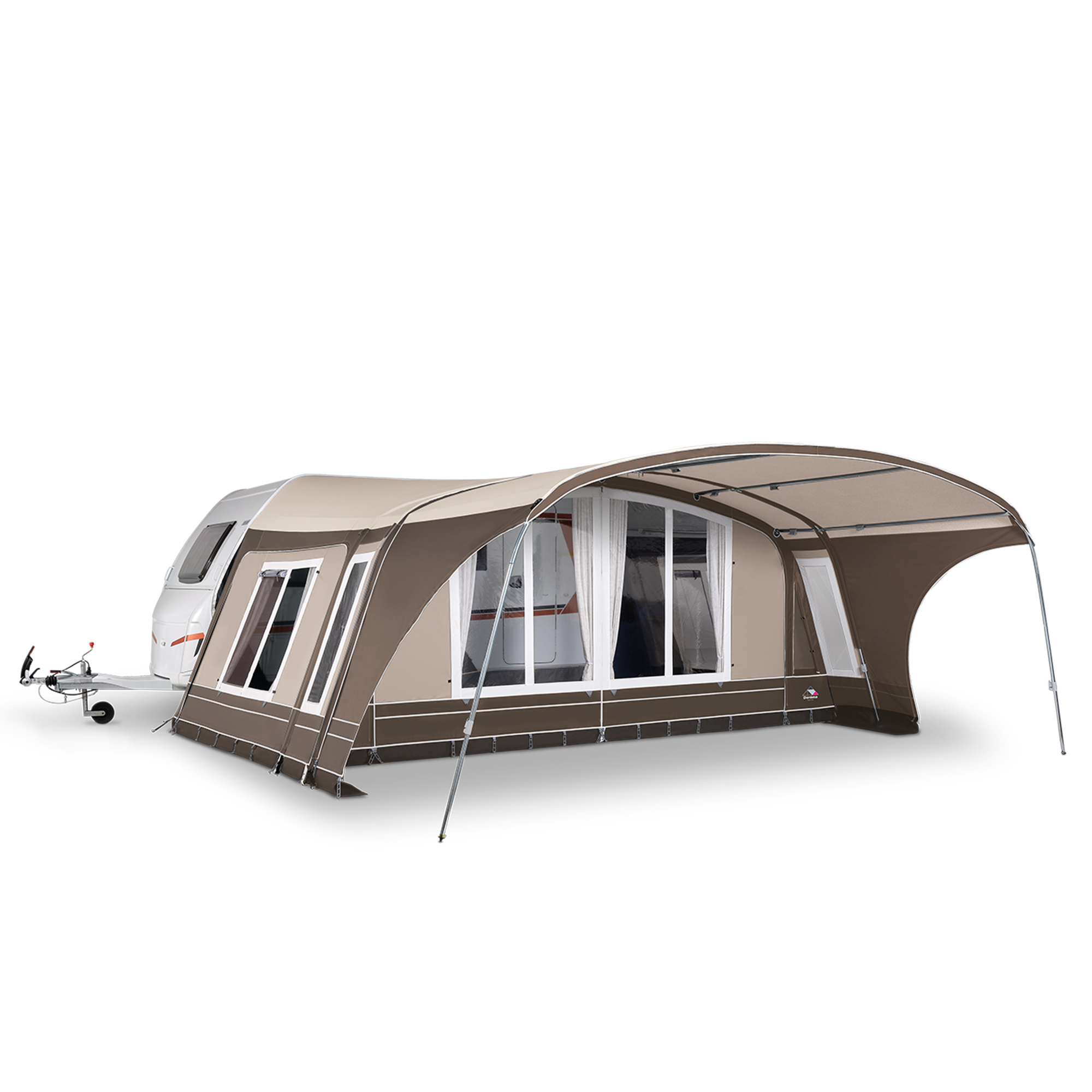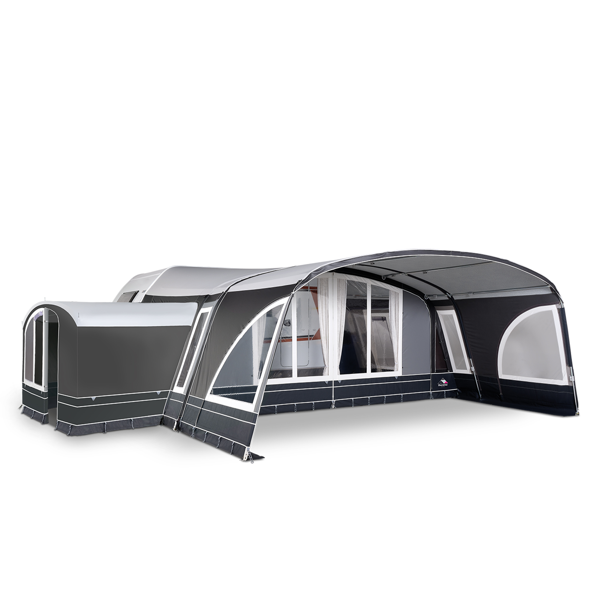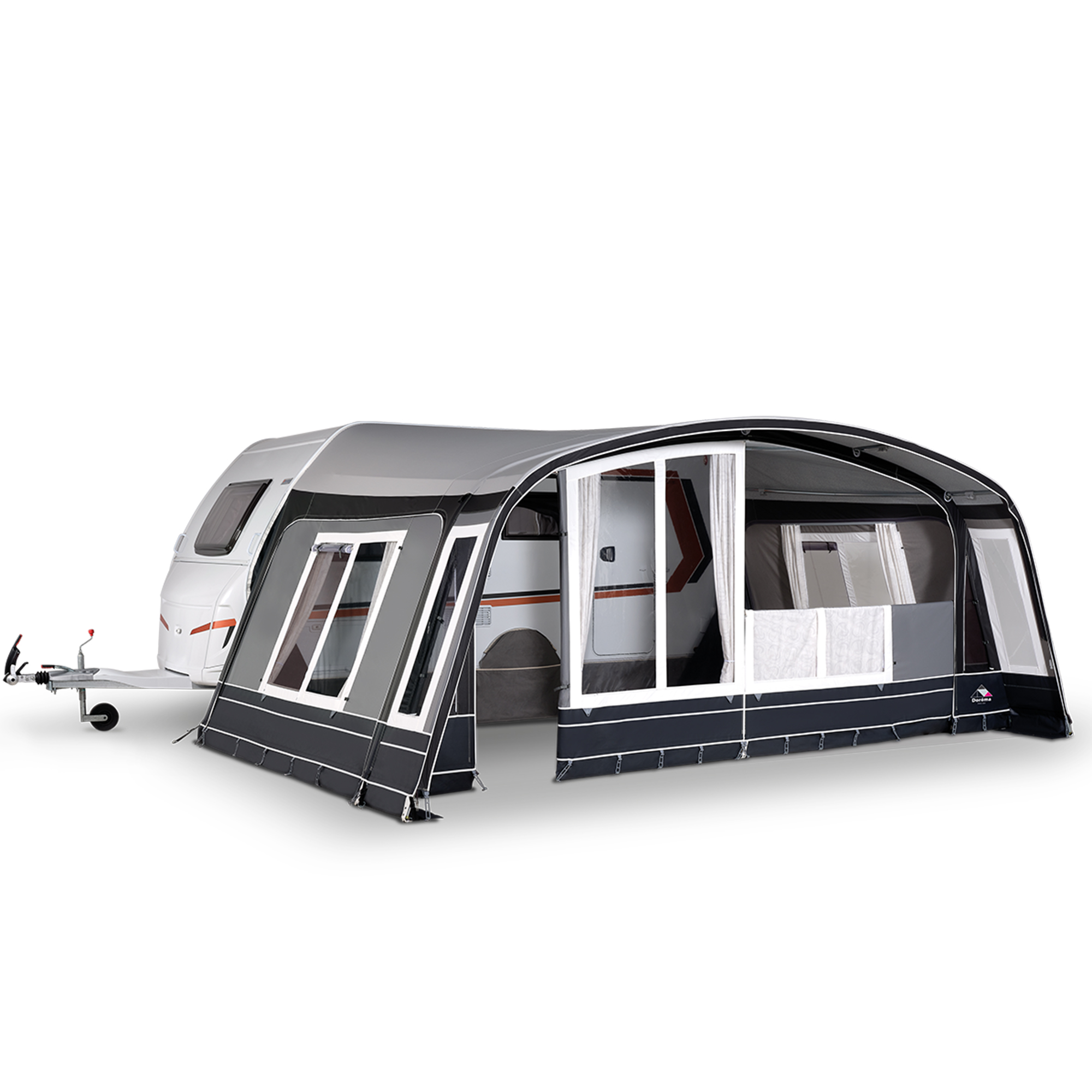 The Onyx 270 is a premium full-caravan seasonal awning from Dorema’s “Gem” collection, offering a generous 270 cm depth plus a 50 cm canopy extension. With sleek curved styling, high-spec materials and versatile access, it delivers comfortable living space for longer stays and more ambitious caravanners.