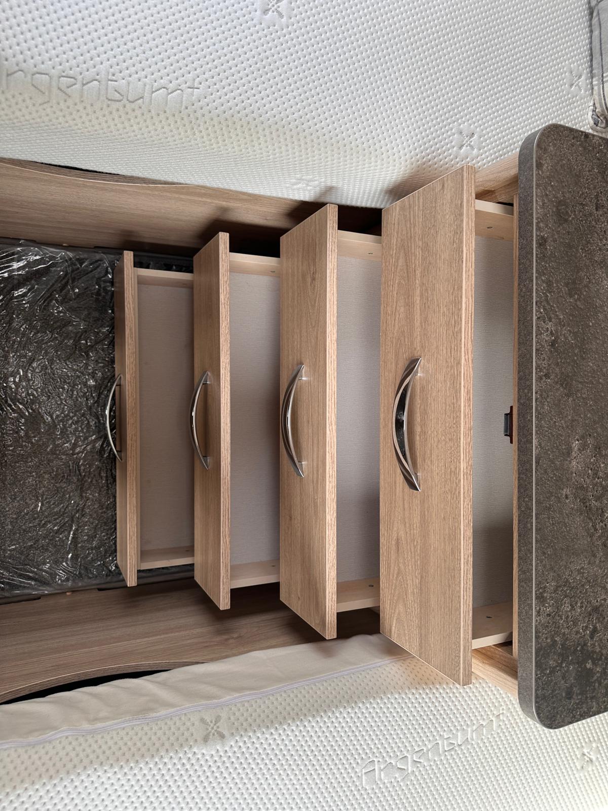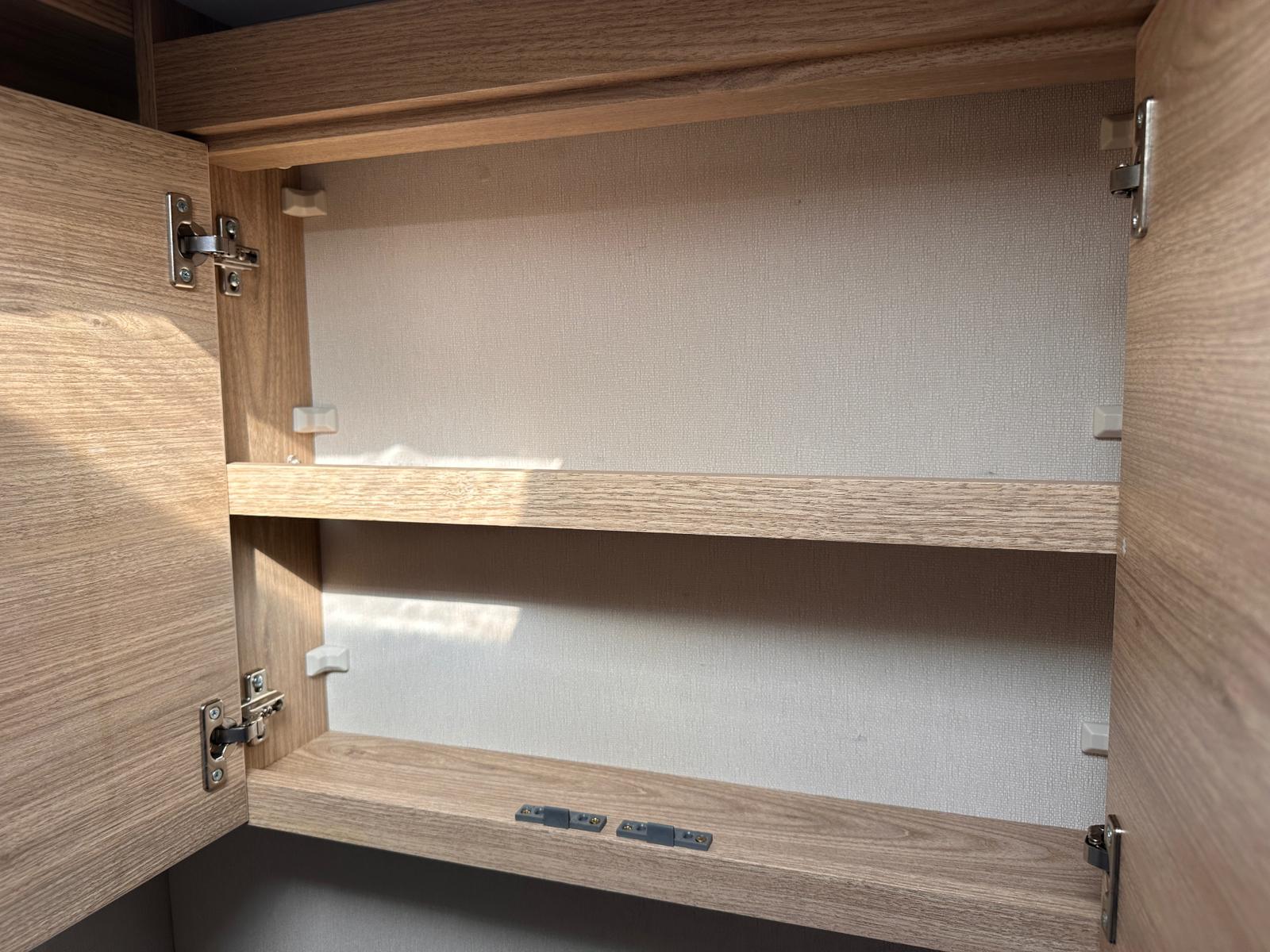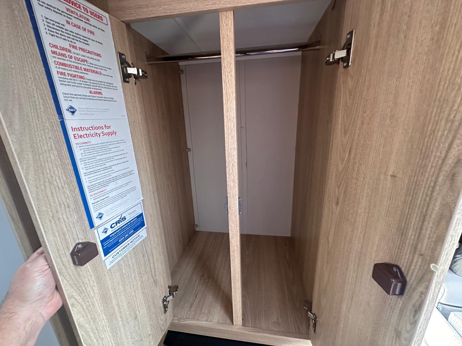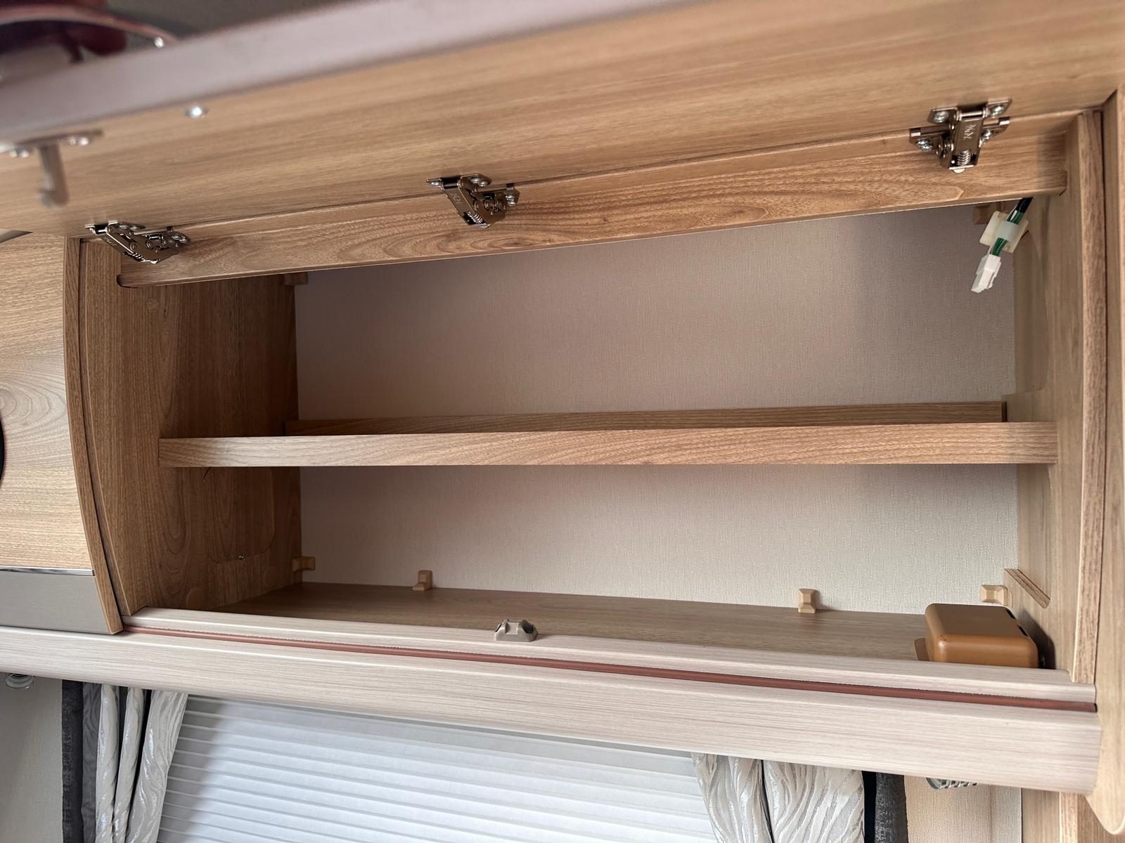 Bedroom: Features a dedicated rear bedroom with two fixed single beds, complete with headboards. The beds lift to provide excellent under-bed storage access.