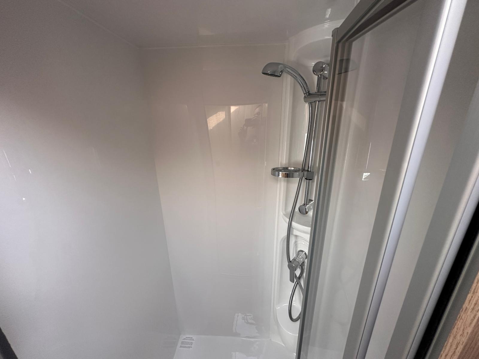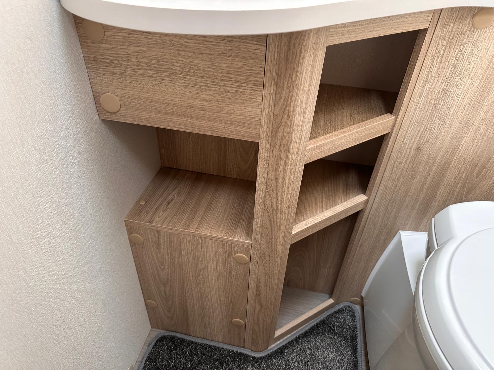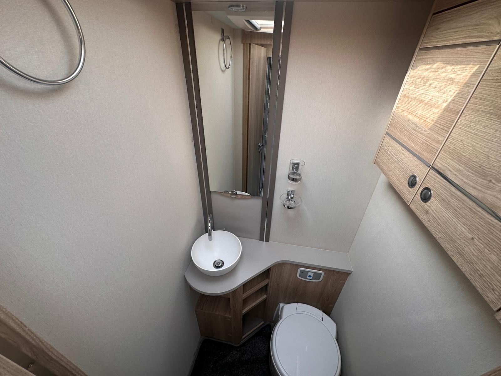 Washroom: A highly practical middle (centre) washroom configuration that acts as an en-suite and a convenient divider between the front lounge and the rear bedroom.