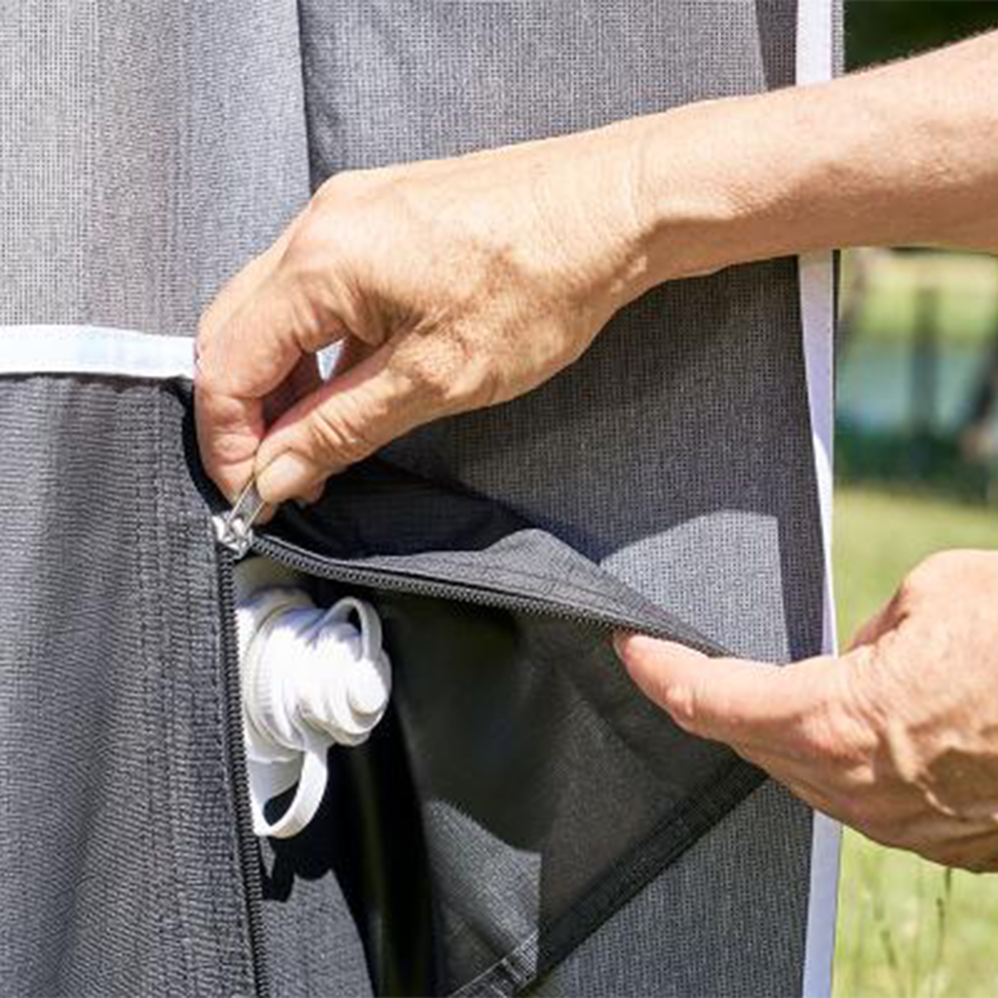 Sun Canopy Mode: It is surprisingly versatile. You can unzip and remove all four panels (front and sides) to transform the enclosed awning into a huge, open sun canopy. Perfect for those hot summer days when you just want shade and a breeze.