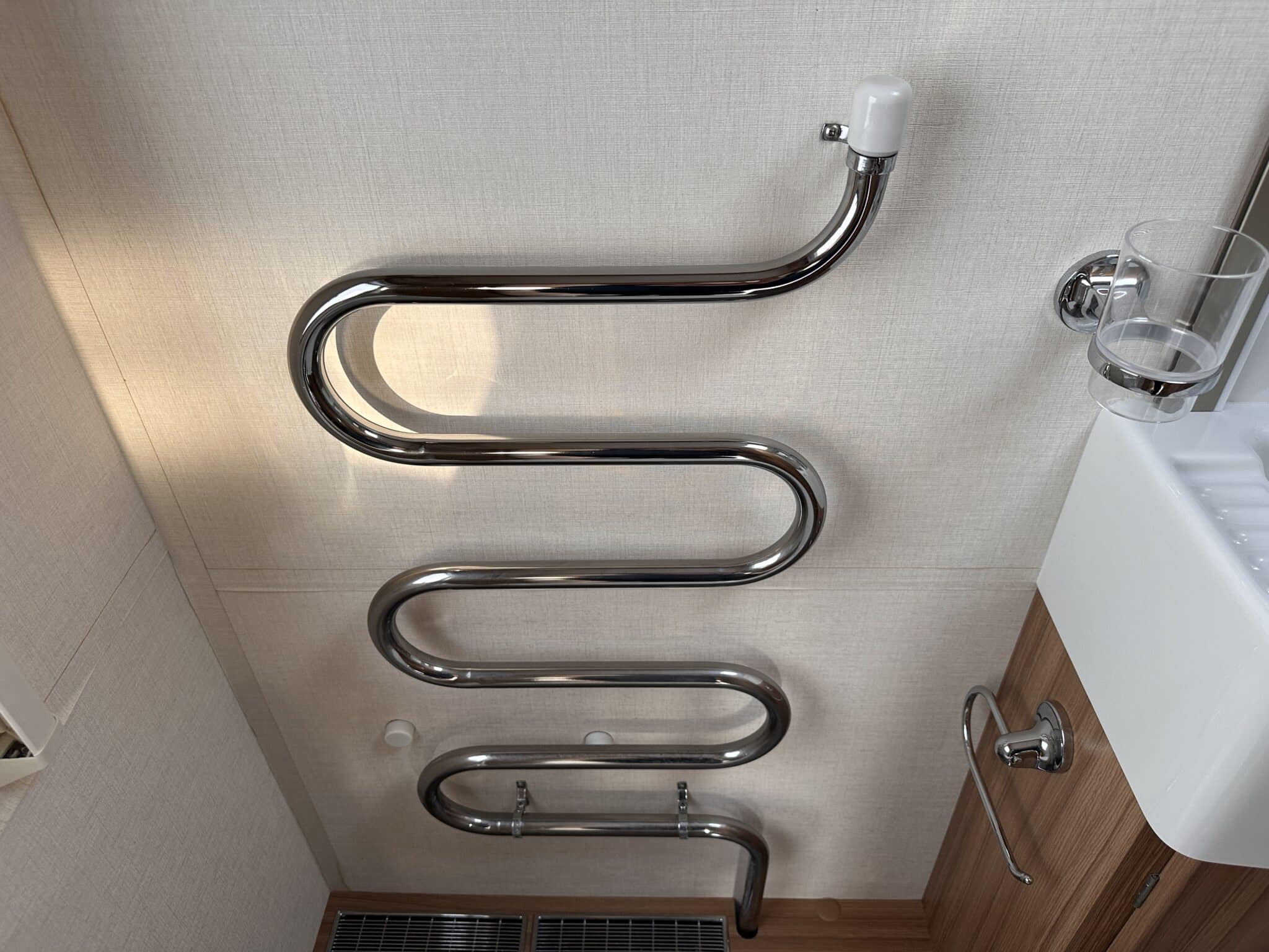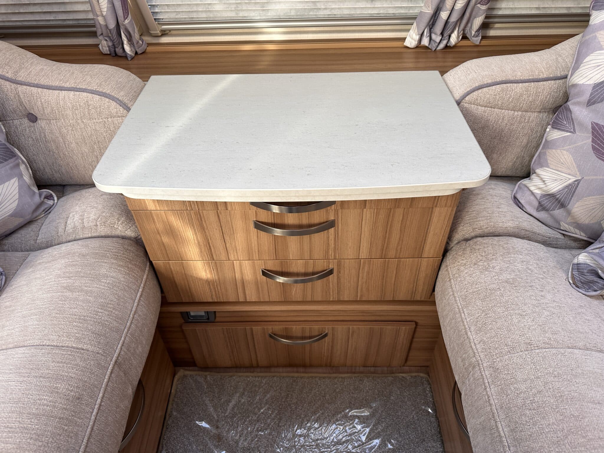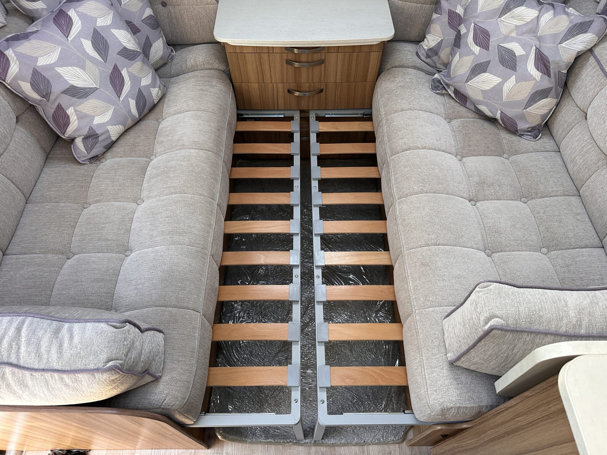 Heating: This caravan is fitted with the Alde wet central heating system. This uses radiators to heat the interior, which provides a consistent temperature and is quieter than blown-air systems.