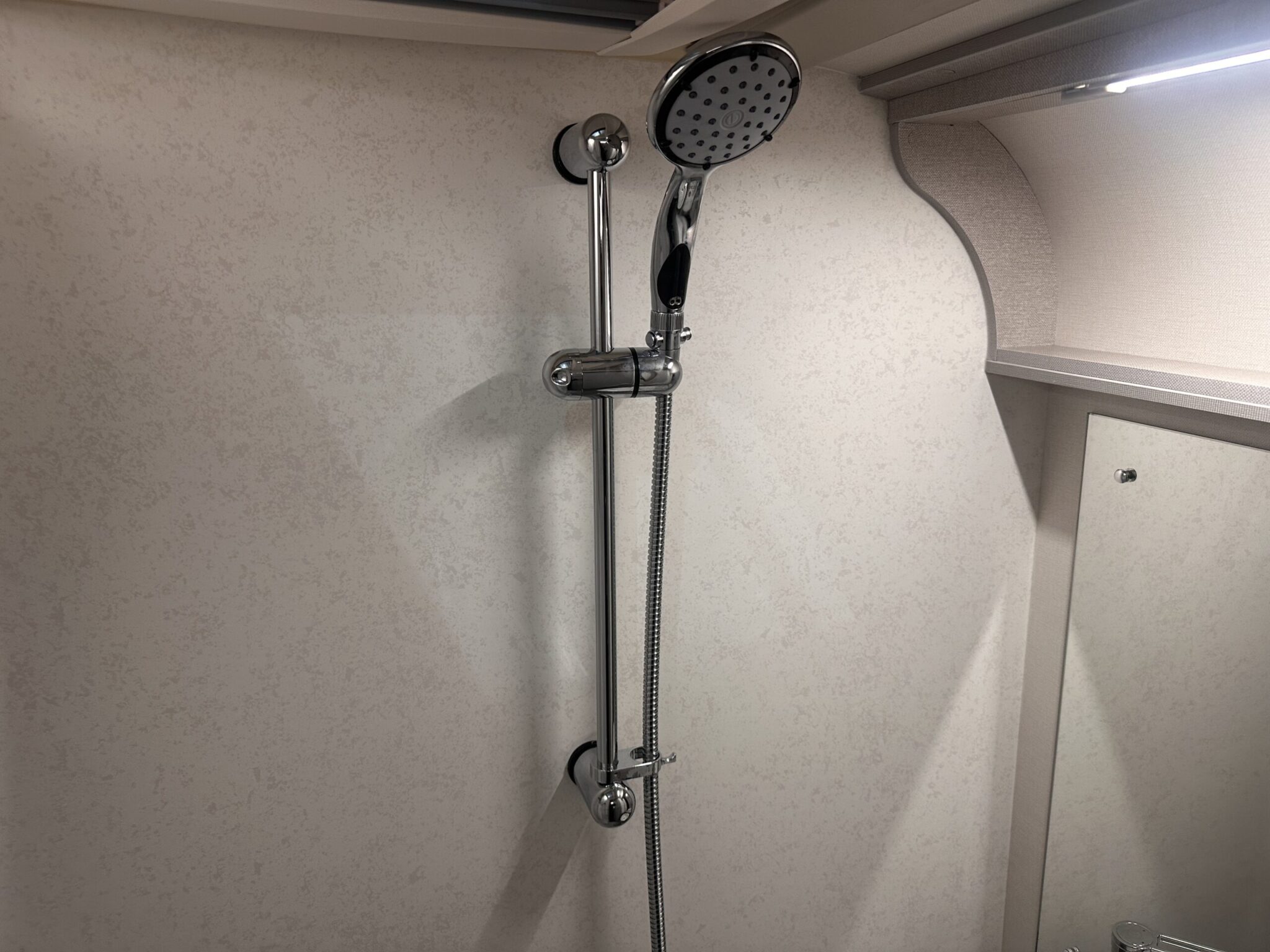 Economical Jabsco powerhead shower with towel rail — reliable water pressure for comfortable washing plus convenient towel storage