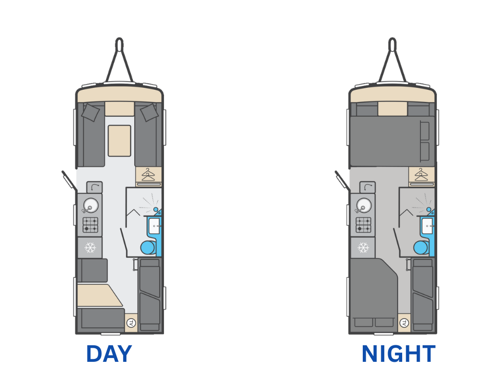 ✔ A true family caravan with plenty of options for day and night use.
