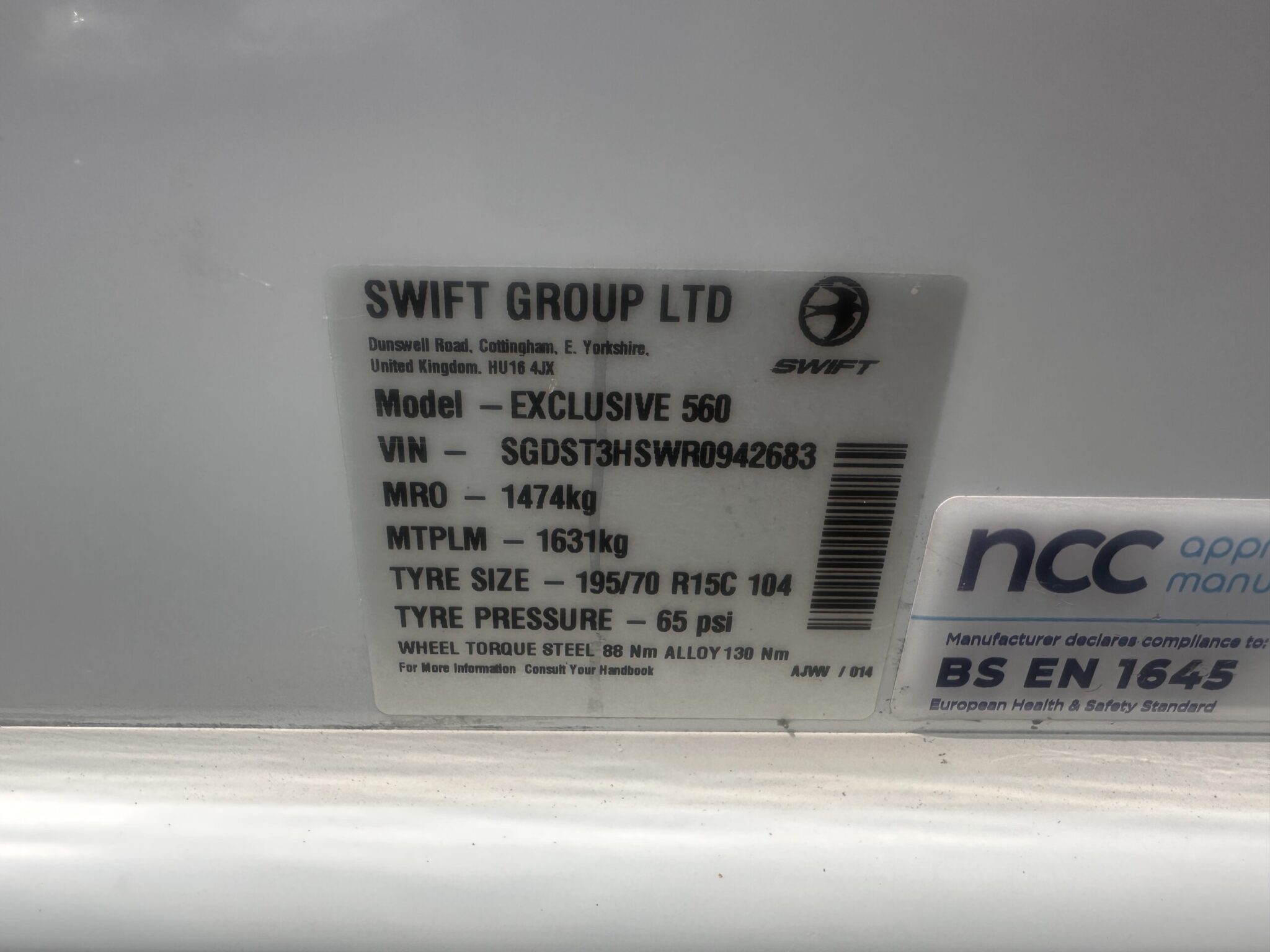 Make & Model: Swift Challenger Exclusive 560