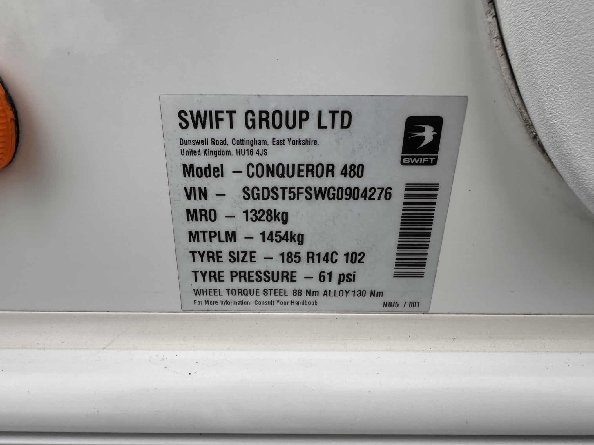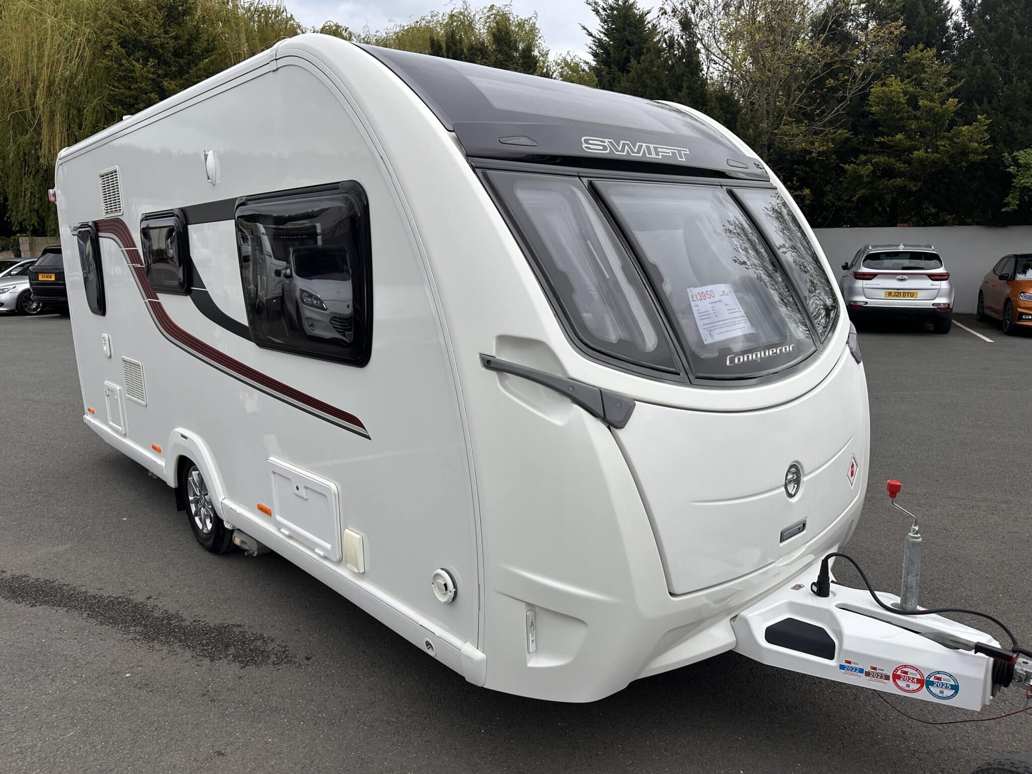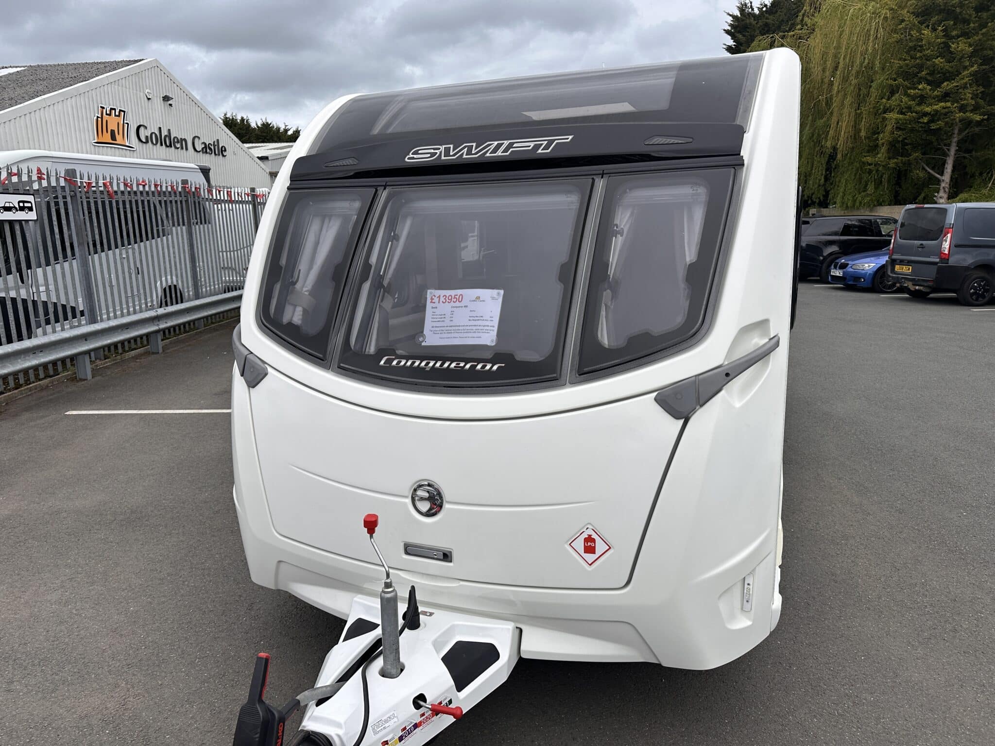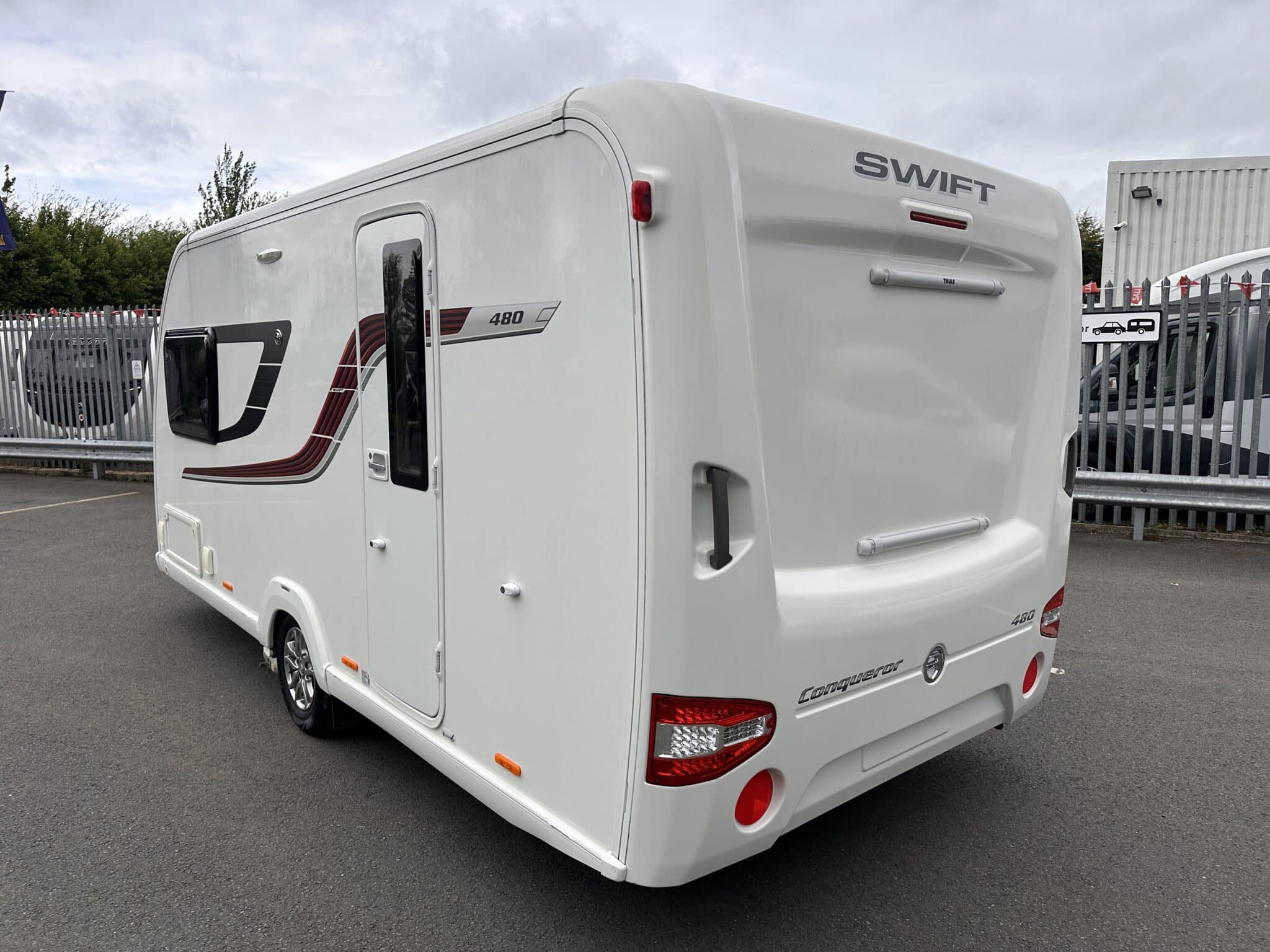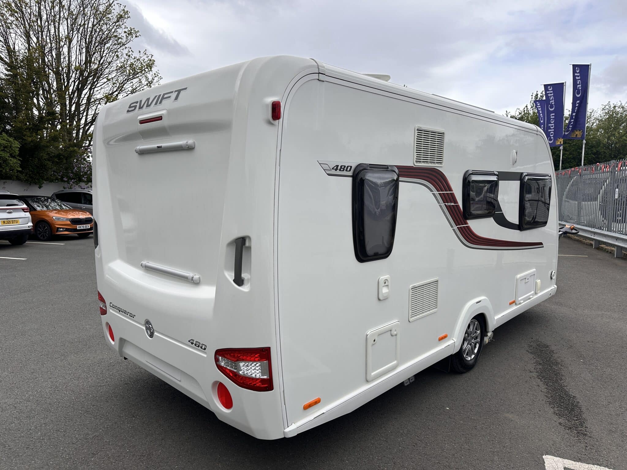 The 2016 Swift Conqueror 480 is a premium, single-axle 2-berth touring caravan known for its high-end finish and highly regarded SMART HT timber-less construction.