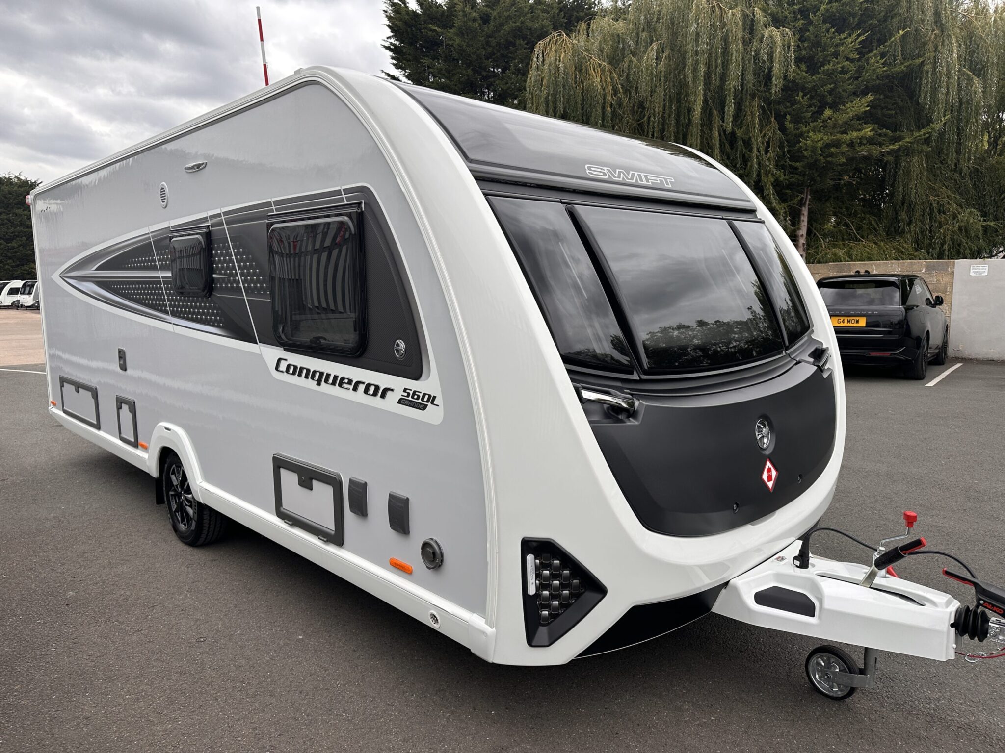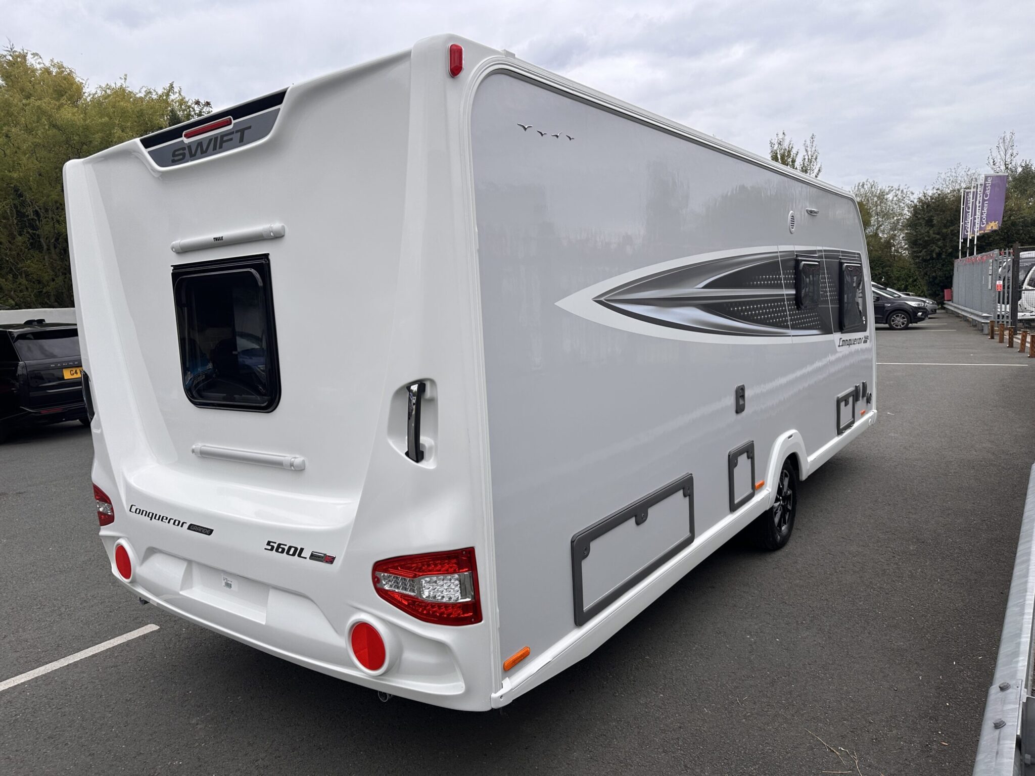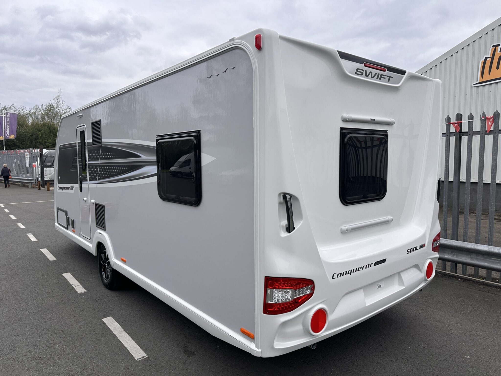 Swift Conqueror Grande 560 L – 2026 Caravan with Transverse Island Bed, Central Washroom and L-Shaped Lounge