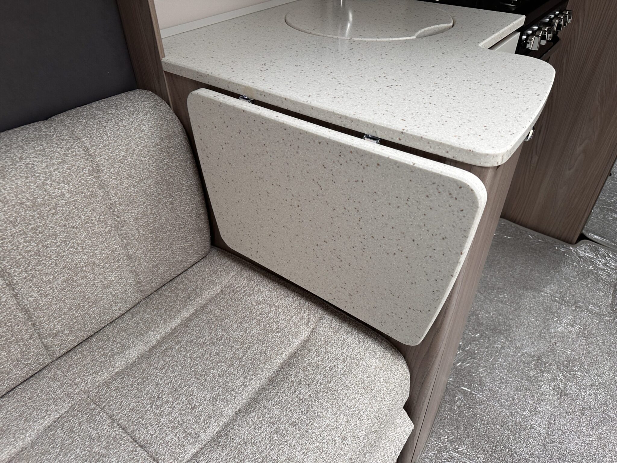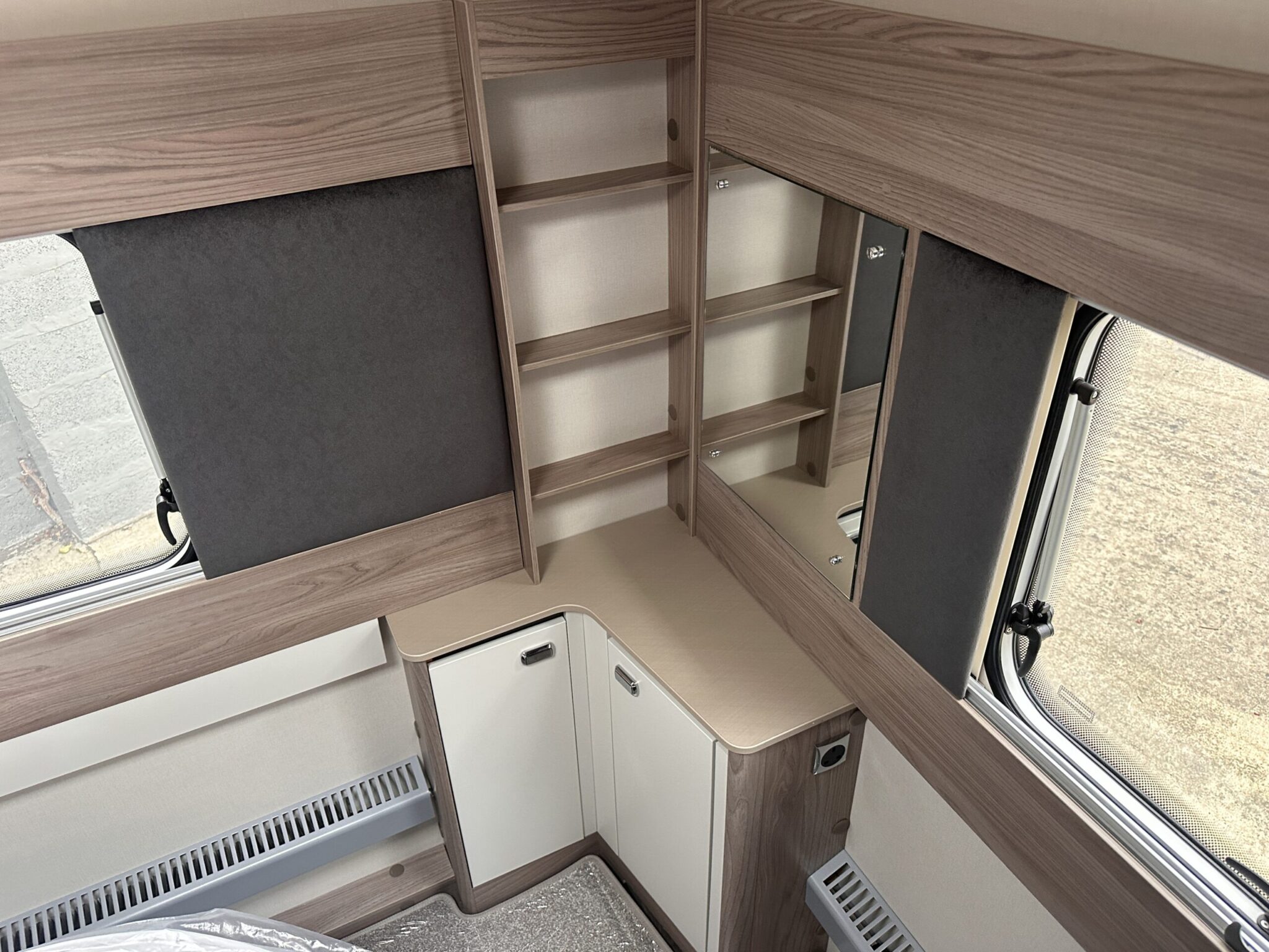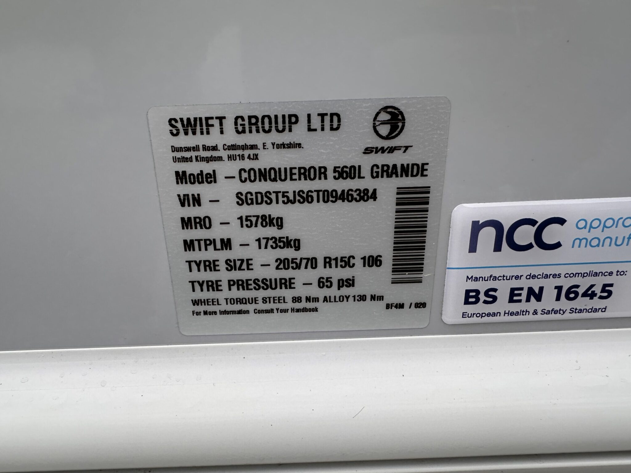 The Swift Conqueror Grande 560 L is part of the prestigious 2026 range, offering 8-foot wide comfort, style, and practical design. With a transverse island bed, a central washroom split across the bedroom, and a front L-shaped lounge that converts into a bed, this 4 berth single axle caravan is designed for couples or families who want more living space. At 1578kg unladen, it balances generous room with reliable towing capability.